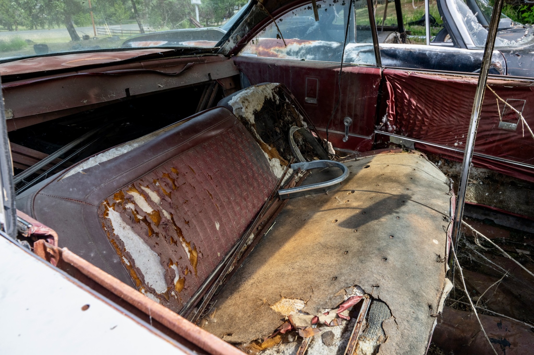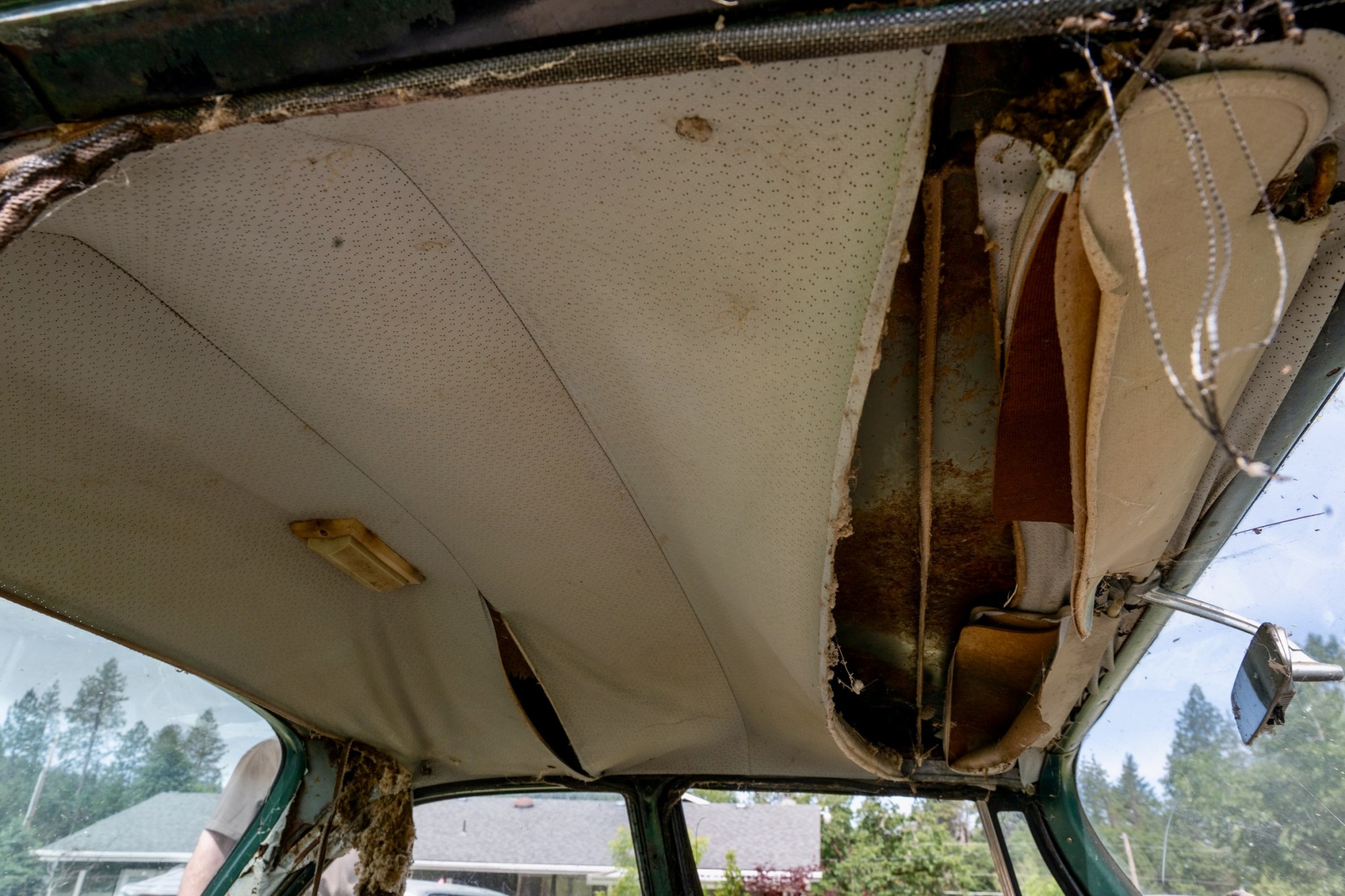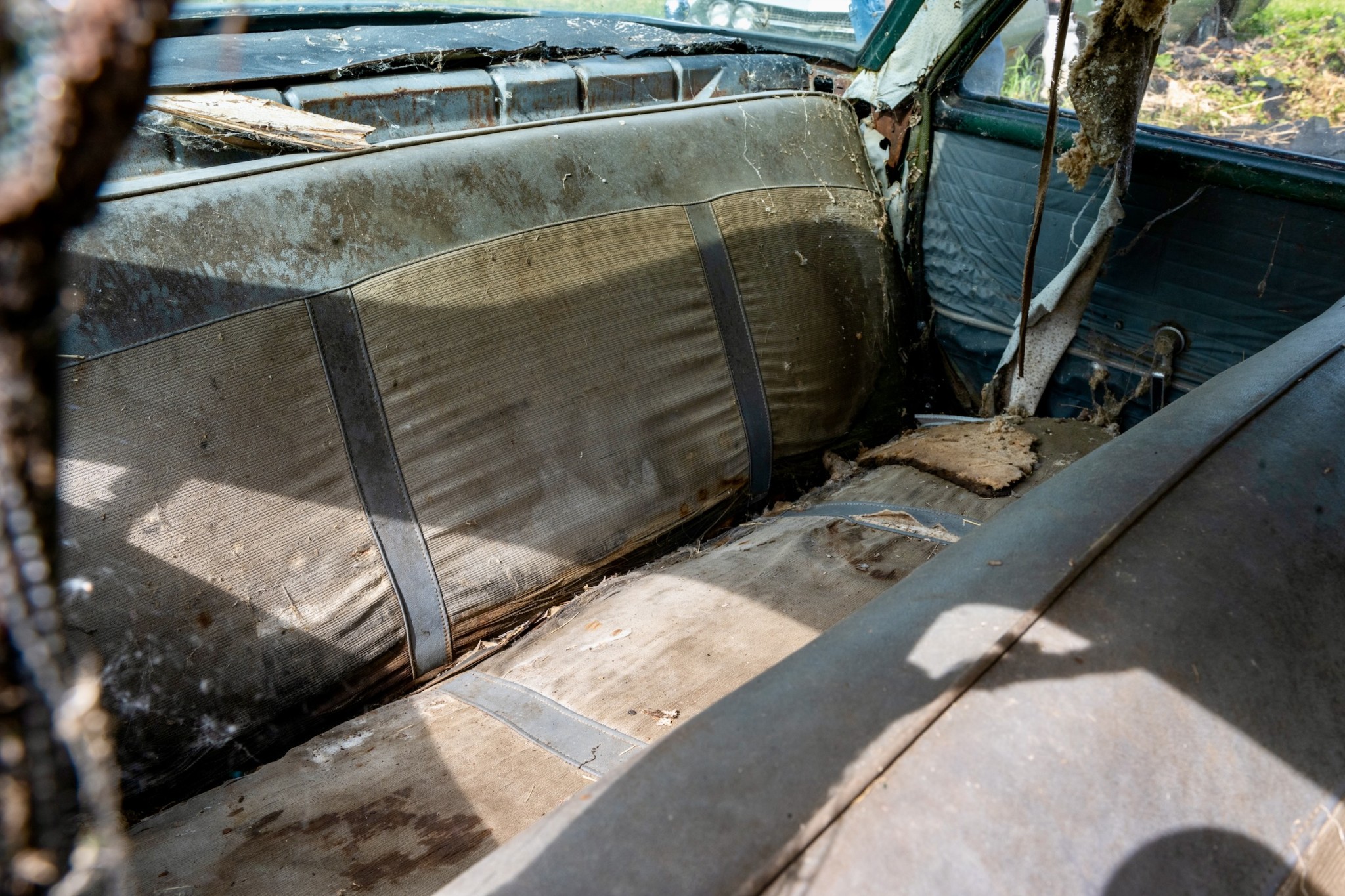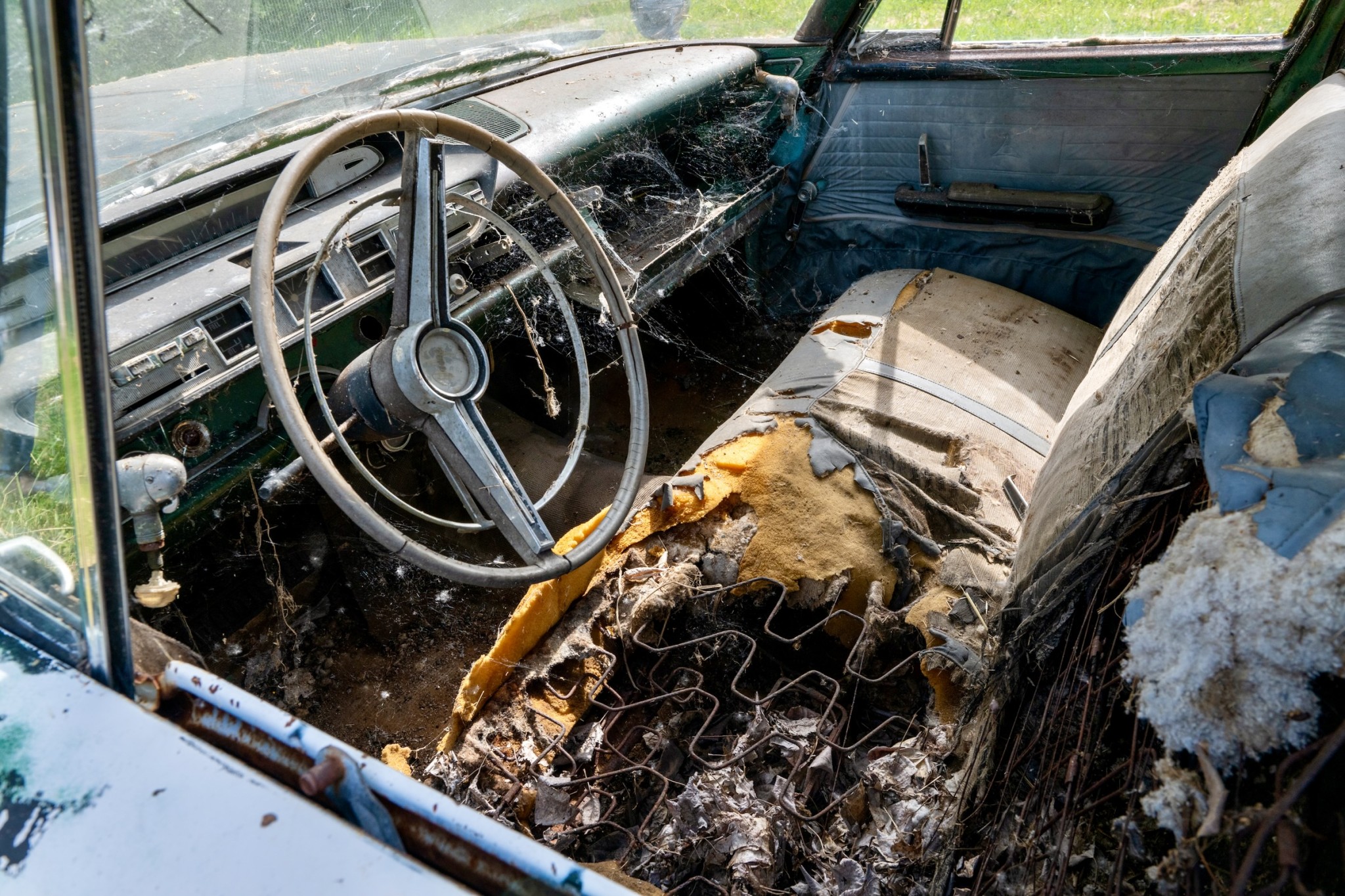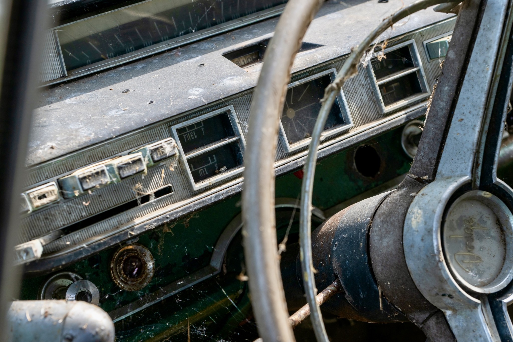 The interior of this 880 will need almost everything, but you can see that the car has spotlights and dashboard brackets that suggest that this car has seen some police duty.
