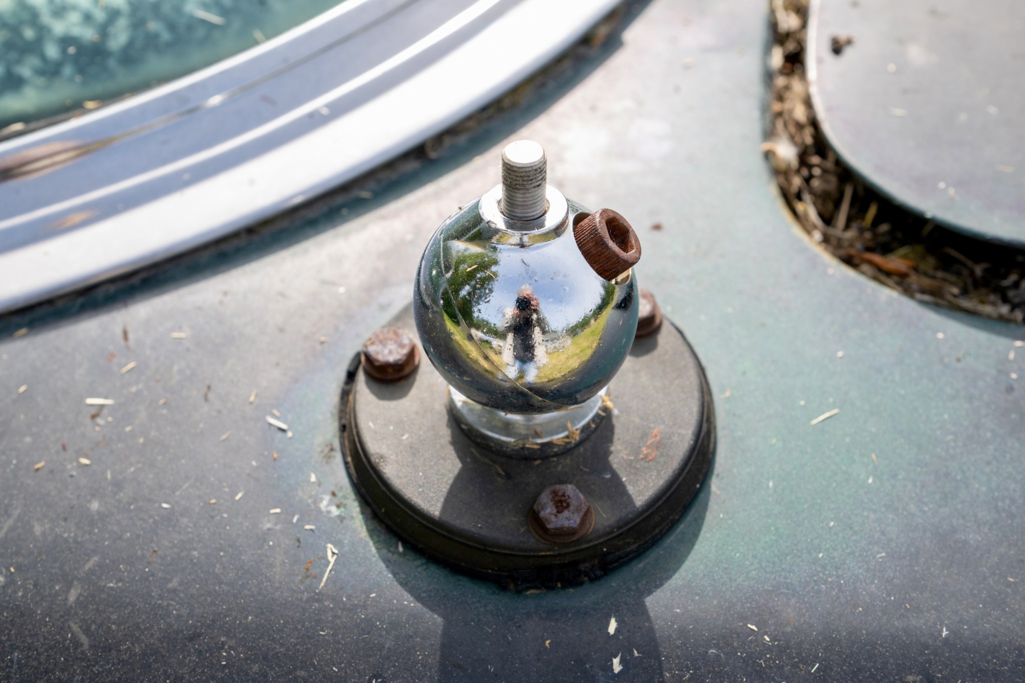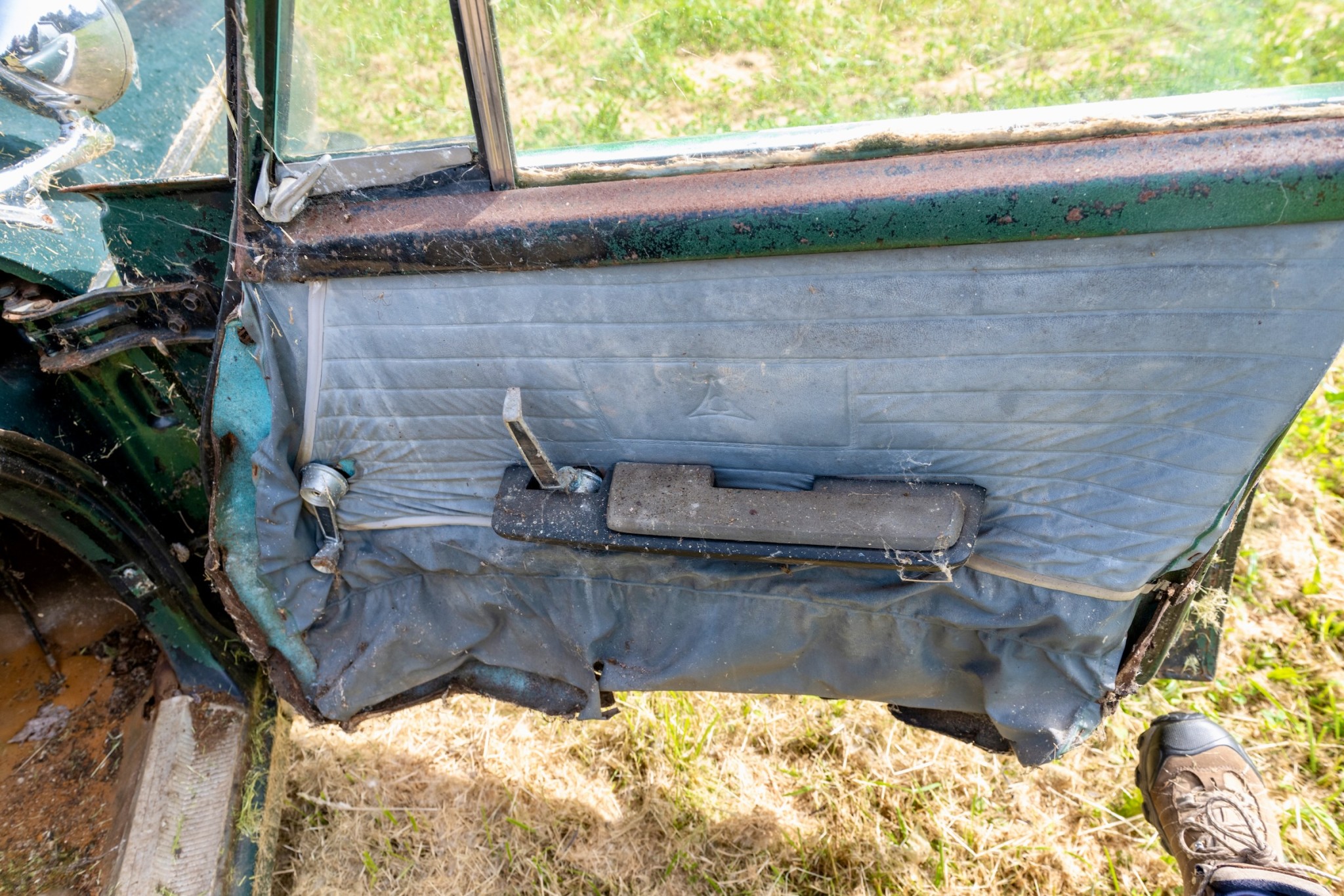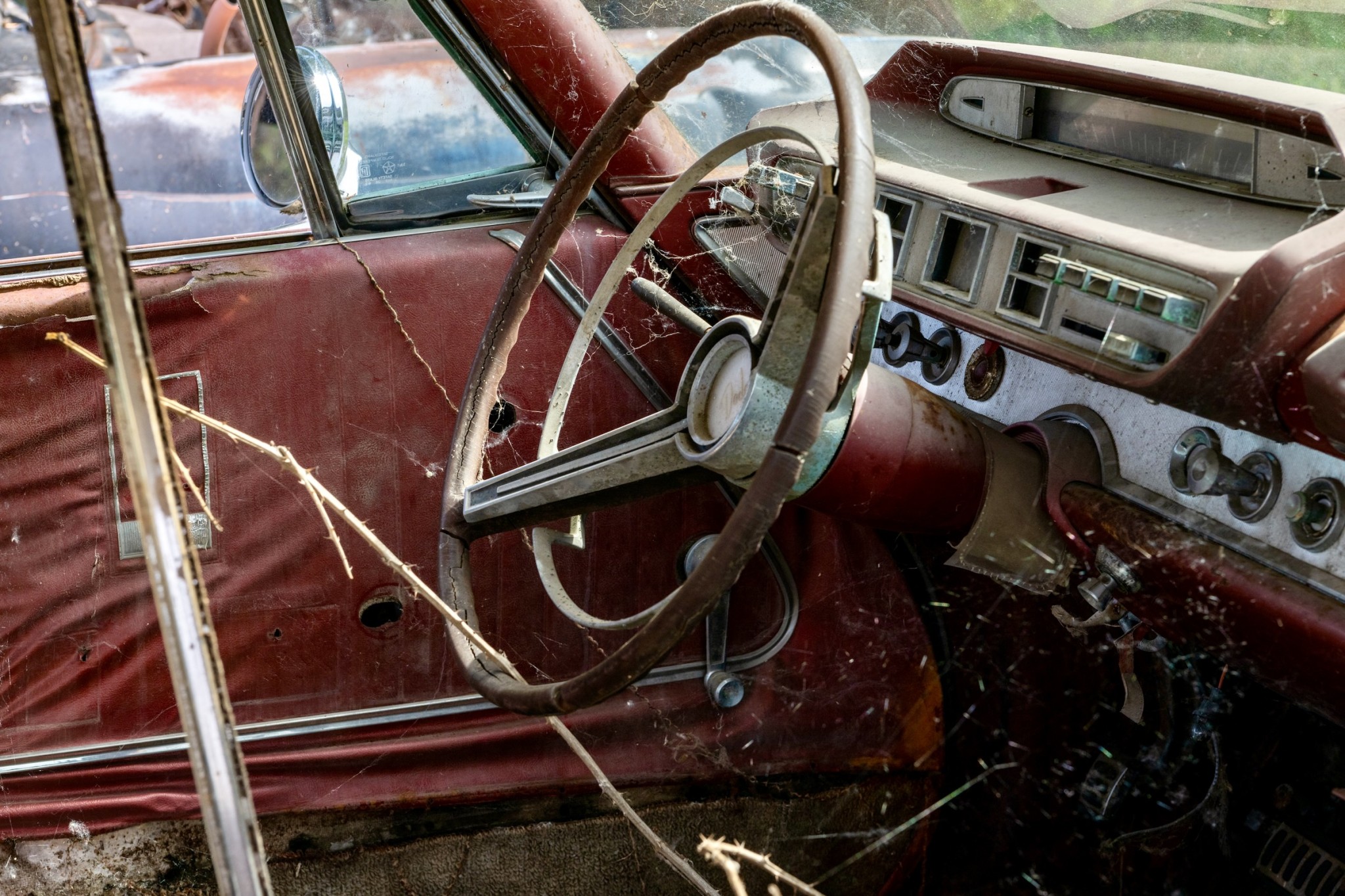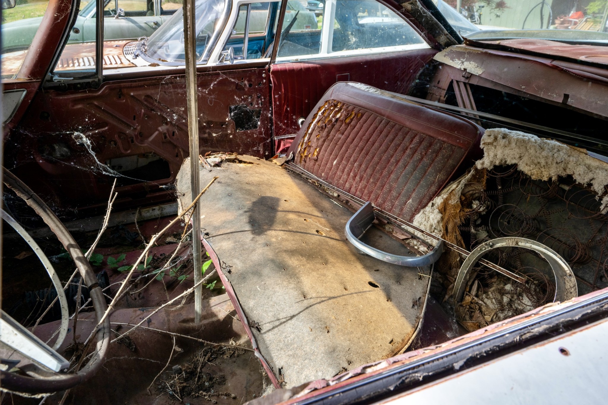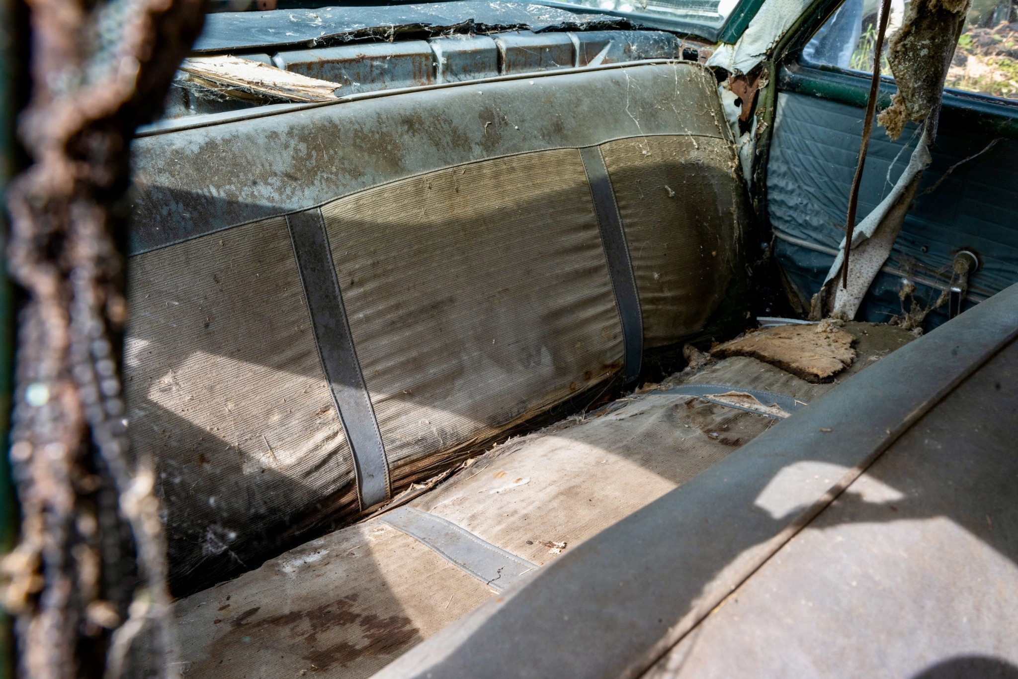 The interior of this 880 will need almost everything, but you can see that the car has spotlights and dashboard brackets that suggest that this car has seen some police duty.