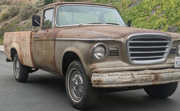 The ’58-’60 Dodge pickup bed details are impossible to miss here, despite the embossed STUDEBAKER tailgate. The Studebaker Champ was only made for model years 1960 through 1964, and, sadly, production ended by the end of 1964. In fact, most of Studebaker’s factories in the U.S. would end. Production moved to Canada for a couple of years after that for cars. There were said to be a few 1965 Champ pickups made in South America, in case any of you wanted to track one down for major cred points at any Cars & Coffee event.