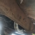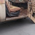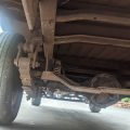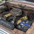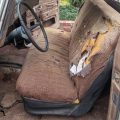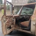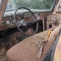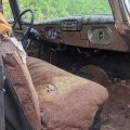 I’m almost certain we had a couch with similar fabric when I was a kid in the 1960s and 70s. I believe the paint color is Desert Tan or possibly Parchment White, or maybe the box/bed is white, and the cab is tan? It’s so faded that it’s hard to tell, and the seller doesn’t show a photo of a data plate, so it’s hard to know. The interior needs a lot of help. There are visible rust holes in the floor, and the seat and door panels are pretty much gone. This truck has a three-speed manual with a column shifter, but a four-speed would have been available, along with a BorgWarner automatic.