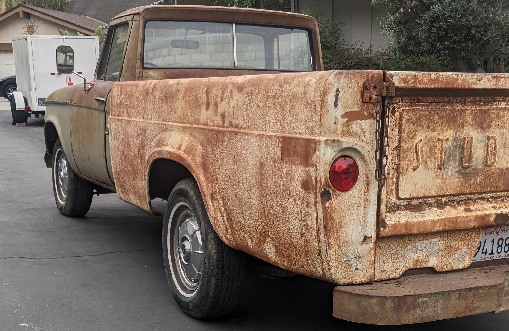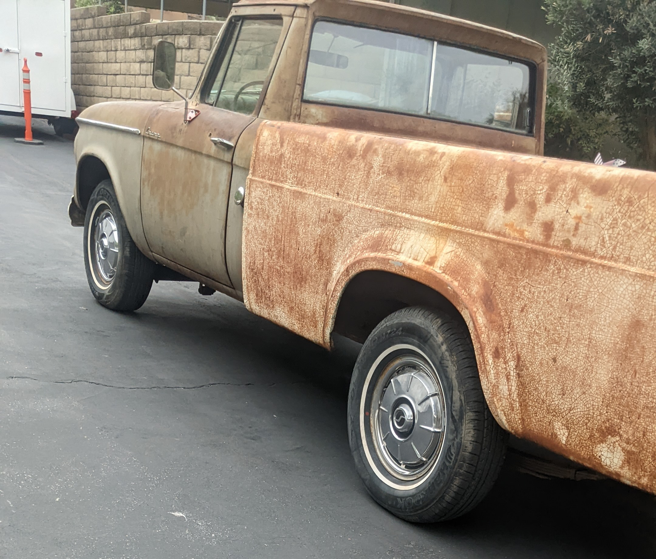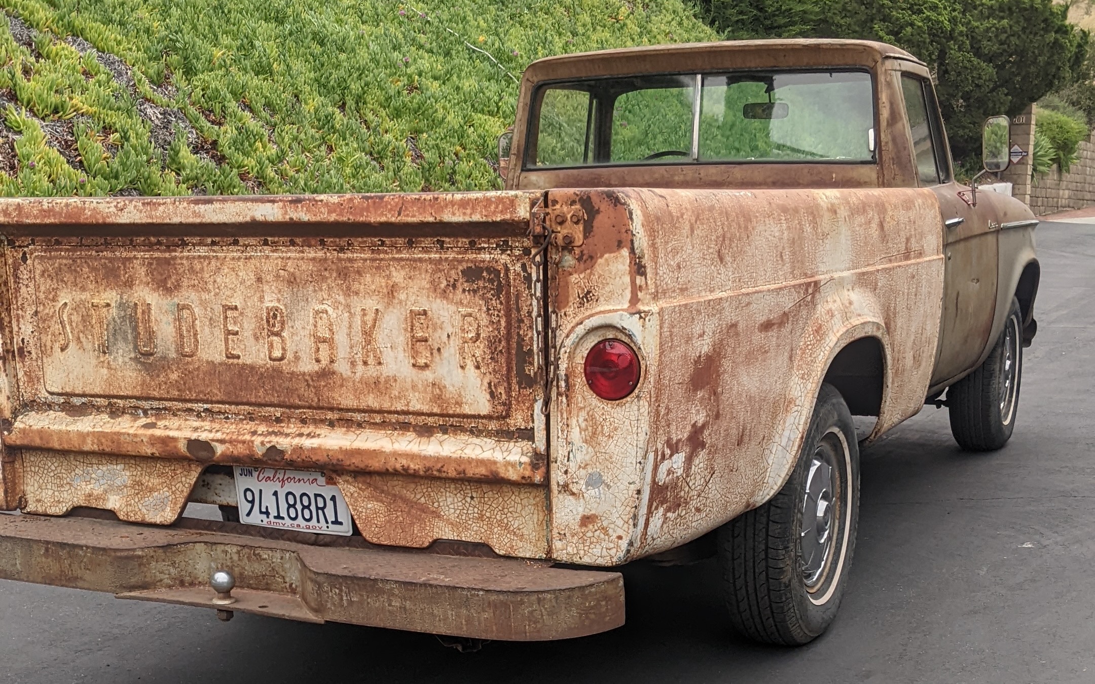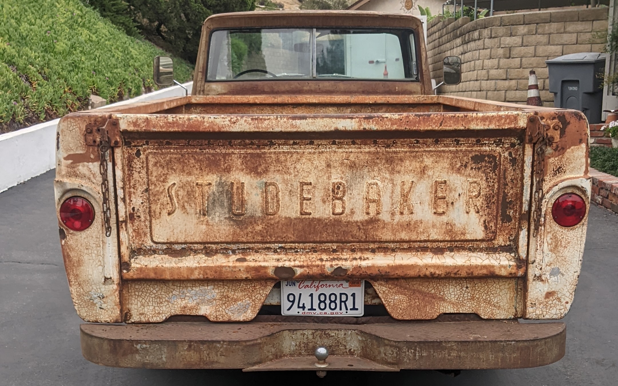 The ’58-’60 Dodge pickup bed details are impossible to miss here, despite the embossed STUDEBAKER tailgate. The Studebaker Champ was only made for model years 1960 through 1964, and, sadly, production ended by the end of 1964. In fact, most of Studebaker’s factories in the U.S. would end. Production moved to Canada for a couple of years after that for cars. There were said to be a few 1965 Champ pickups made in South America, in case any of you wanted to track one down for major cred points at any Cars & Coffee event.