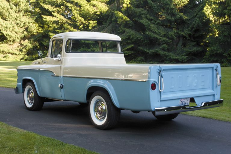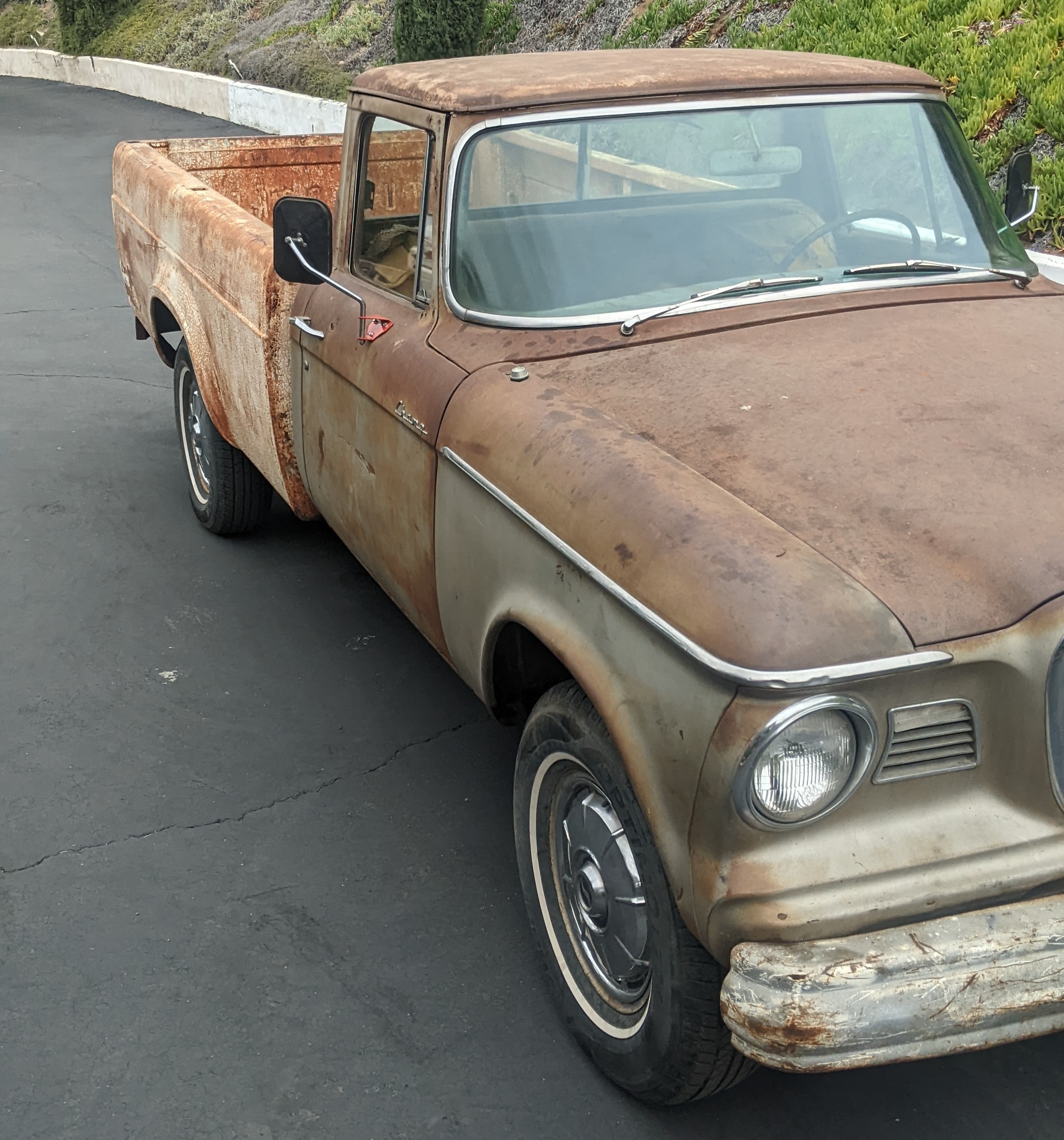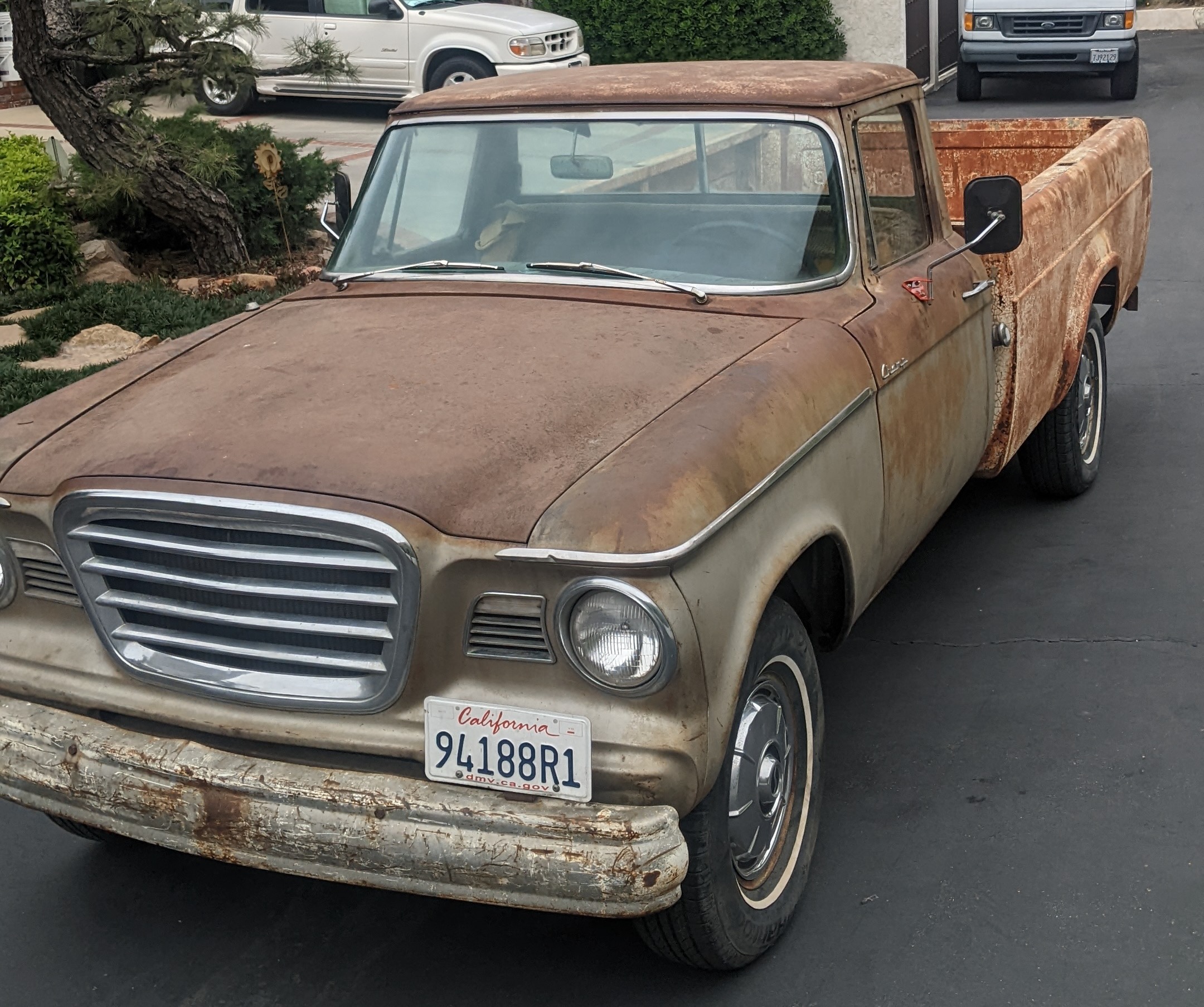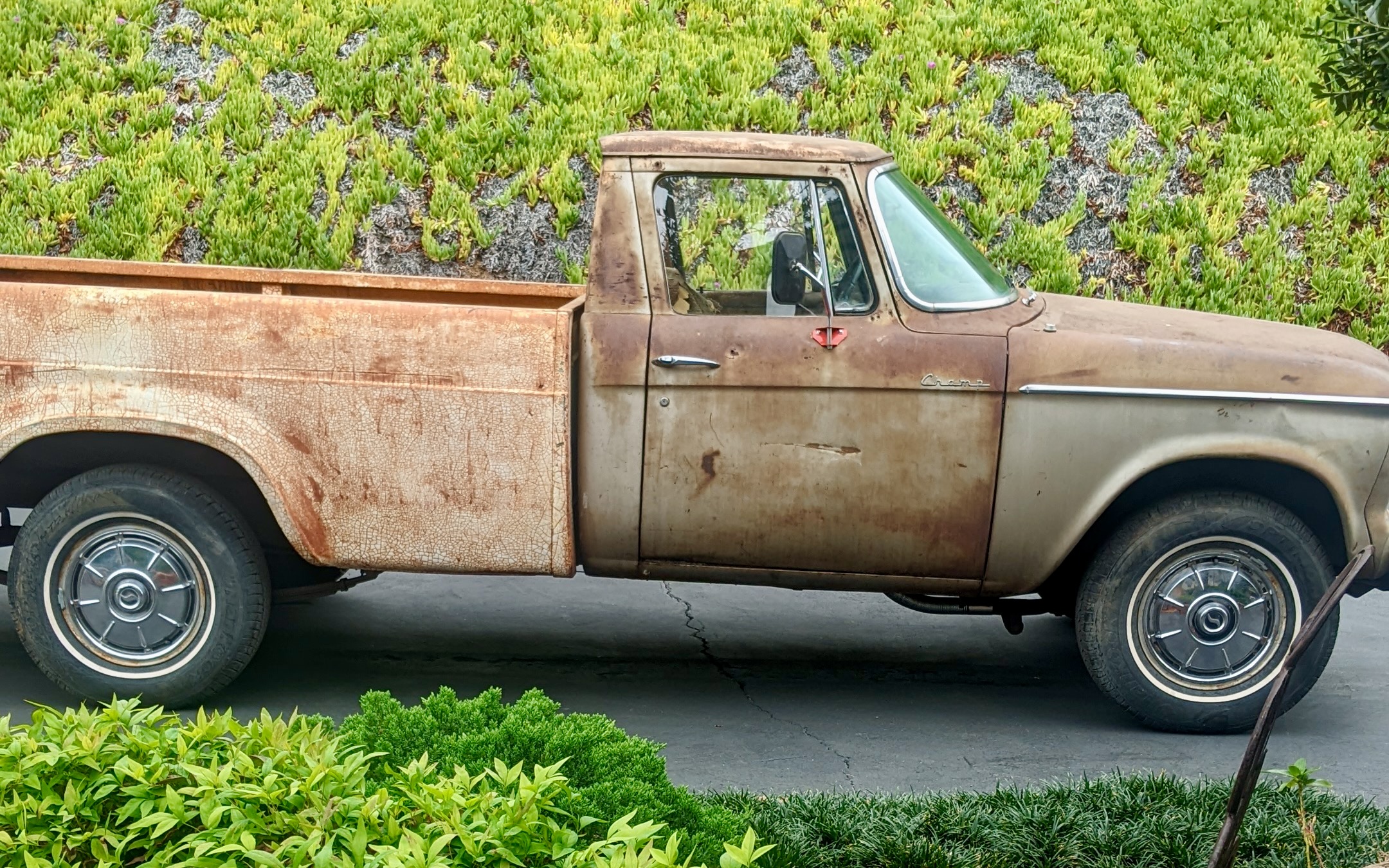 The ’58-’60 Dodge pickup bed details are impossible to miss here, despite the embossed STUDEBAKER tailgate. The Studebaker Champ was only made for model years 1960 through 1964, and, sadly, production ended by the end of 1964. In fact, most of Studebaker’s factories in the U.S. would end. Production moved to Canada for a couple of years after that for cars. There were said to be a few 1965 Champ pickups made in South America, in case any of you wanted to track one down for major cred points at any Cars & Coffee event.