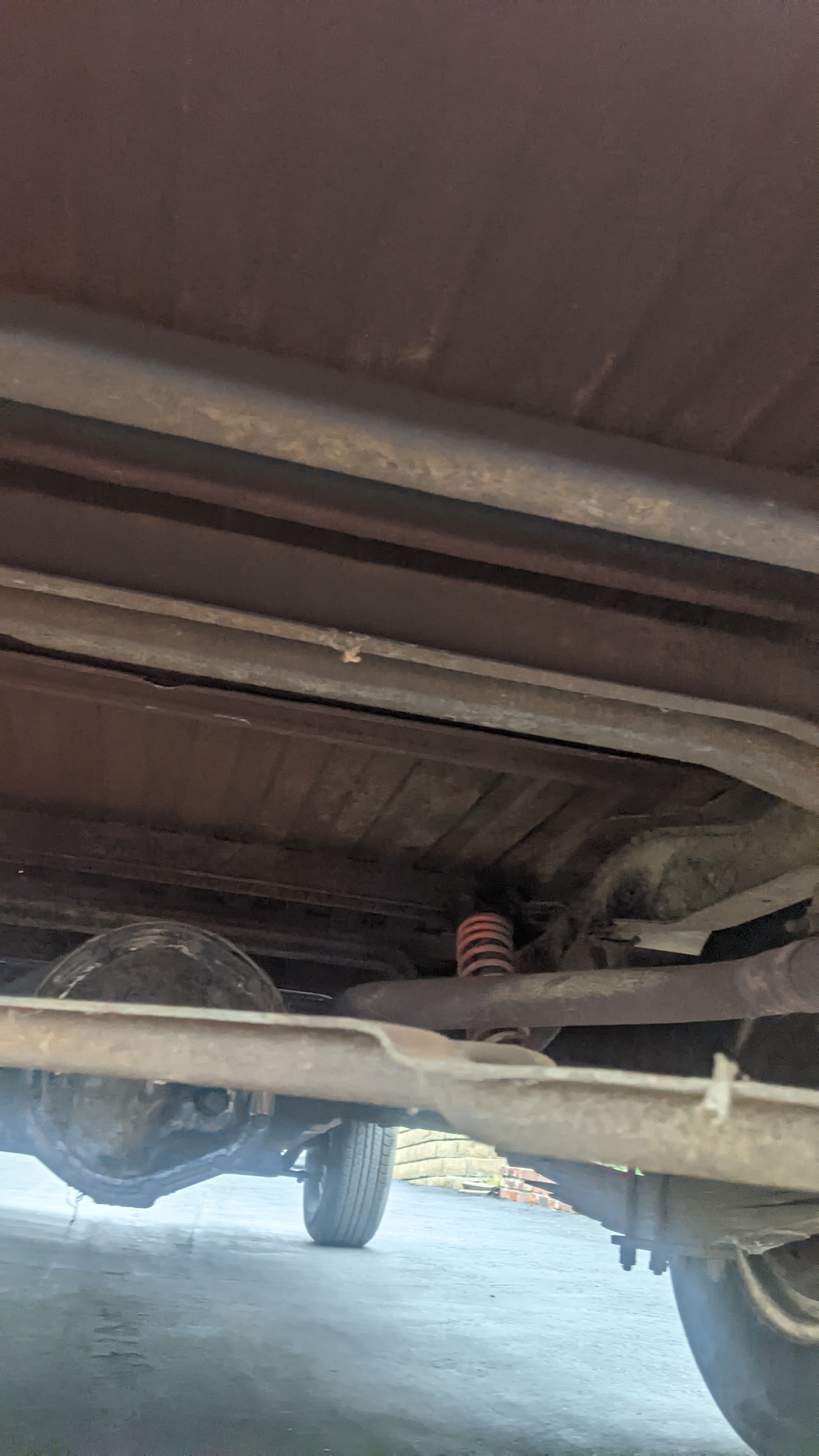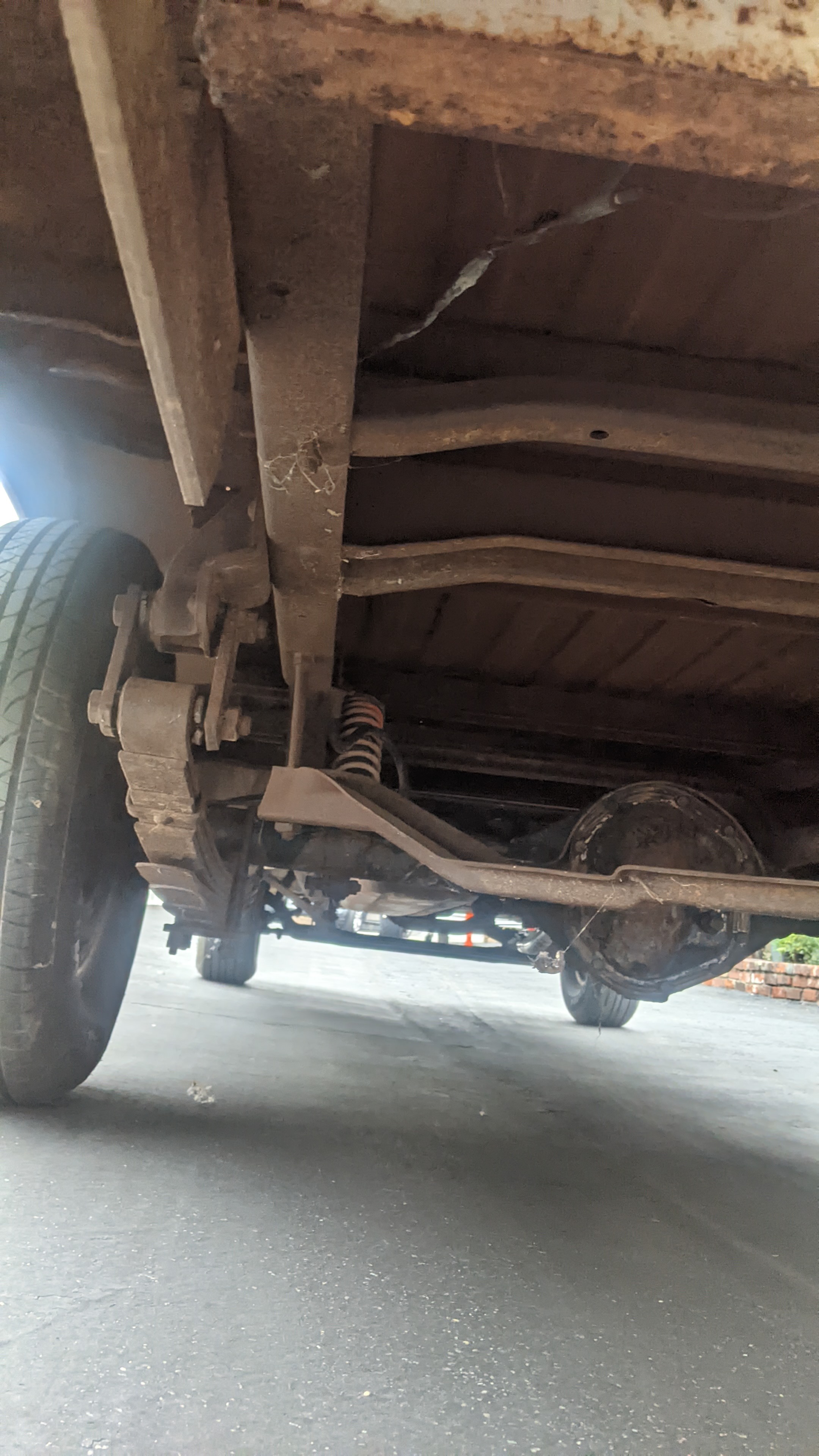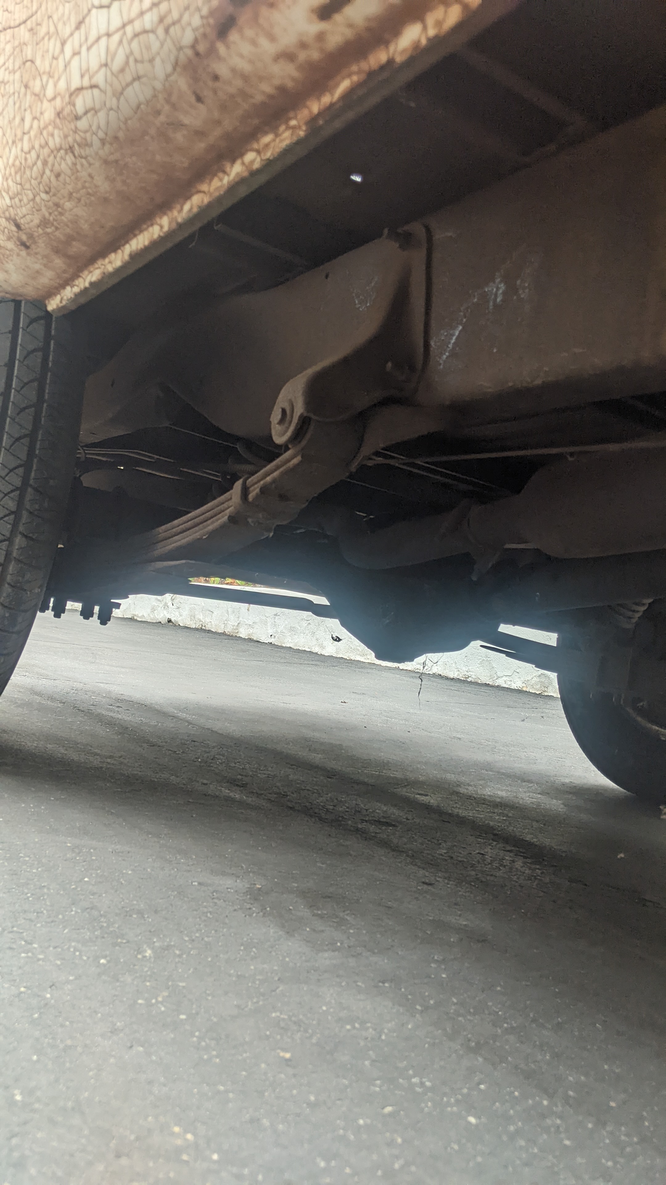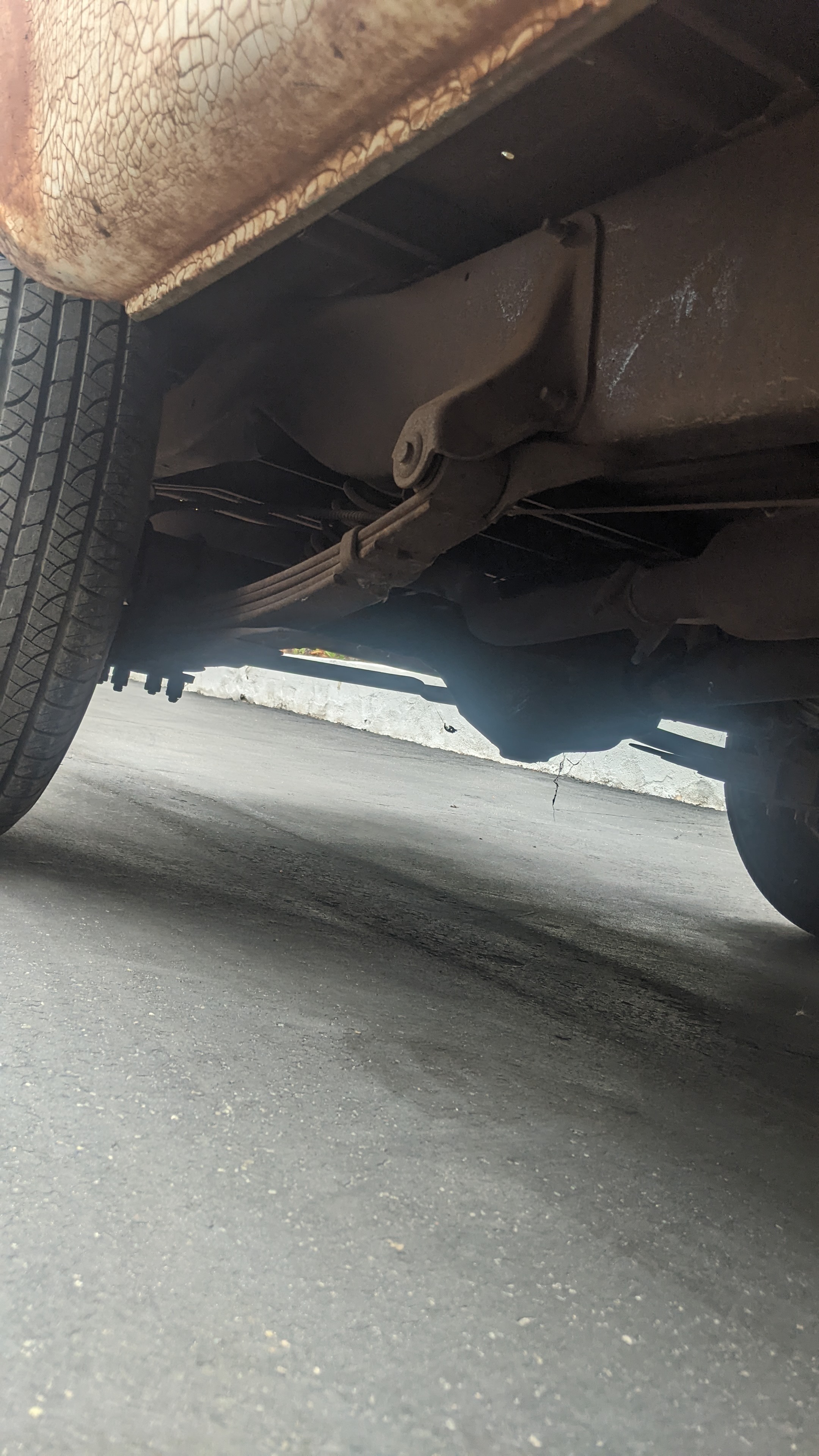 I’m almost certain we had a couch with similar fabric when I was a kid in the 1960s and 70s. I believe the paint color is Desert Tan or possibly Parchment White, or maybe the box/bed is white, and the cab is tan? It’s so faded that it’s hard to tell, and the seller doesn’t show a photo of a data plate, so it’s hard to know. The interior needs a lot of help. There are visible rust holes in the floor, and the seat and door panels are pretty much gone. This truck has a three-speed manual with a column shifter, but a four-speed would have been available, along with a BorgWarner automatic.