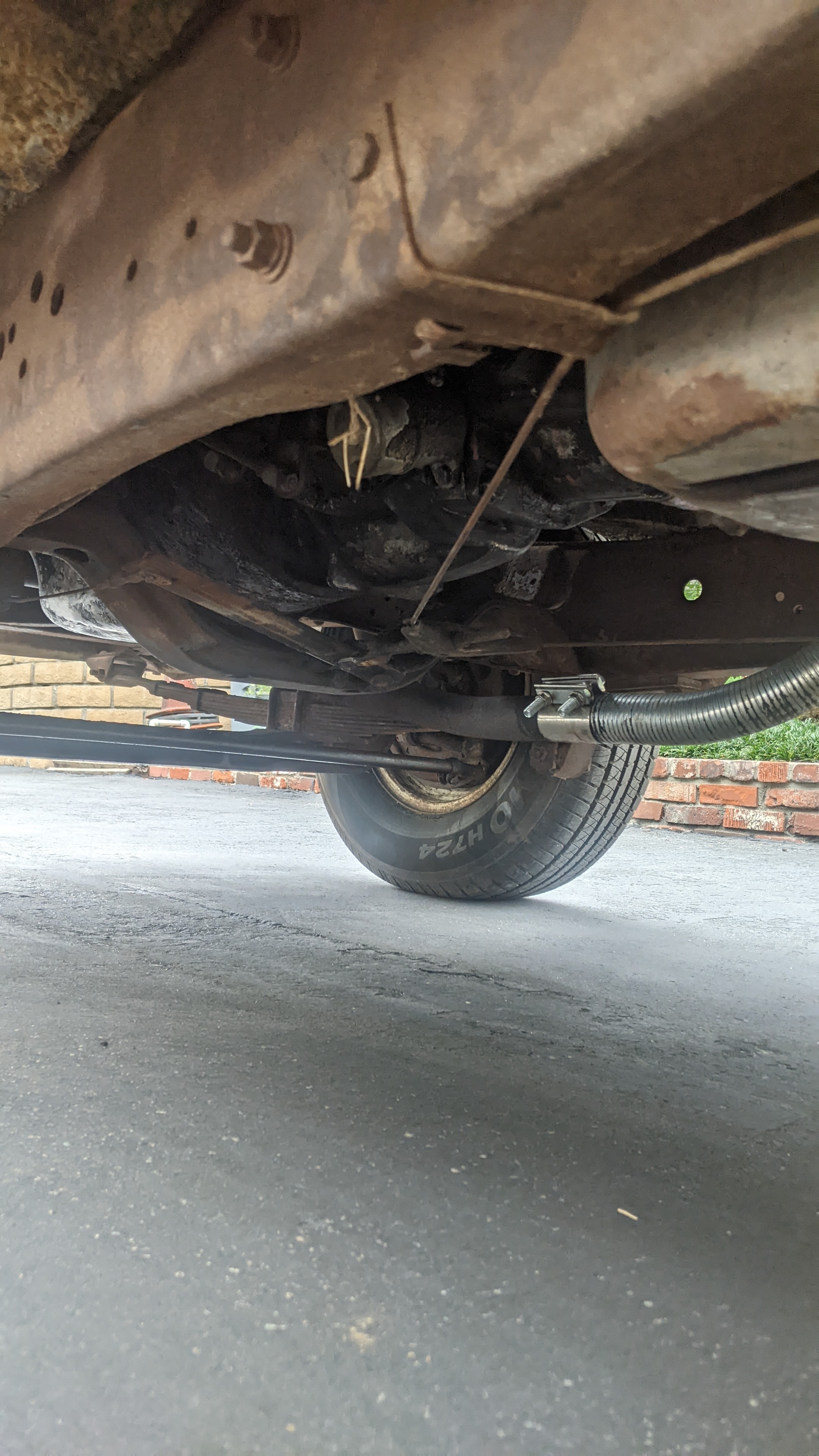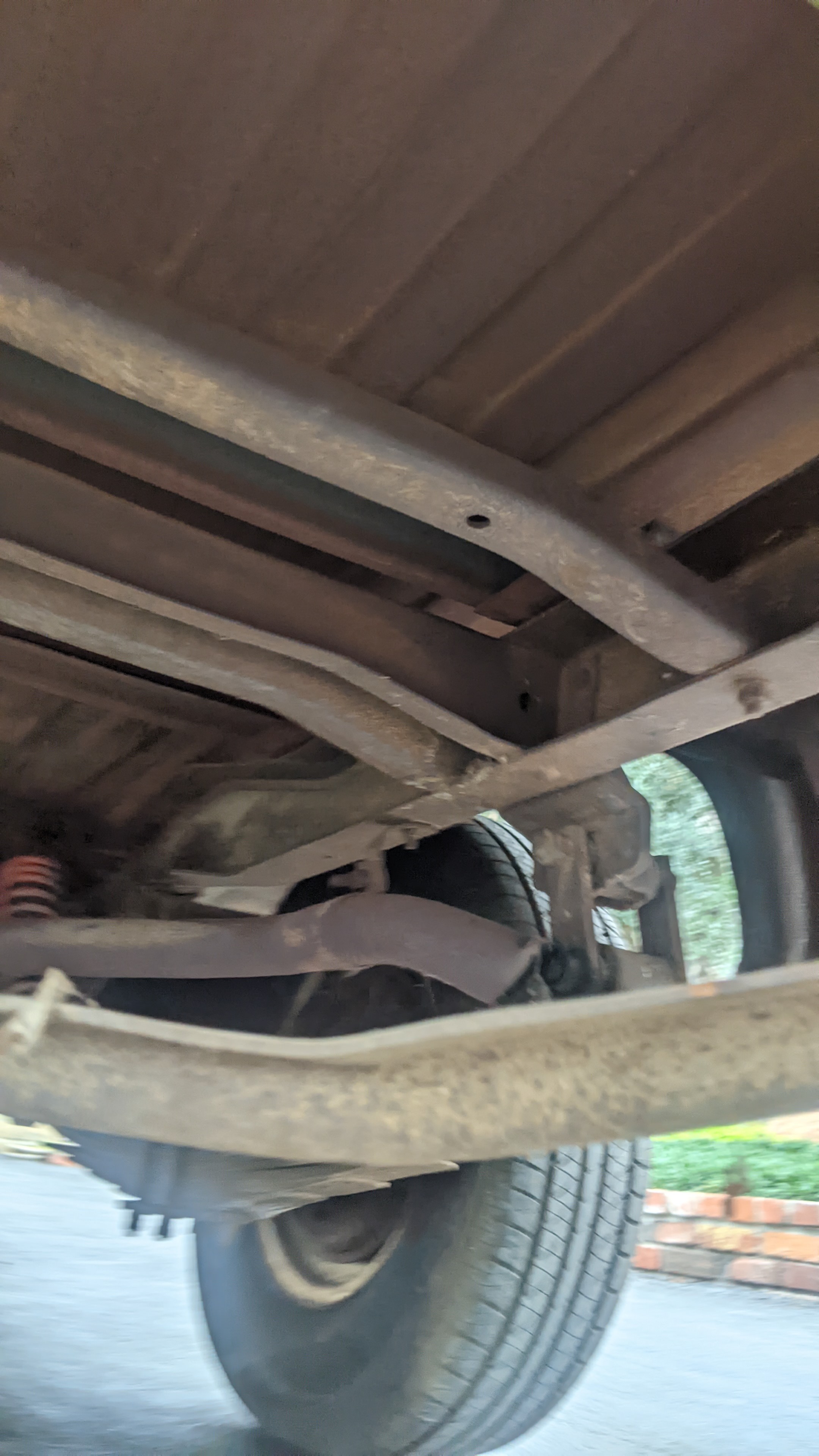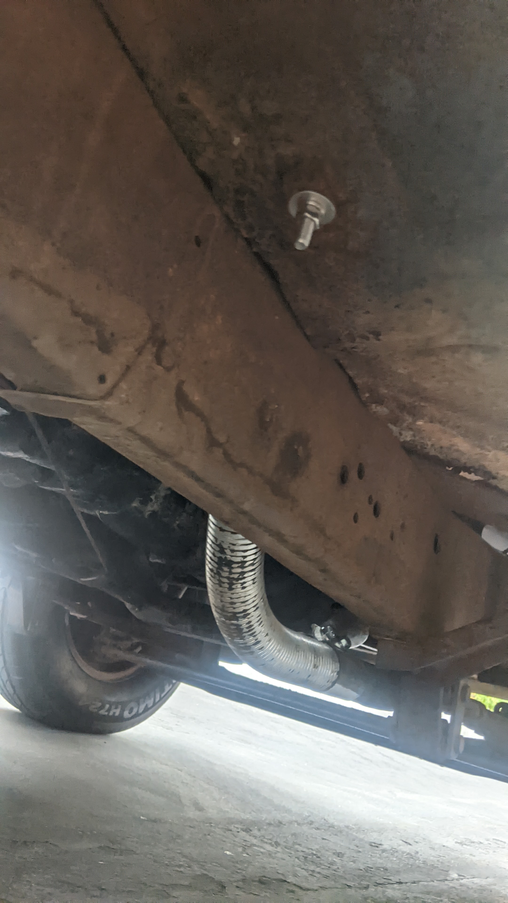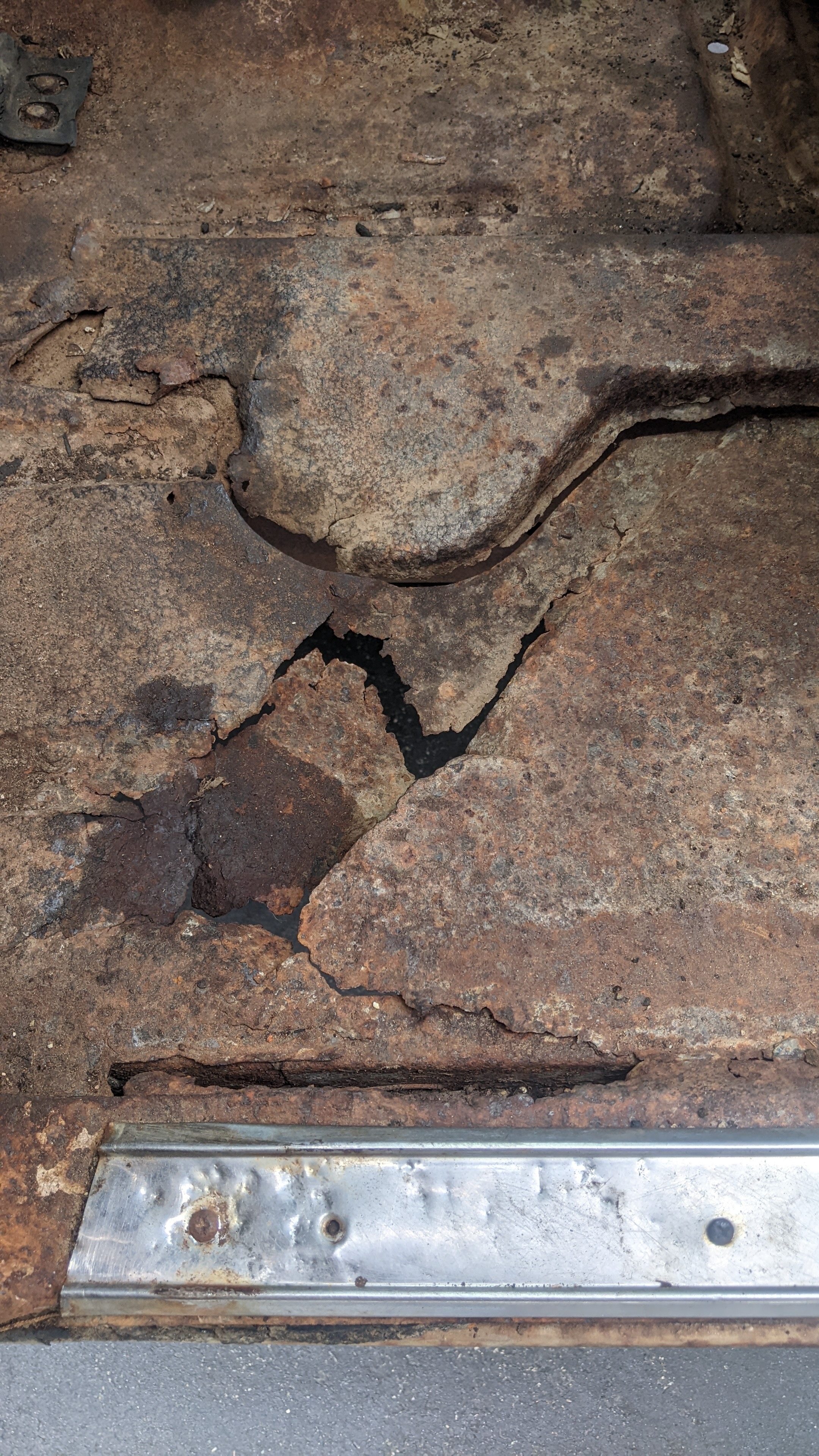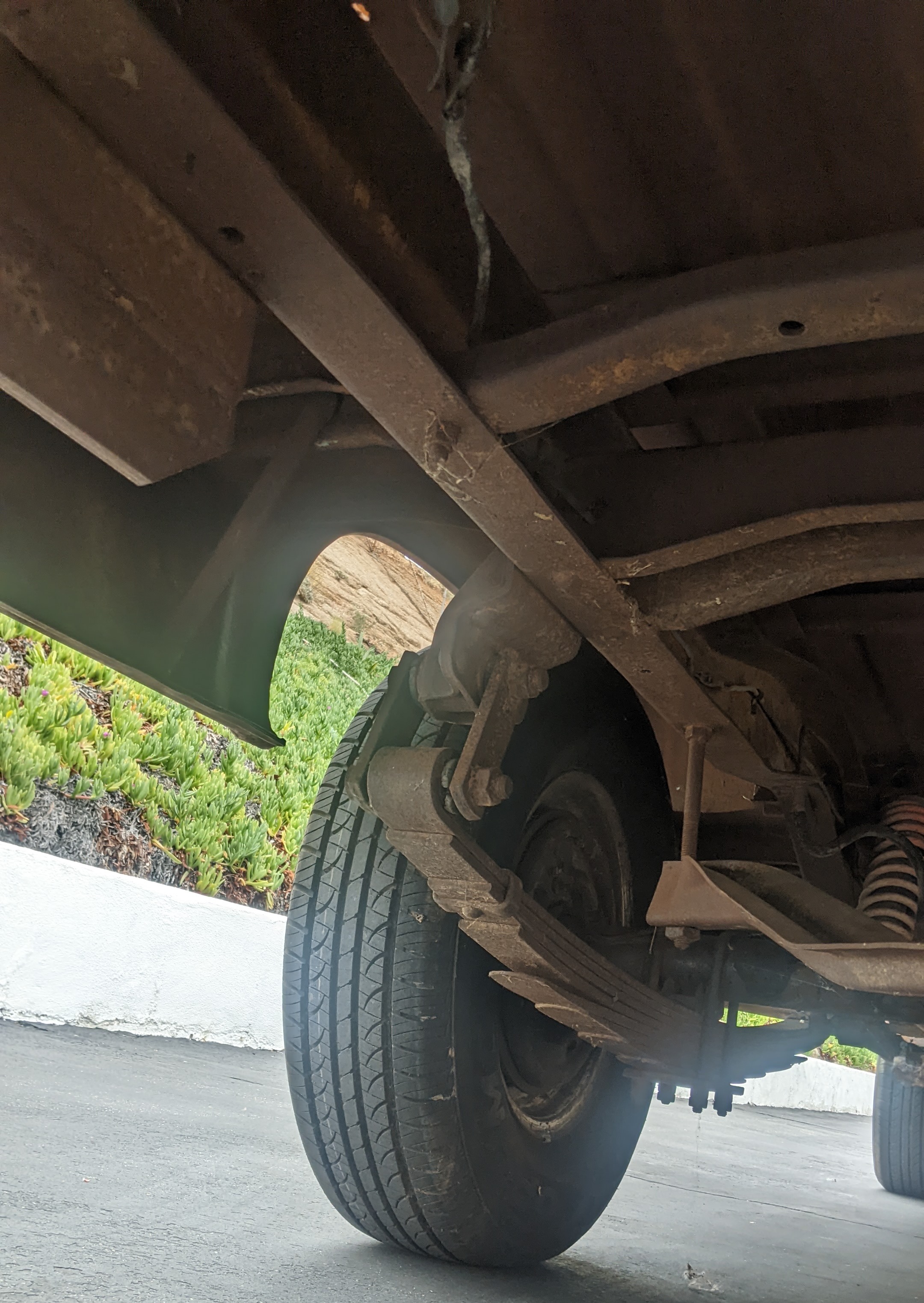 I’m almost certain we had a couch with similar fabric when I was a kid in the 1960s and 70s. I believe the paint color is Desert Tan or possibly Parchment White, or maybe the box/bed is white, and the cab is tan? It’s so faded that it’s hard to tell, and the seller doesn’t show a photo of a data plate, so it’s hard to know. The interior needs a lot of help. There are visible rust holes in the floor, and the seat and door panels are pretty much gone. This truck has a three-speed manual with a column shifter, but a four-speed would have been available, along with a BorgWarner automatic.