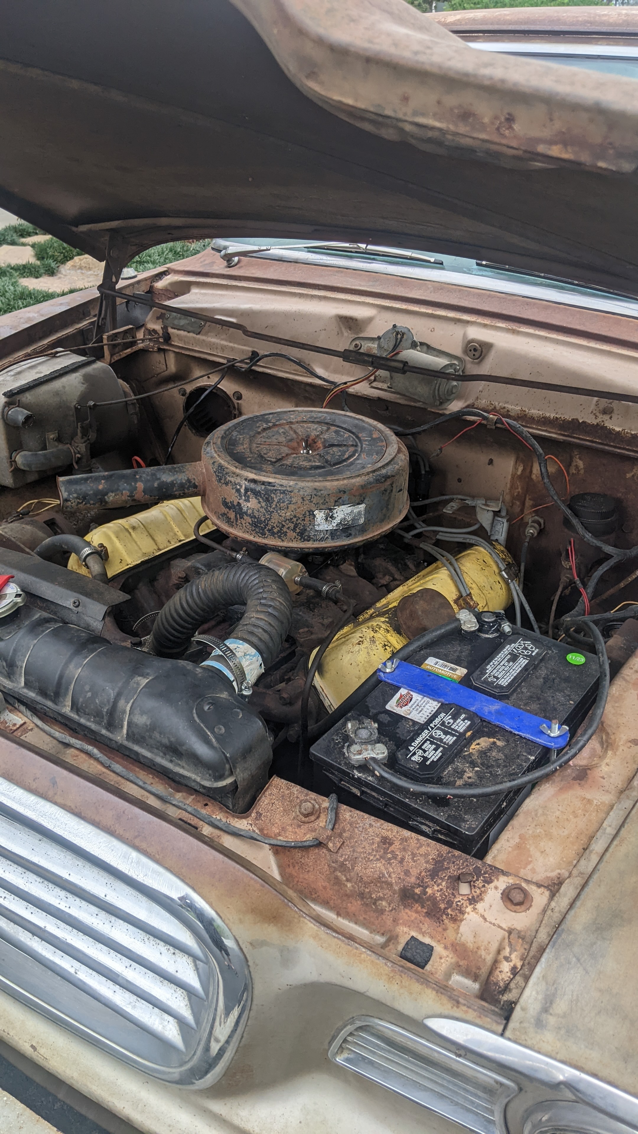 Those yellow valve covers are so great. I love that Studebaker used yellow on their V8 engines. This engine is Studebaker’s 289-cu.in. OHV V8, which was rated at 210 horsepower and is backed by a three-speed manual with overdrive and a column shifter sending power to the rear wheels. The seller says it, ah-hem, “runs like a Champ,” Ha. Bonus points for a good dad joke! This truck doesn’t smoke, overheat, or make strange noises, unlike 74% of Barn Finds writers and/or readers. You’ll likely never see a power steering pump on a Champ, as it was never offered from the factory, unless an owner added it later. This one is wearing new tires, brakes, a new fuel pump, and a new water pump, and this looks like a really nice project truck for anyone into pickups that aren’t from the big three. Please check out the photos and get your bids in on this Barn Finds Auction!