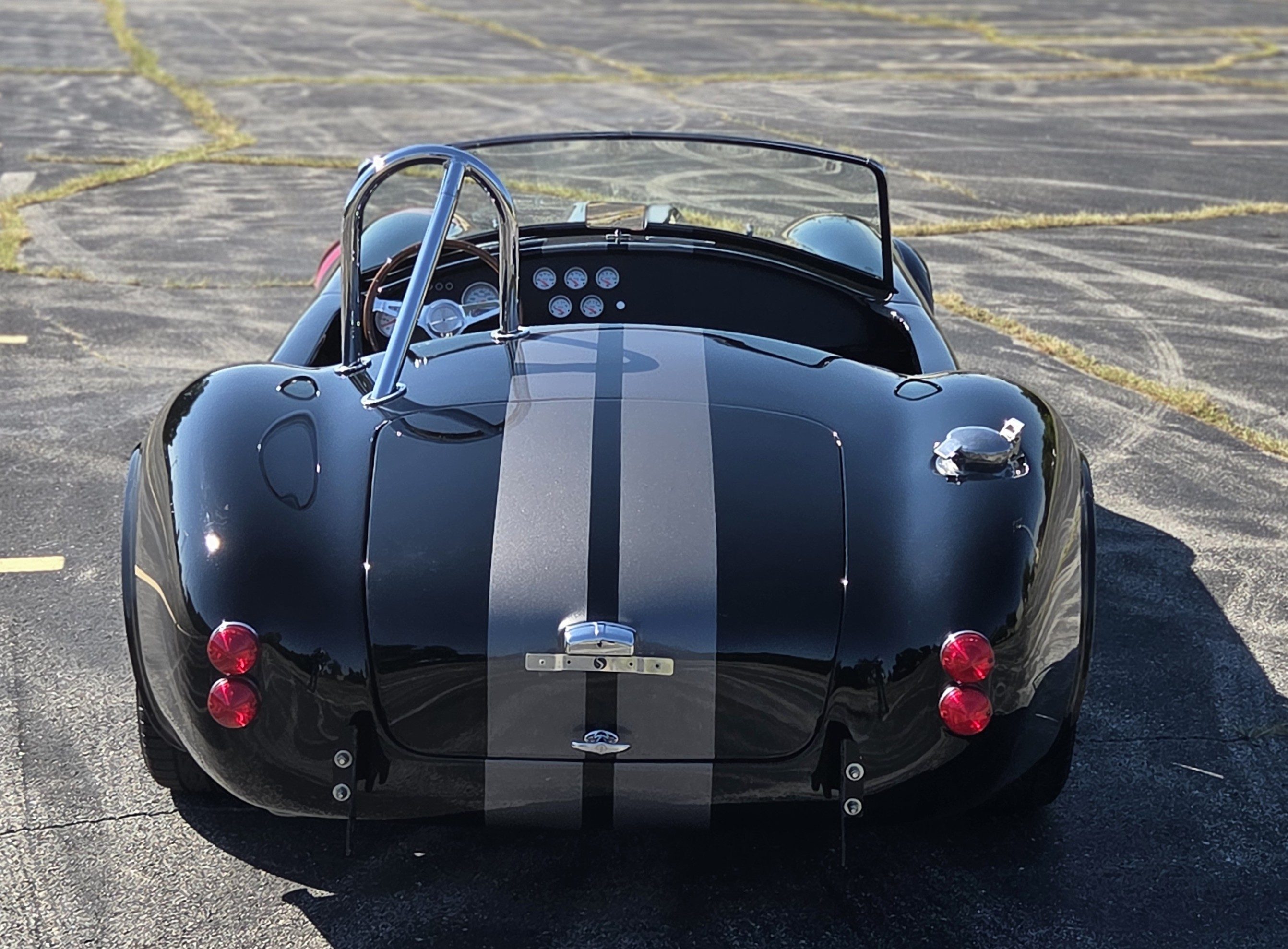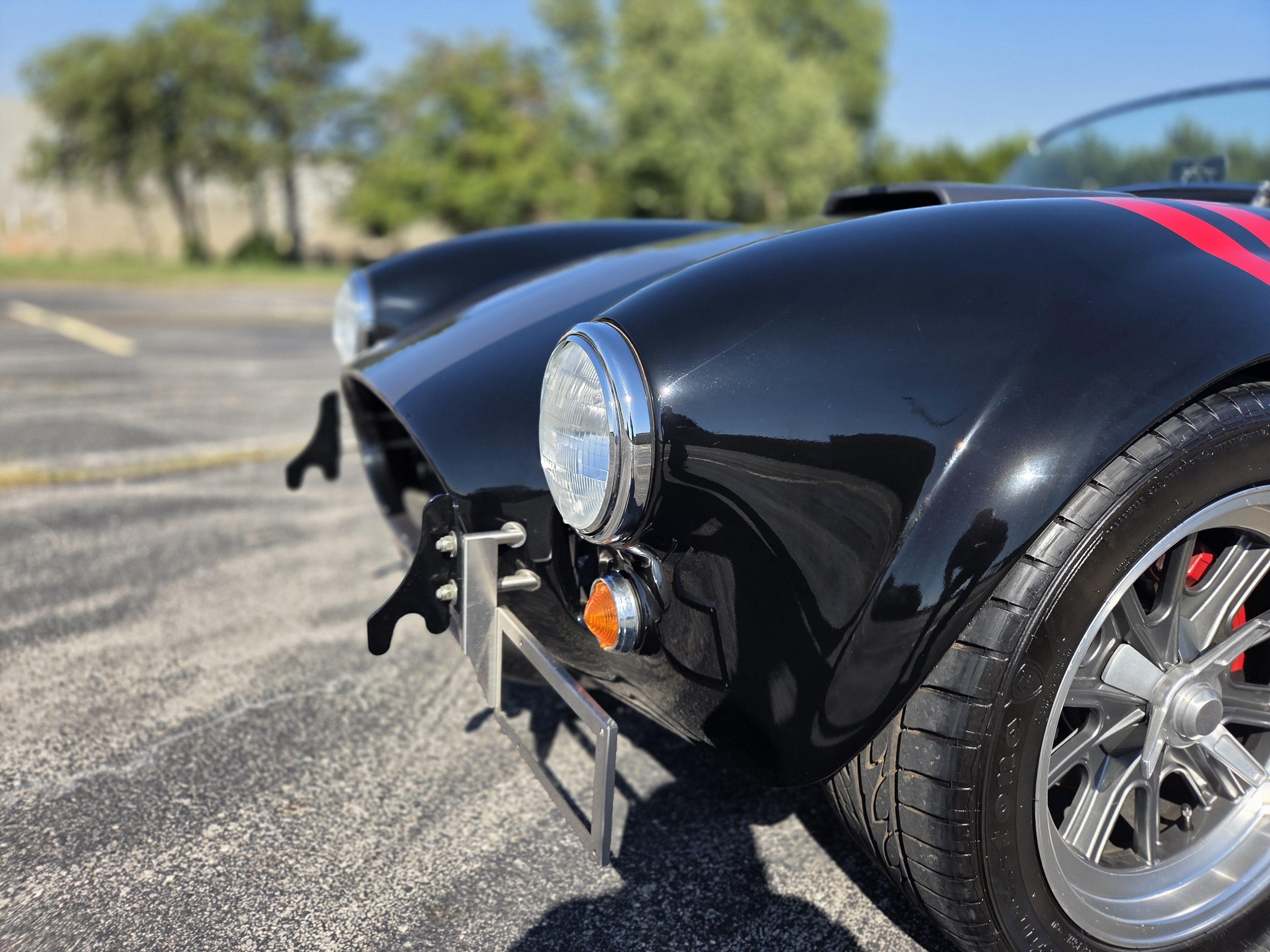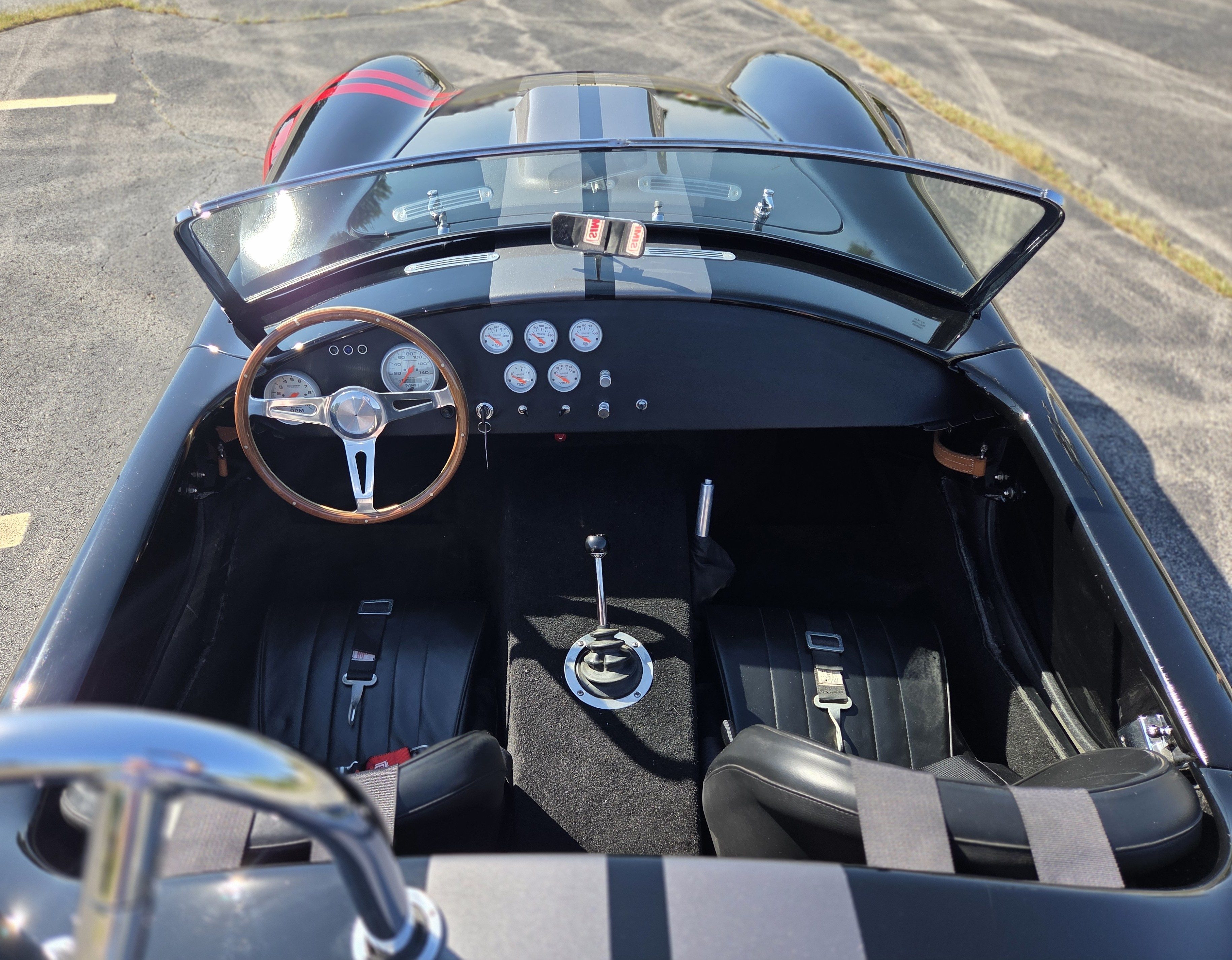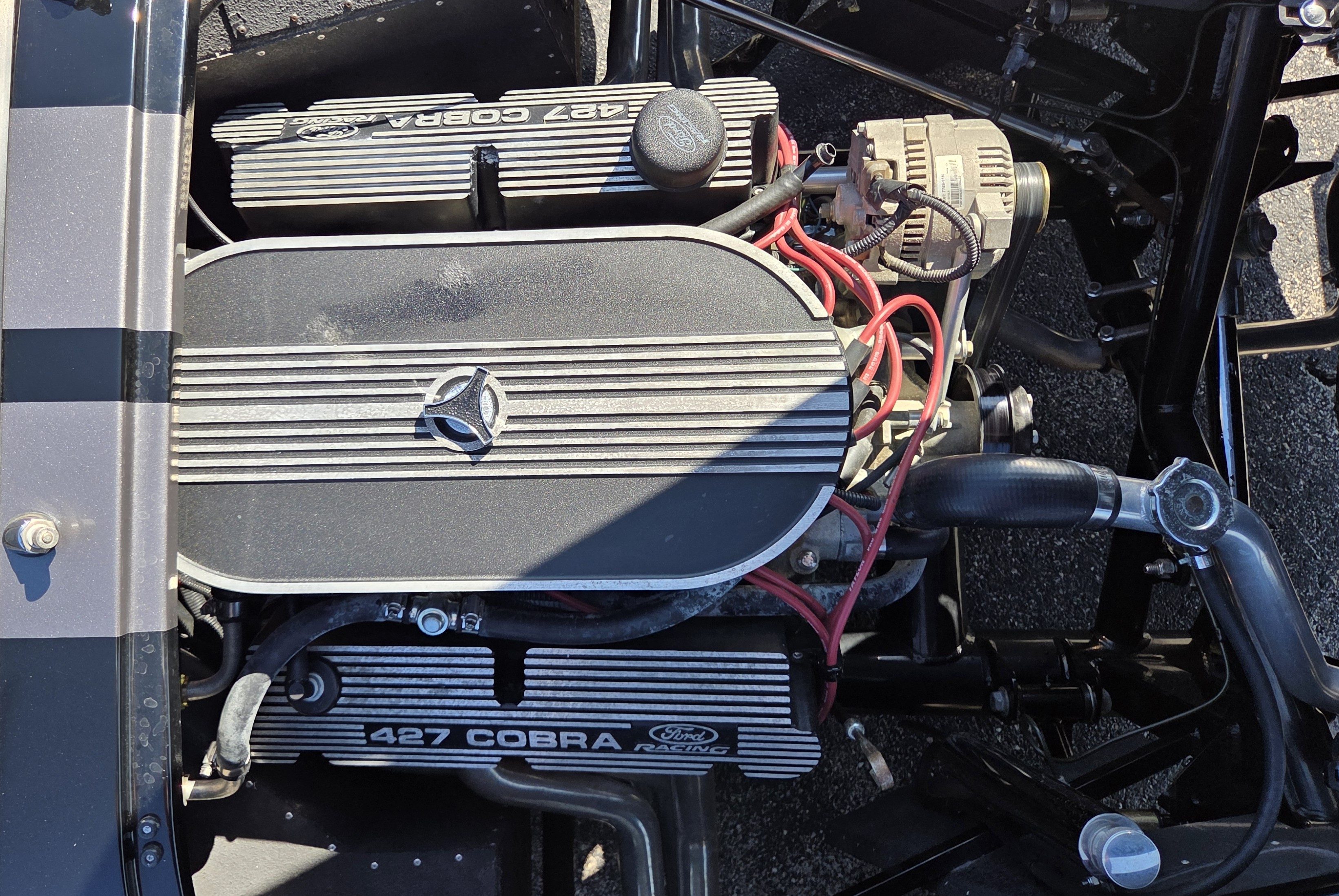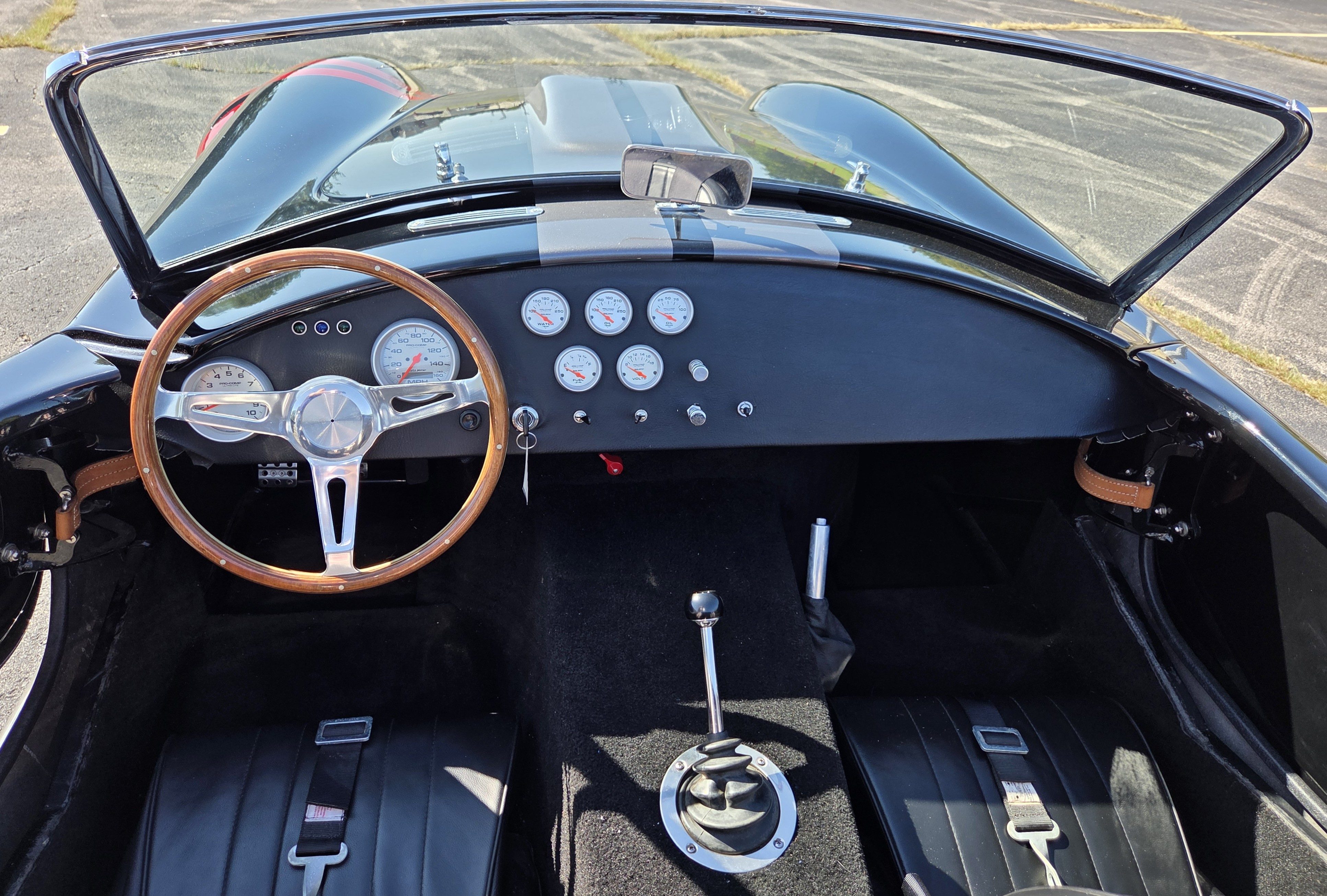 Tilting the hood forward reveals a 427ci V8. It inhales deeply through a Holley 750cfm Ultra Double Pumper carburetor, while the Hyfire electronic ignition delivers a strong spark to ignite the mixture. The spent gases exit via stainless steel headers and a matching dual side exhaust, and an aluminum radiator effectively controls the V8’s temperature. The power feeds to an 8.8″ Ford rear end via a five-speed Tremec manual transmission. Combine the car’s low curb weight with a mountain of power and torque, and this Mk 4 will command respect wherever it goes. It is a complete package, featuring tubular suspension arms, adjustable coil-overs on all corners, and legendary Wilwood disc brakes. There is no doubt that this Cobra possesses the handling and stopping power to match its engine performance.