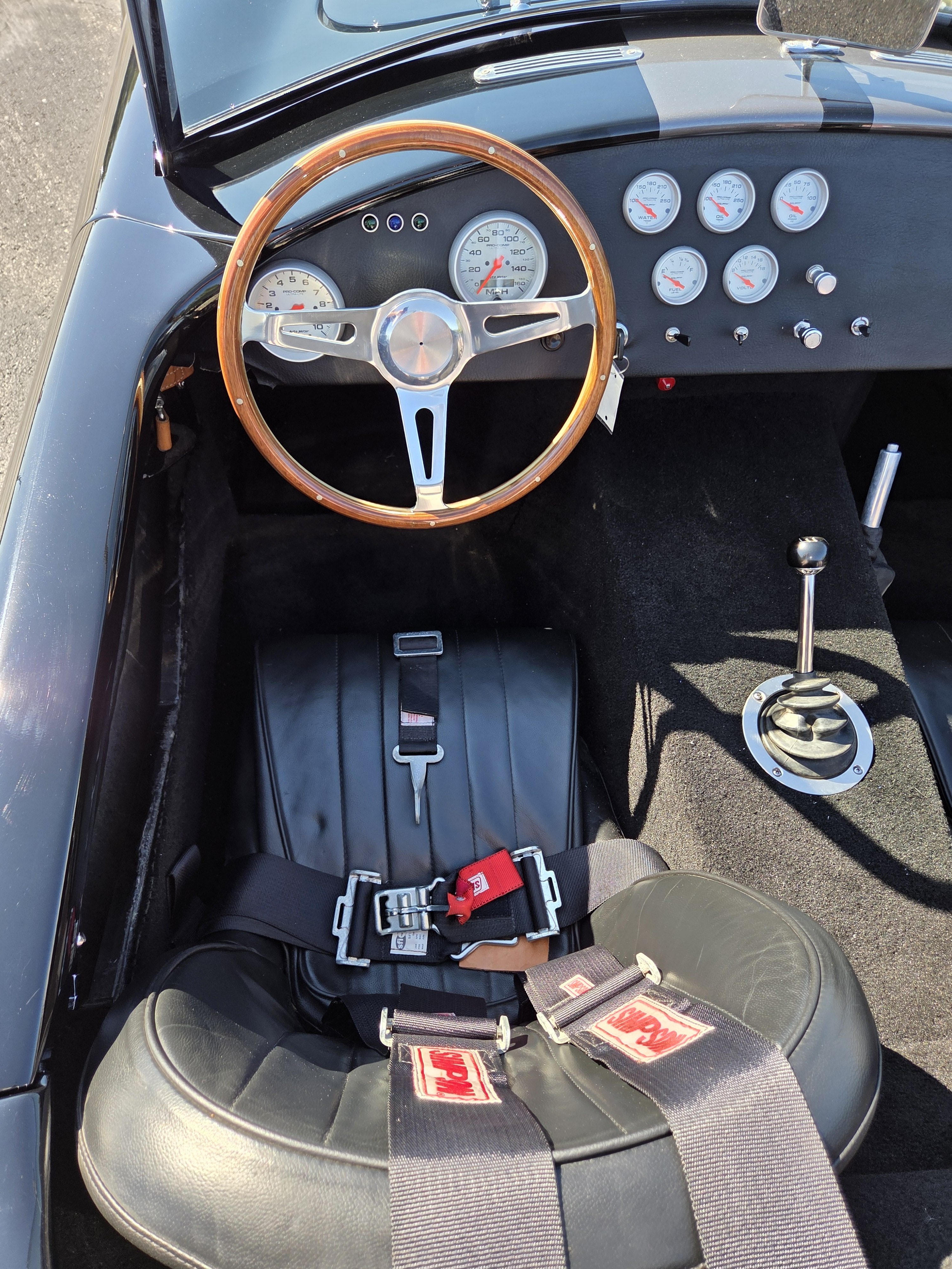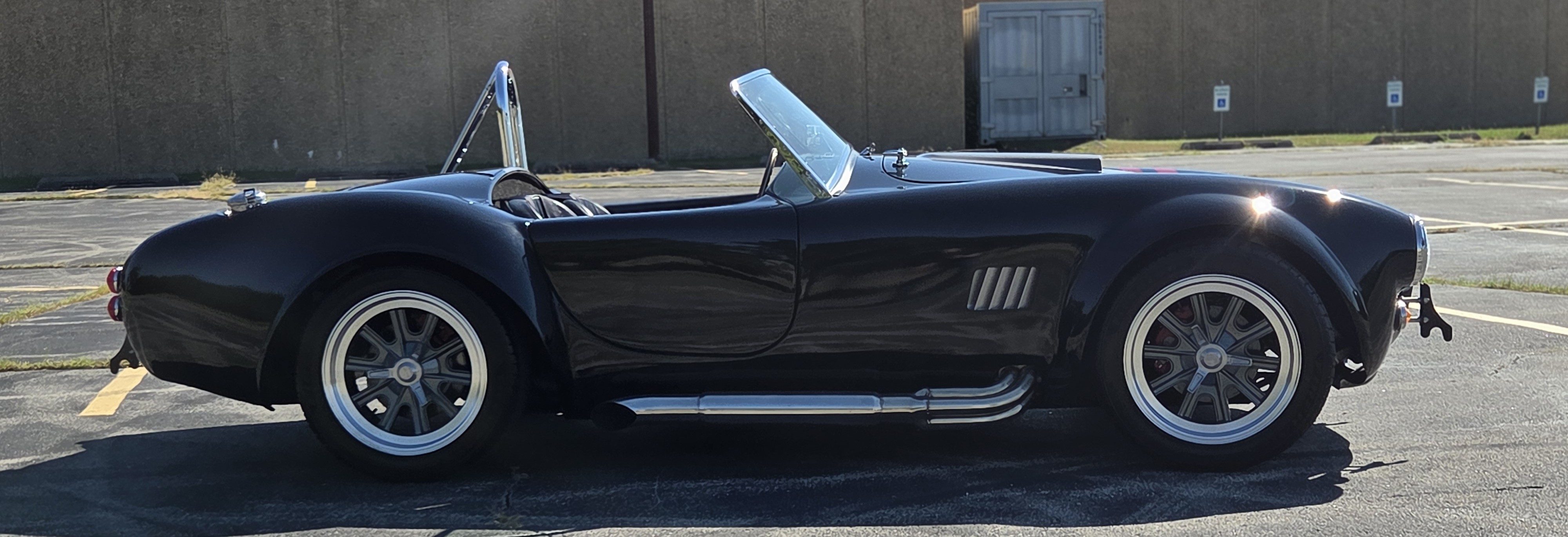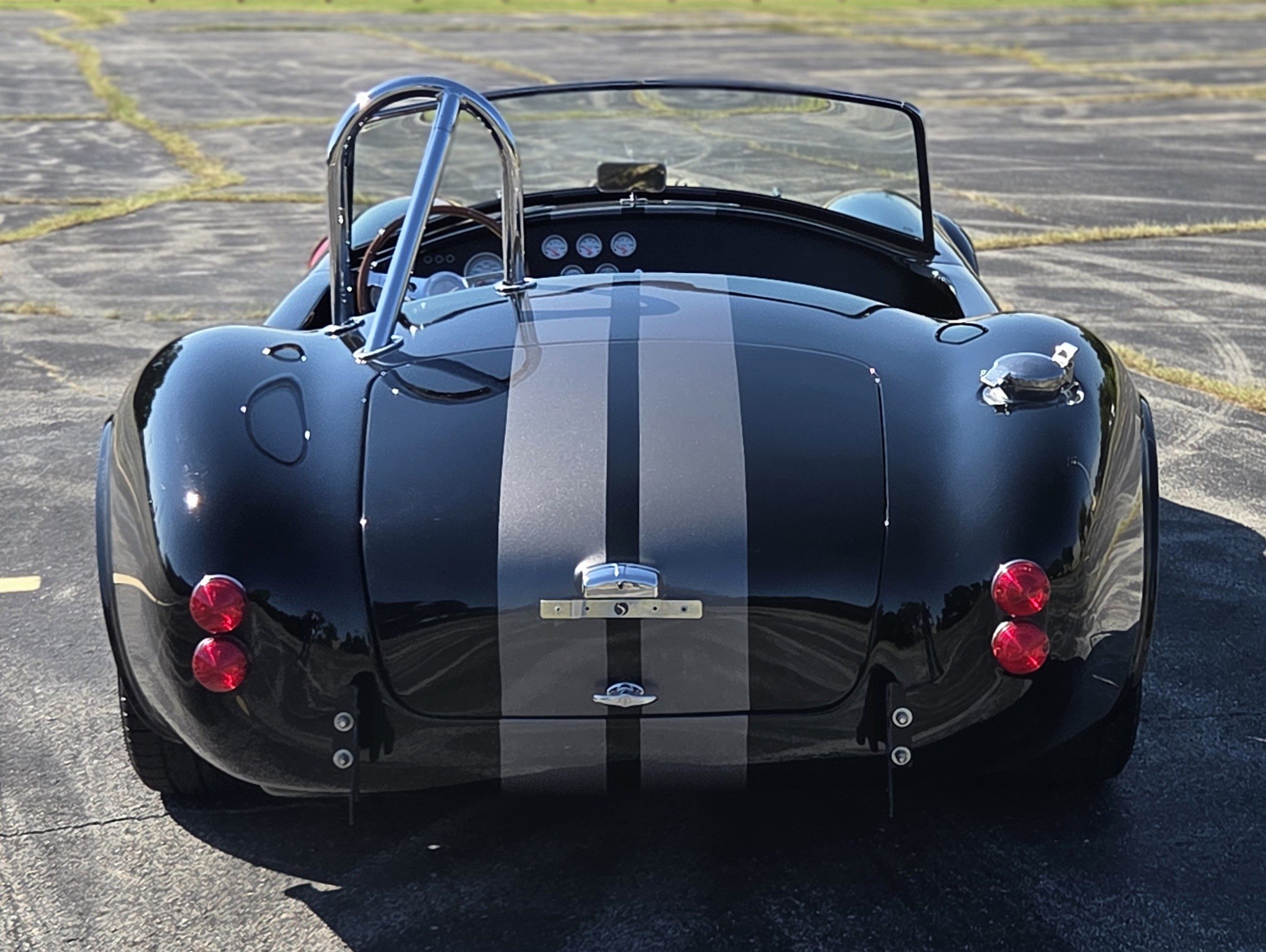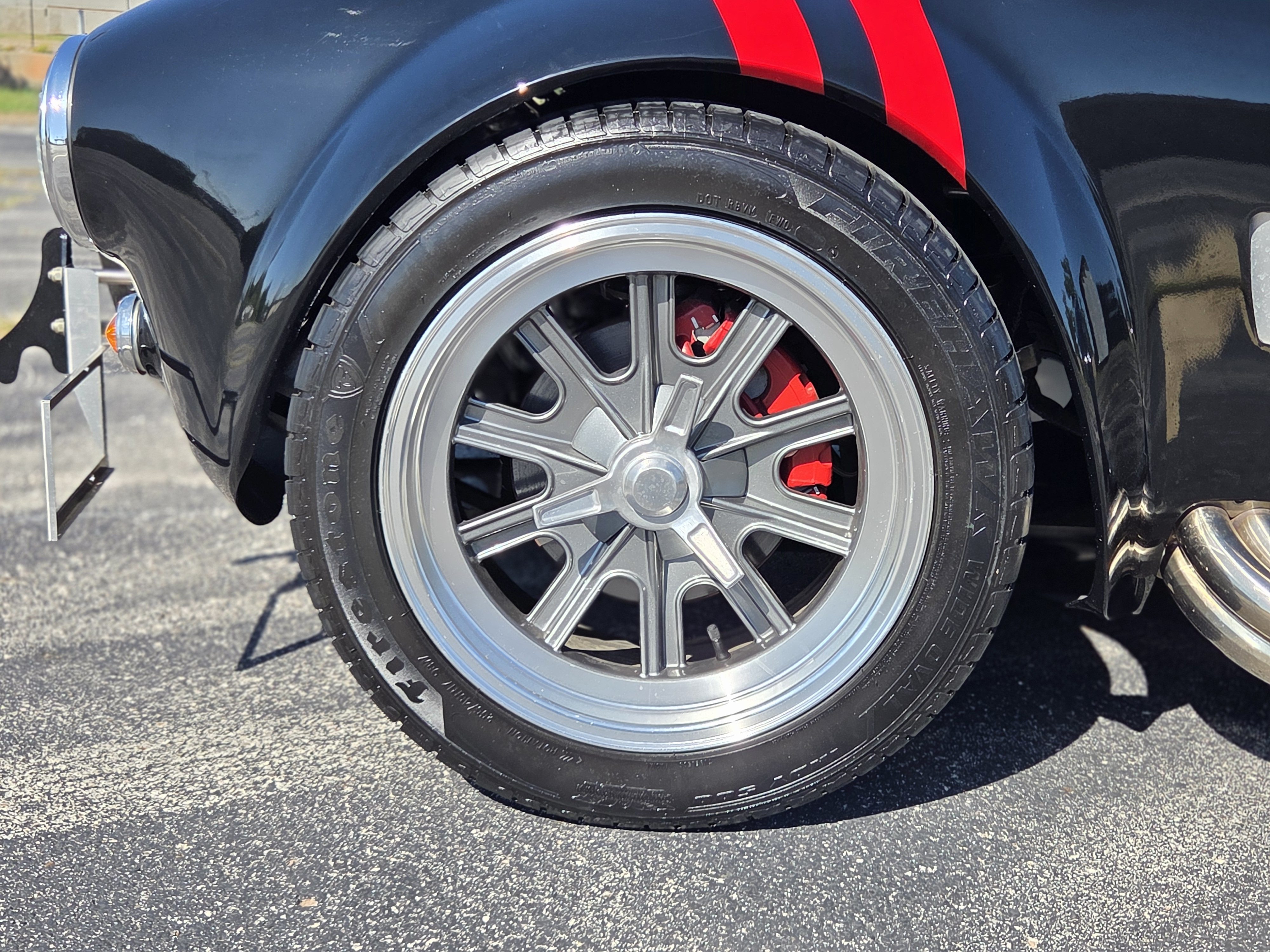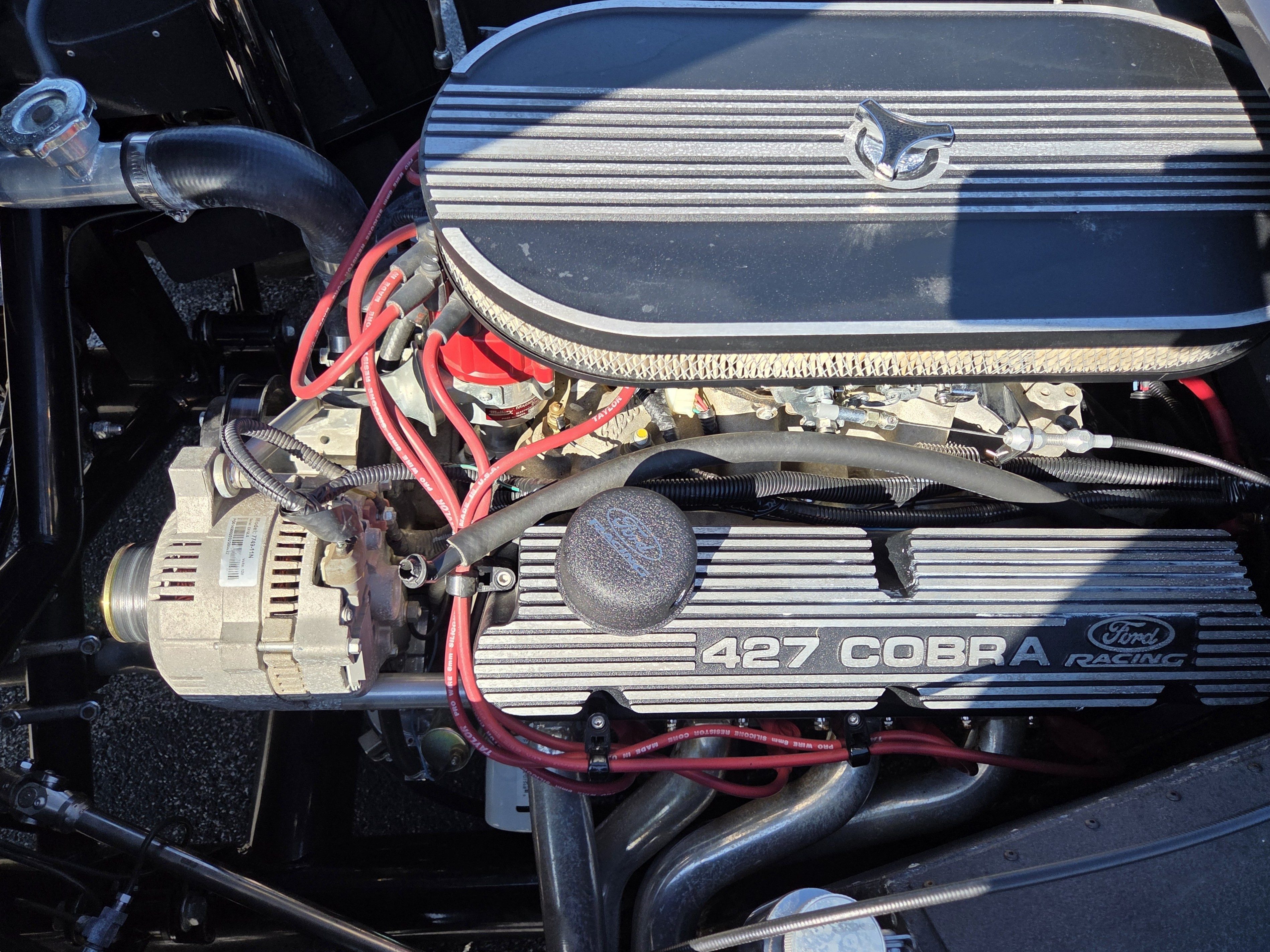 Tilting the hood forward reveals a 427ci V8. It inhales deeply through a Holley 750cfm Ultra Double Pumper carburetor, while the Hyfire electronic ignition delivers a strong spark to ignite the mixture. The spent gases exit via stainless steel headers and a matching dual side exhaust, and an aluminum radiator effectively controls the V8’s temperature. The power feeds to an 8.8″ Ford rear end via a five-speed Tremec manual transmission. Combine the car’s low curb weight with a mountain of power and torque, and this Mk 4 will command respect wherever it goes. It is a complete package, featuring tubular suspension arms, adjustable coil-overs on all corners, and legendary Wilwood disc brakes. There is no doubt that this Cobra possesses the handling and stopping power to match its engine performance.