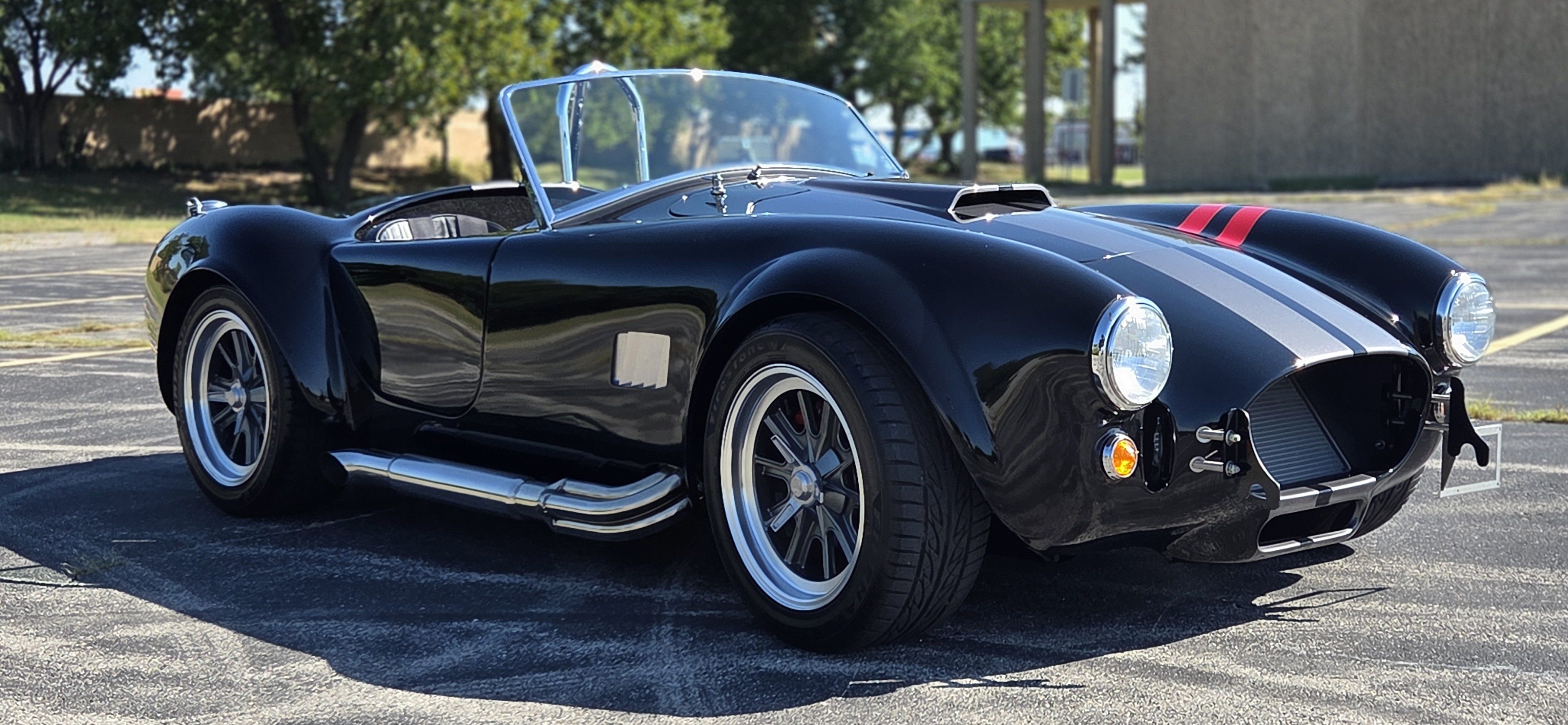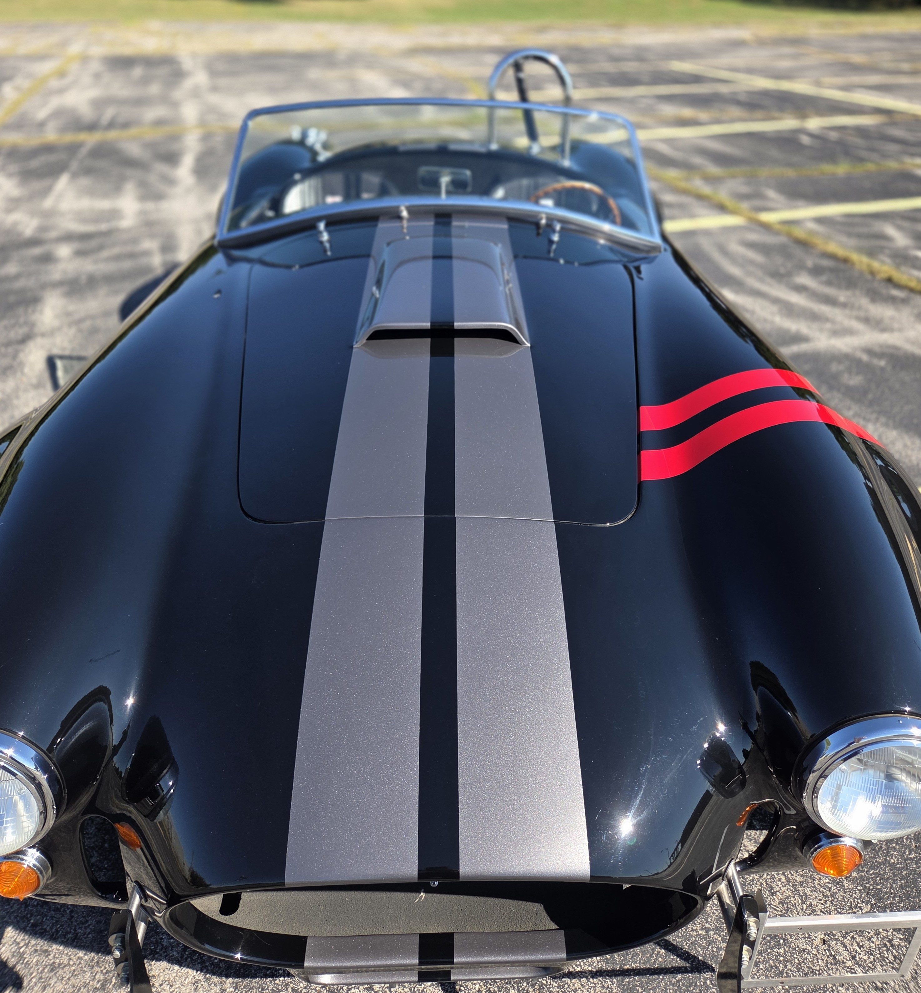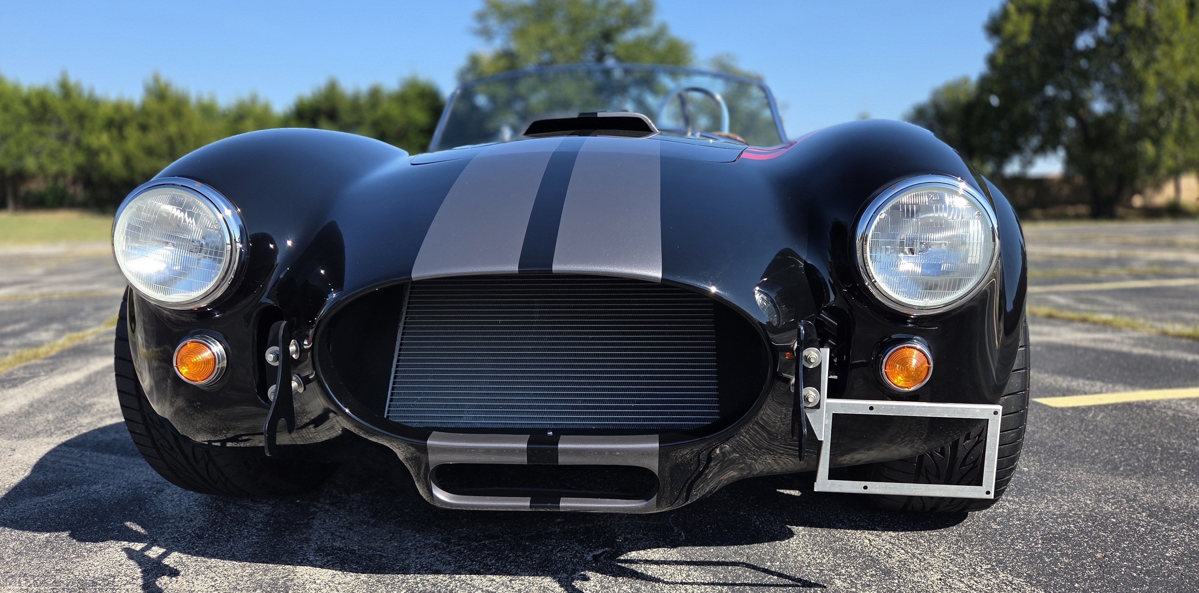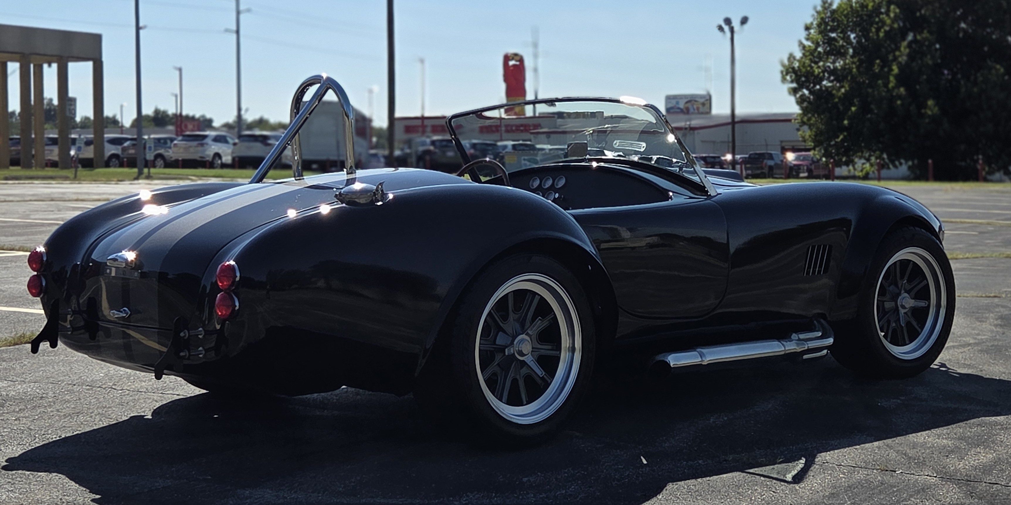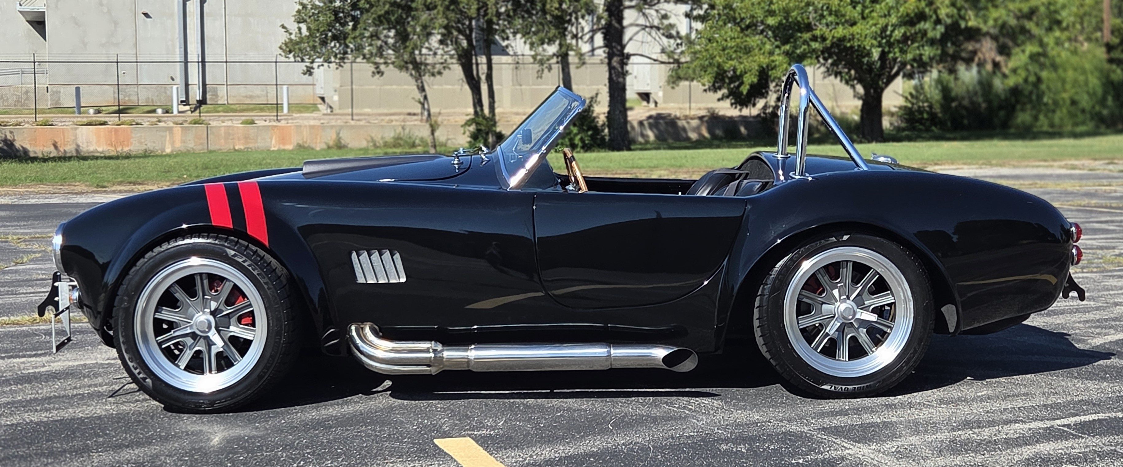 Tilting the hood forward reveals a 427ci V8. It inhales deeply through a Holley 750cfm Ultra Double Pumper carburetor, while the Hyfire electronic ignition delivers a strong spark to ignite the mixture. The spent gases exit via stainless steel headers and a matching dual side exhaust, and an aluminum radiator effectively controls the V8’s temperature. The power feeds to an 8.8″ Ford rear end via a five-speed Tremec manual transmission. Combine the car’s low curb weight with a mountain of power and torque, and this Mk 4 will command respect wherever it goes. It is a complete package, featuring tubular suspension arms, adjustable coil-overs on all corners, and legendary Wilwood disc brakes. There is no doubt that this Cobra possesses the handling and stopping power to match its engine performance.