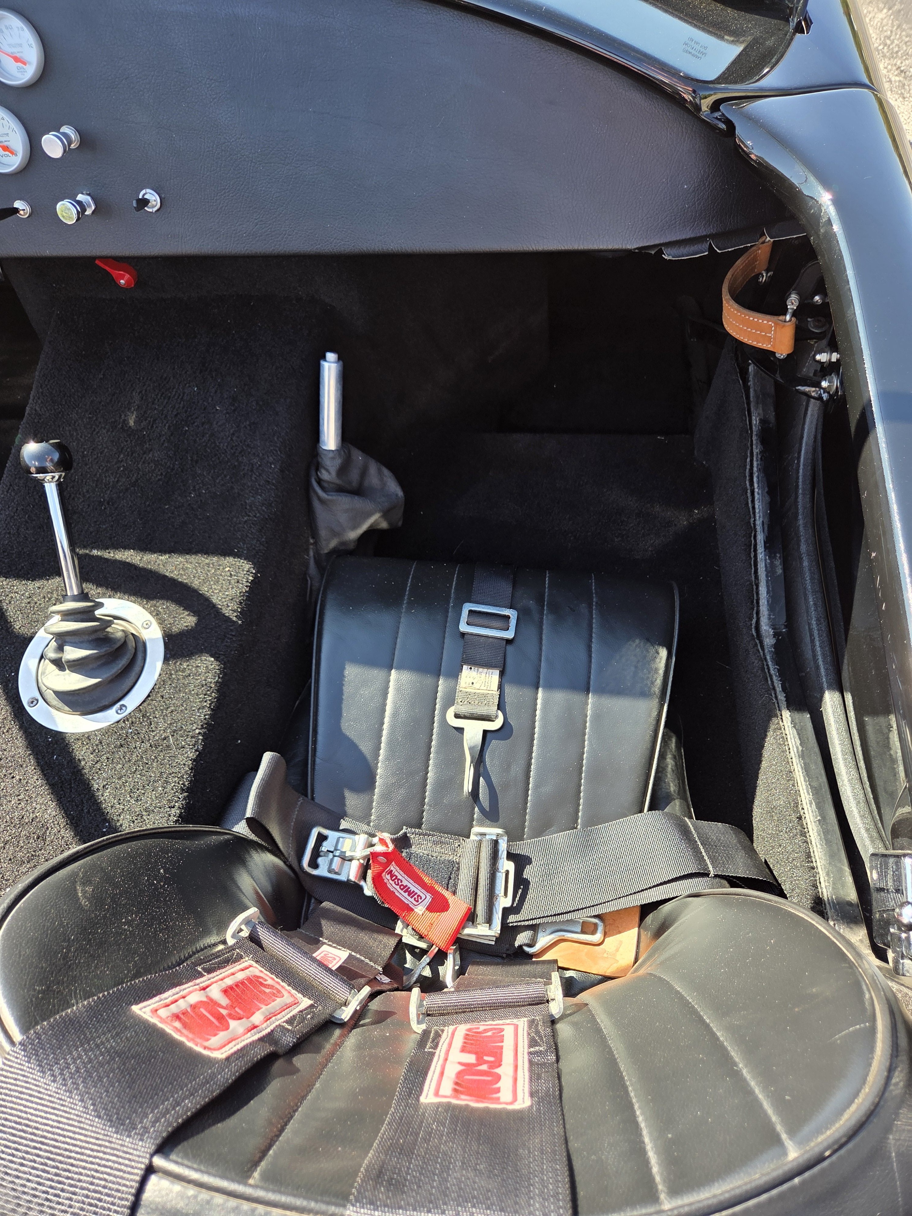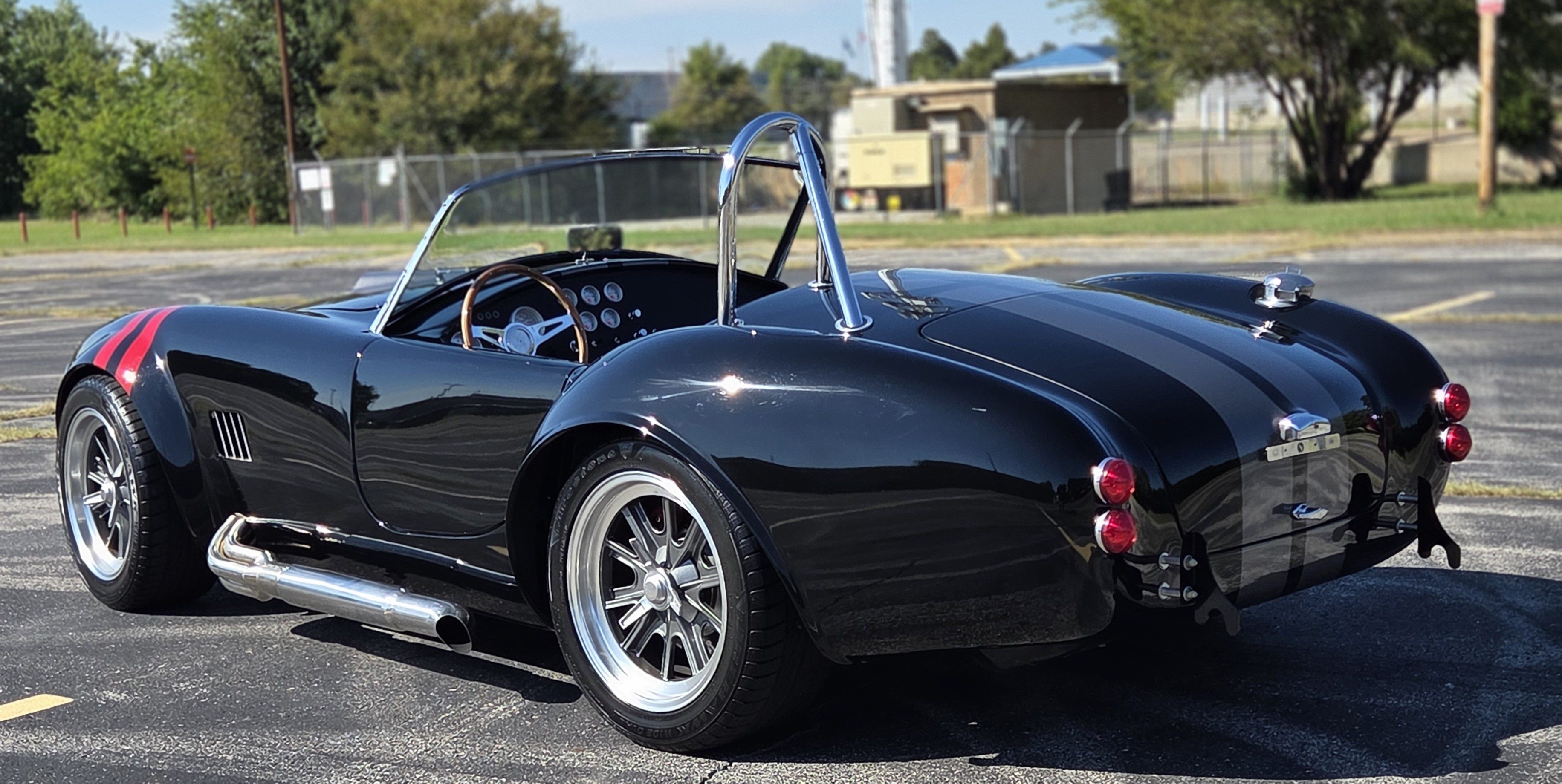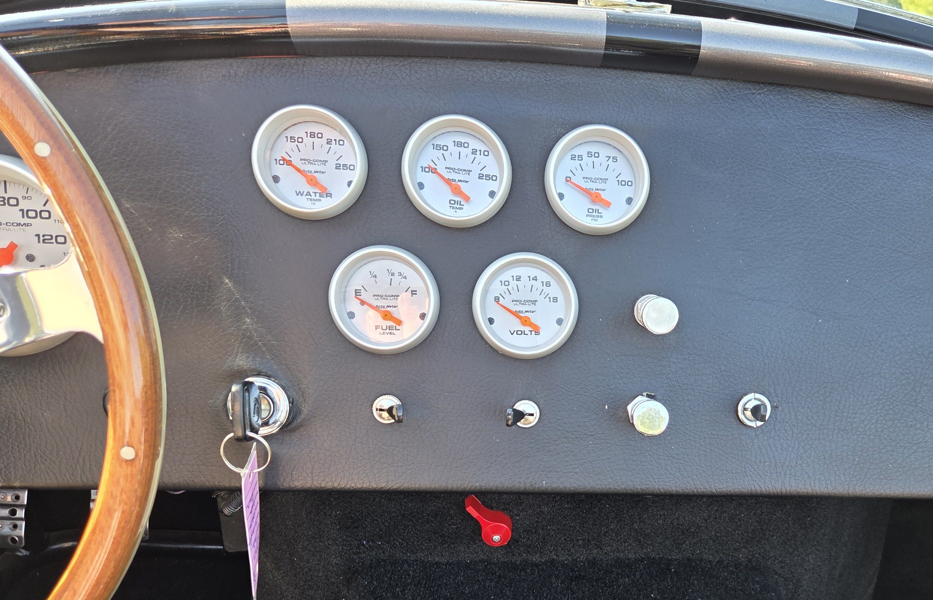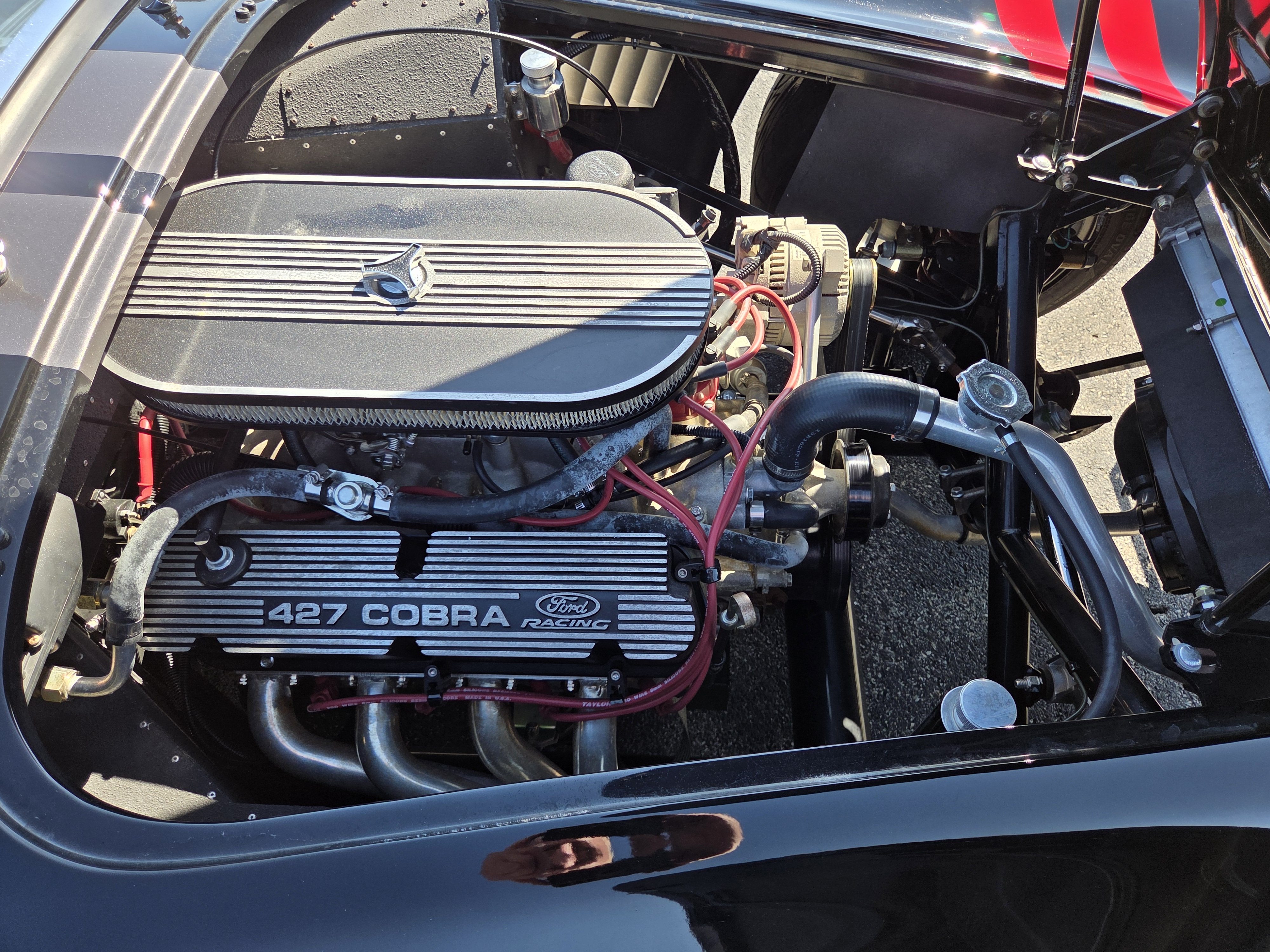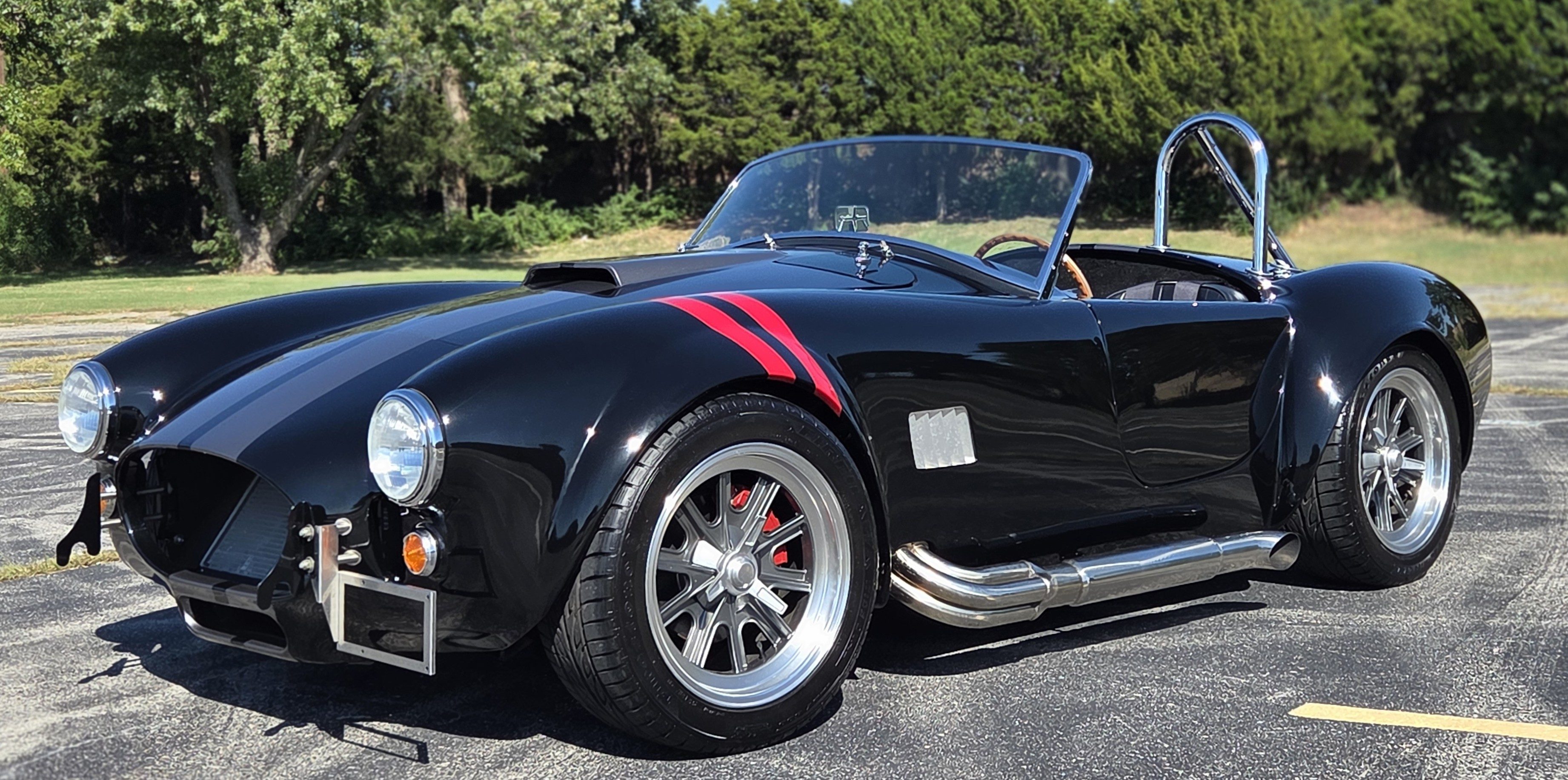 Tilting the hood forward reveals a 427ci V8. It inhales deeply through a Holley 750cfm Ultra Double Pumper carburetor, while the Hyfire electronic ignition delivers a strong spark to ignite the mixture. The spent gases exit via stainless steel headers and a matching dual side exhaust, and an aluminum radiator effectively controls the V8’s temperature. The power feeds to an 8.8″ Ford rear end via a five-speed Tremec manual transmission. Combine the car’s low curb weight with a mountain of power and torque, and this Mk 4 will command respect wherever it goes. It is a complete package, featuring tubular suspension arms, adjustable coil-overs on all corners, and legendary Wilwood disc brakes. There is no doubt that this Cobra possesses the handling and stopping power to match its engine performance.