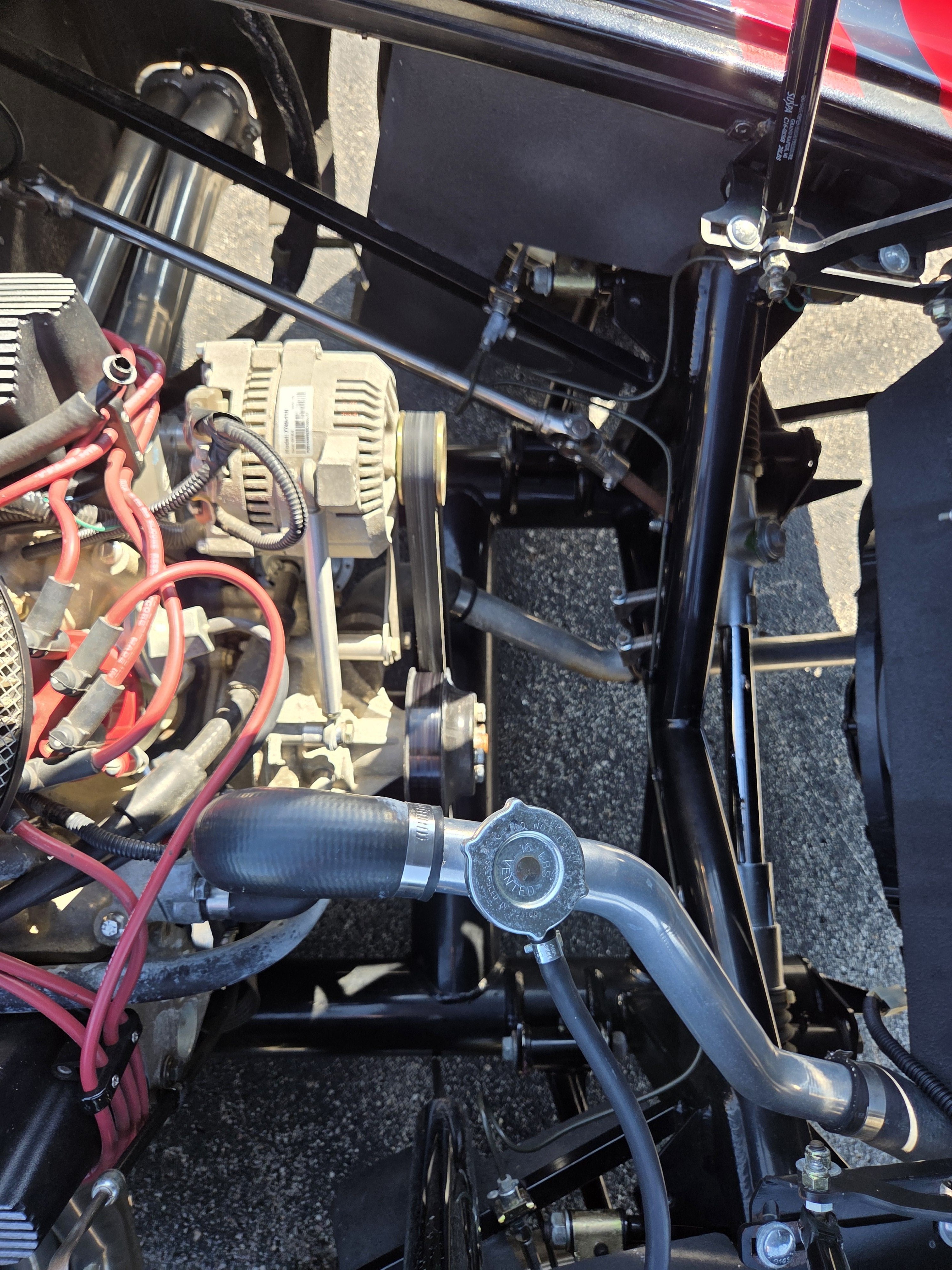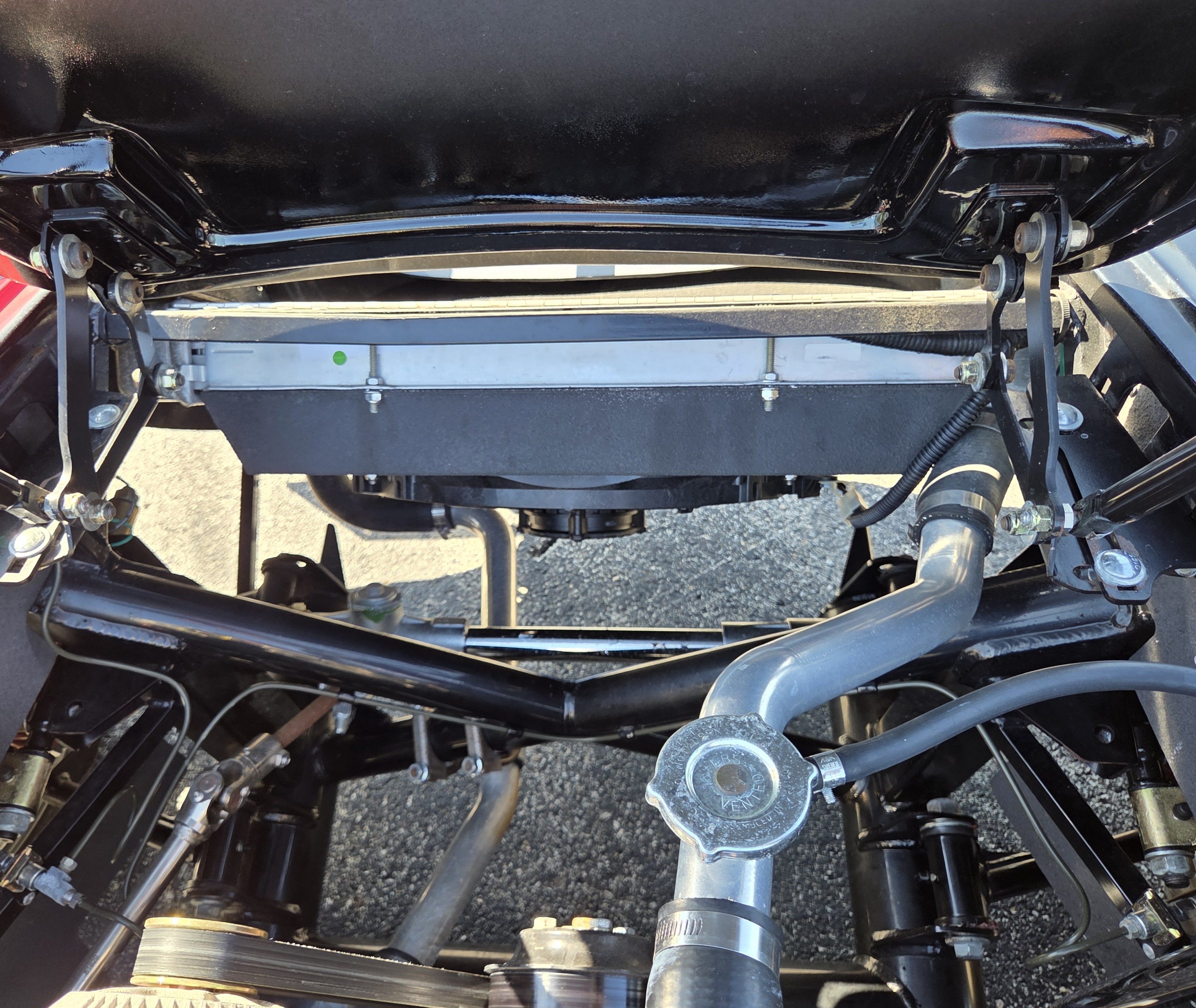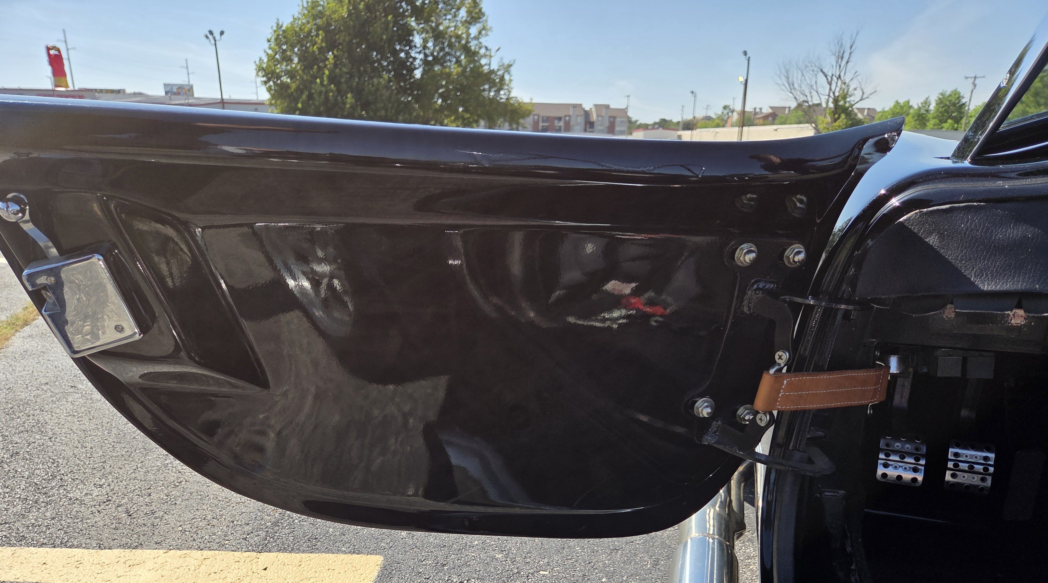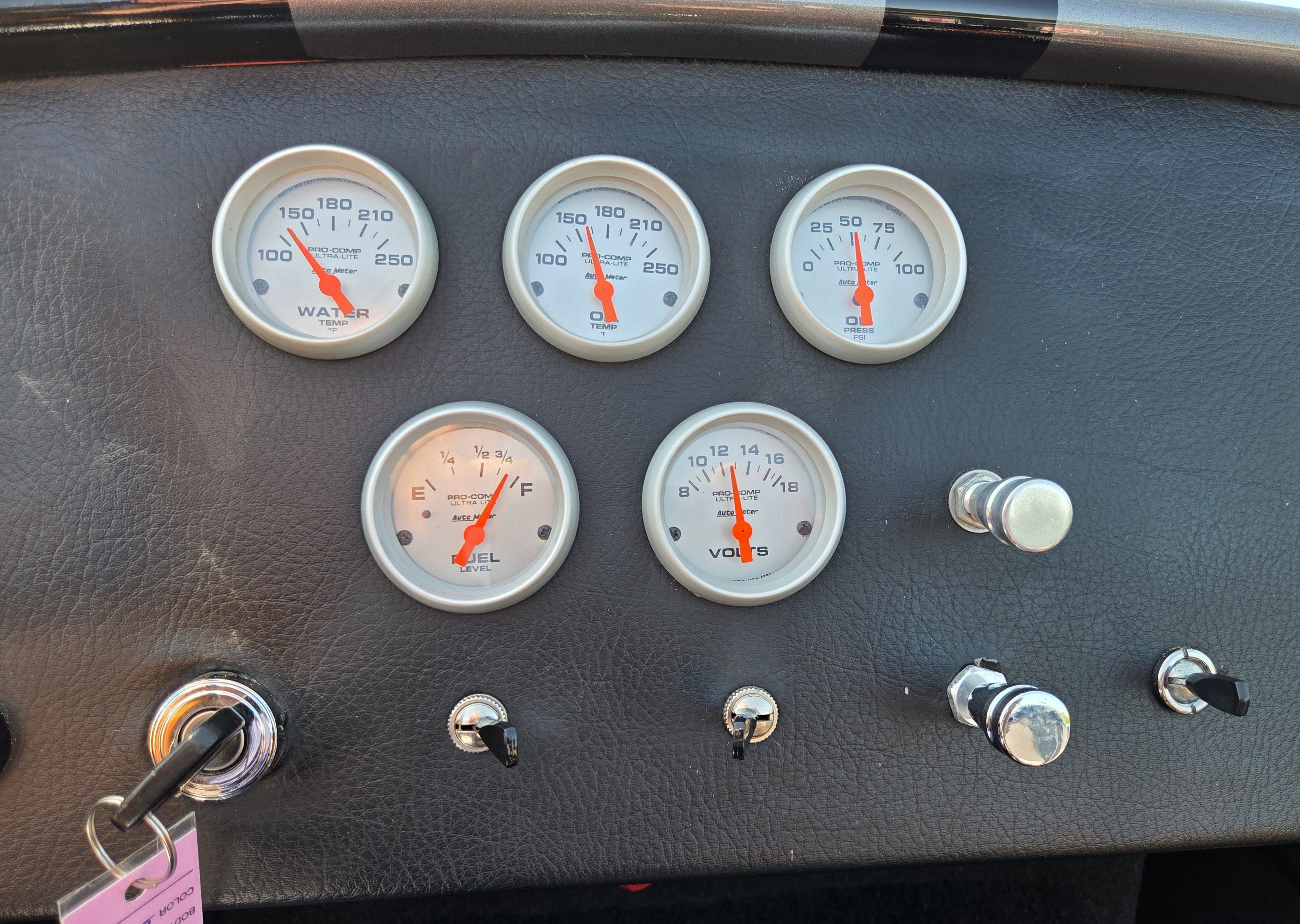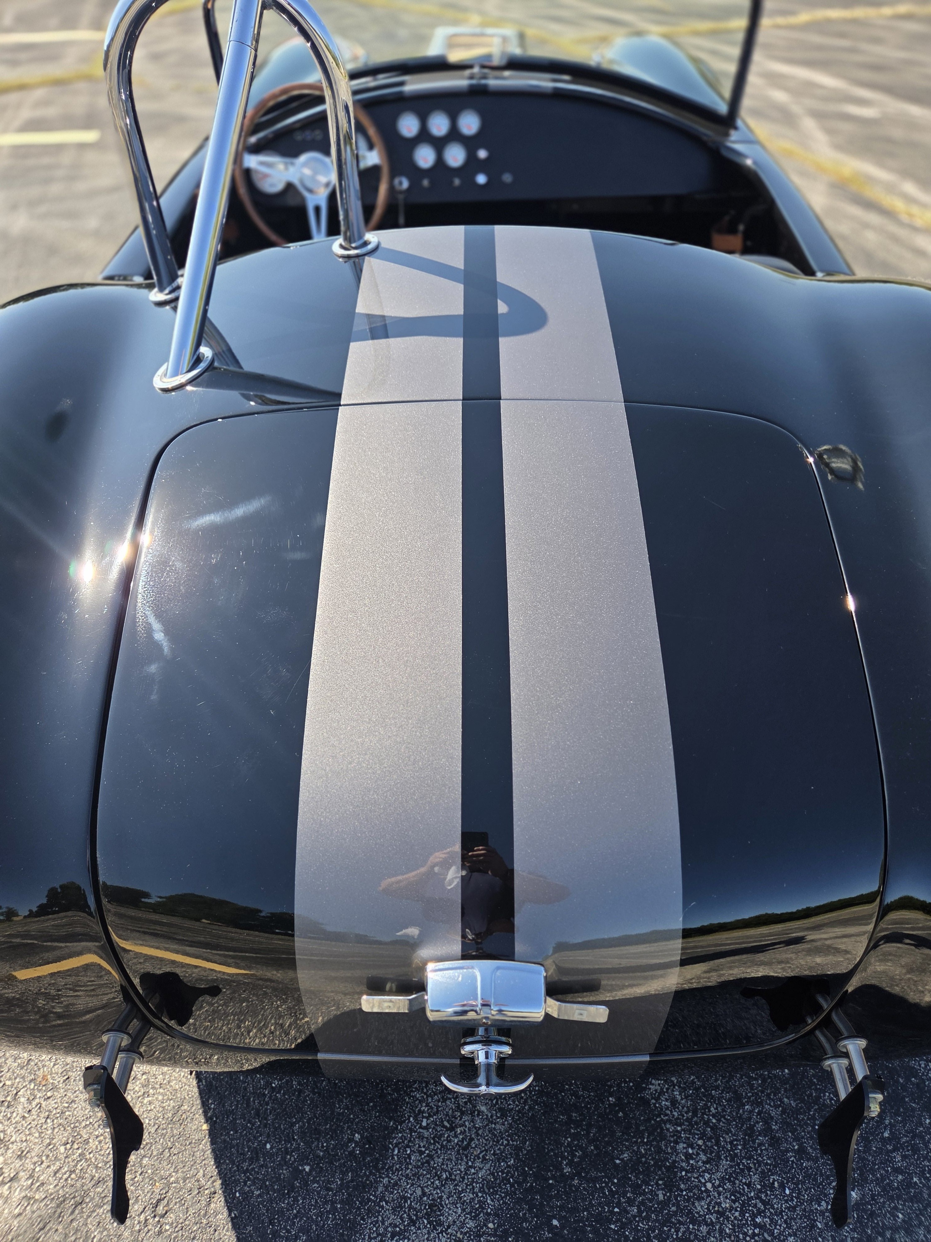 Tilting the hood forward reveals a 427ci V8. It inhales deeply through a Holley 750cfm Ultra Double Pumper carburetor, while the Hyfire electronic ignition delivers a strong spark to ignite the mixture. The spent gases exit via stainless steel headers and a matching dual side exhaust, and an aluminum radiator effectively controls the V8’s temperature. The power feeds to an 8.8″ Ford rear end via a five-speed Tremec manual transmission. Combine the car’s low curb weight with a mountain of power and torque, and this Mk 4 will command respect wherever it goes. It is a complete package, featuring tubular suspension arms, adjustable coil-overs on all corners, and legendary Wilwood disc brakes. There is no doubt that this Cobra possesses the handling and stopping power to match its engine performance.
