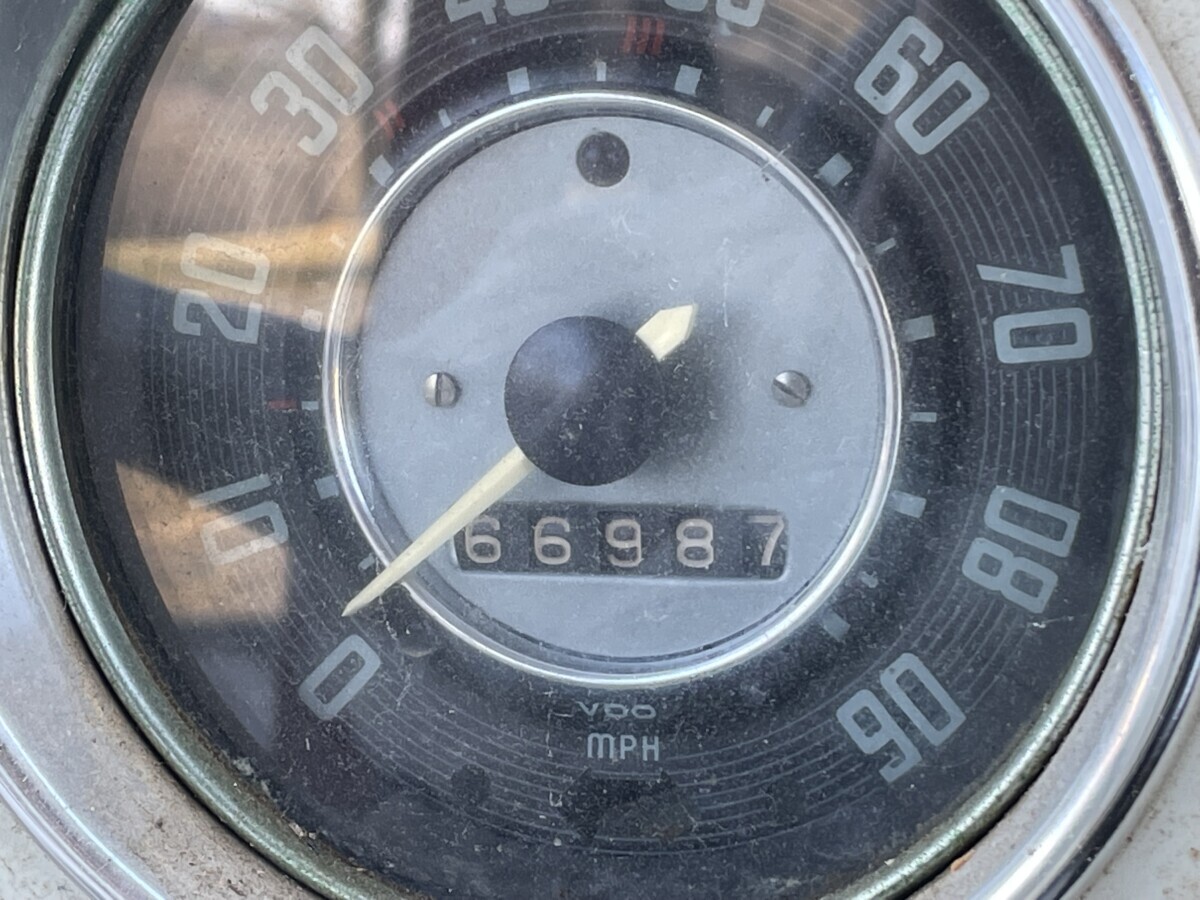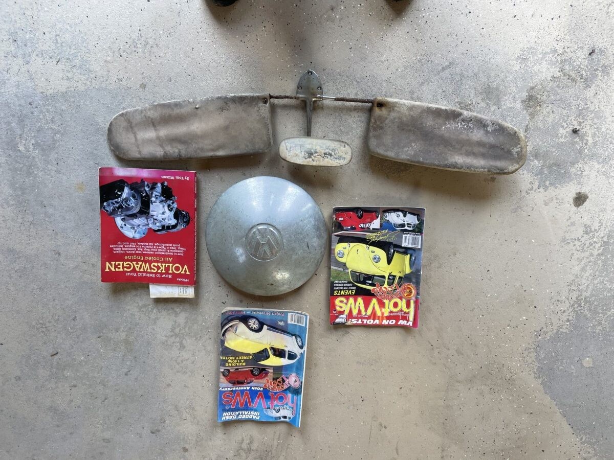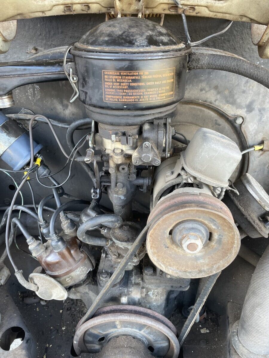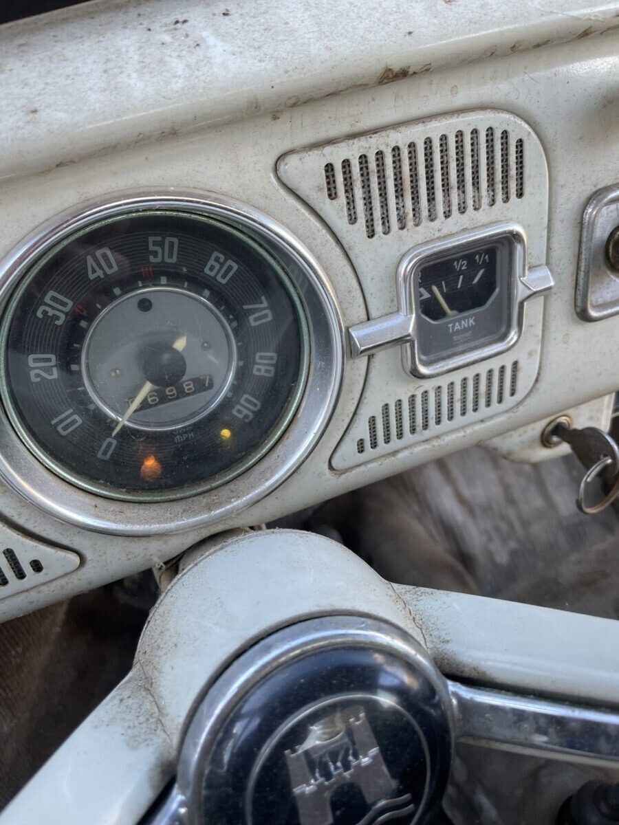 A look inside reveals what appears to be a fairly original interior. The front seat upholstery has been changed out, but the dash hasn’t been cut up for an aftermarket radio and the vinyl floor coverings, door panels, headliner, and rear seat look original. Included with the car is a rearview mirror assembly from a parts car to fix the broken original mirror and a spare hubcap. We also find a Blaupunkt radio in the dash which is likely the correct radio for 1965. The car is still set up with its original 6-volt electrical system, but the seller notes that they have to jumpstart the car to get it running, so assume the battery is long past its expiration date. Converting the car to 12-volt is a worthwhile upgrade and you’re going to need a new battery either way. Restoring the interior should be a fairly simple task, as you can buy complete interior kits that will make this car look as good as new. Or, you could just give it a good cleaning and enjoy it as is!