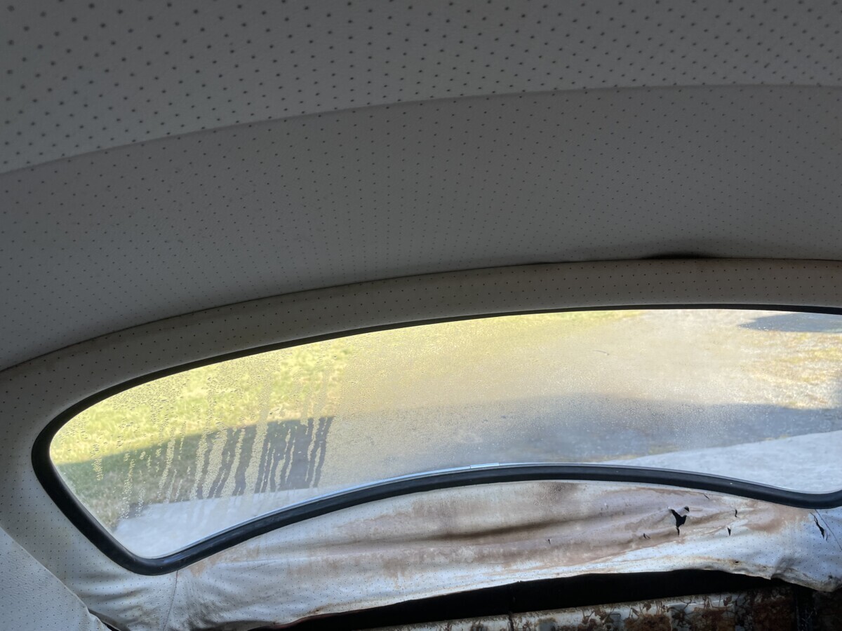 The driver’s door has the 1965-and-later glass…with the angled divider with the vent window. The passenger-side door has the 1952 (appx)-64 vertical divider.