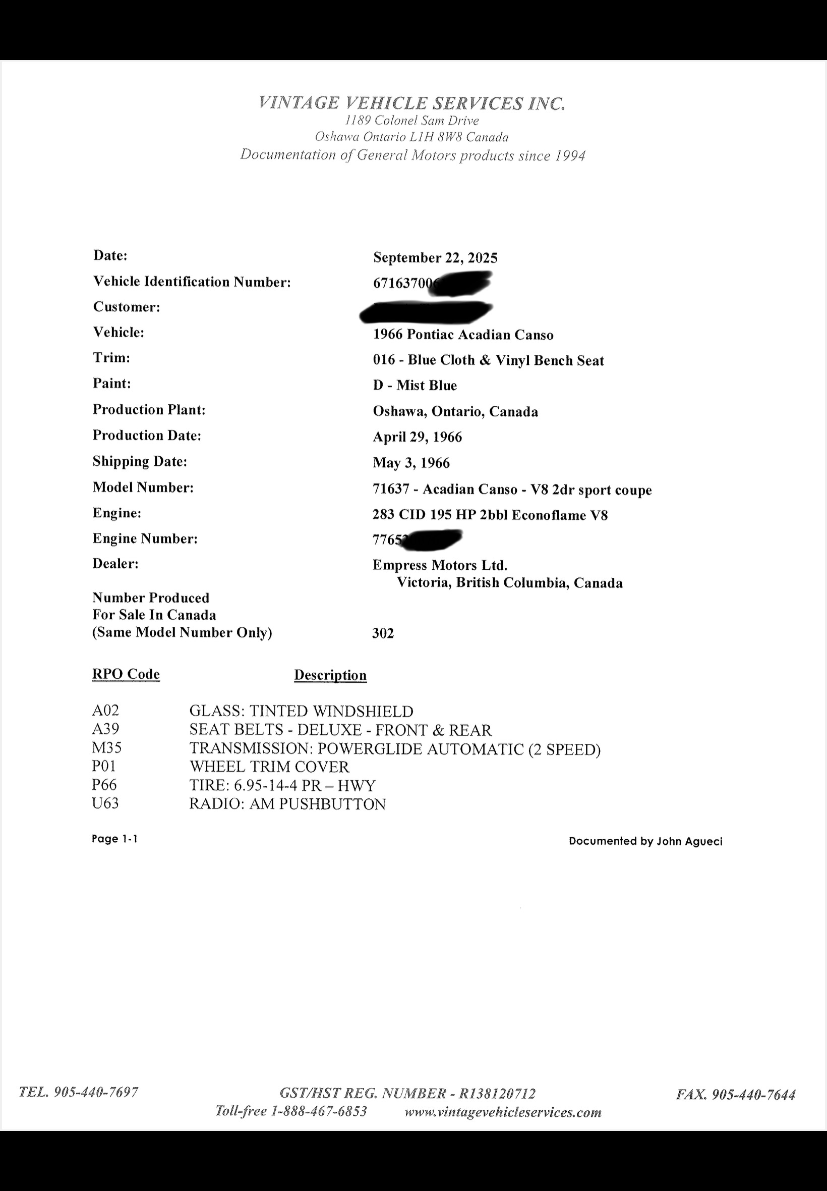 UPDATE – The seller was able to put this rare Canso on a lift to take underside photos, so we are rerunning the auction. They also spoke with the previous owner and got more information about the engine build. That information is included below, along with additional photos and the car’s GM historical document.
