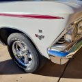 I like the featured 66, but agree the red stripe and the wheels need to go. I ran 69 – 70 Chevelle SS wheels on mine and still like the looks but 14″ tires are hard to find. I don’t like the 17″+ wheels but could live with 16″. Corvette 15X8 rallys are about perfect.