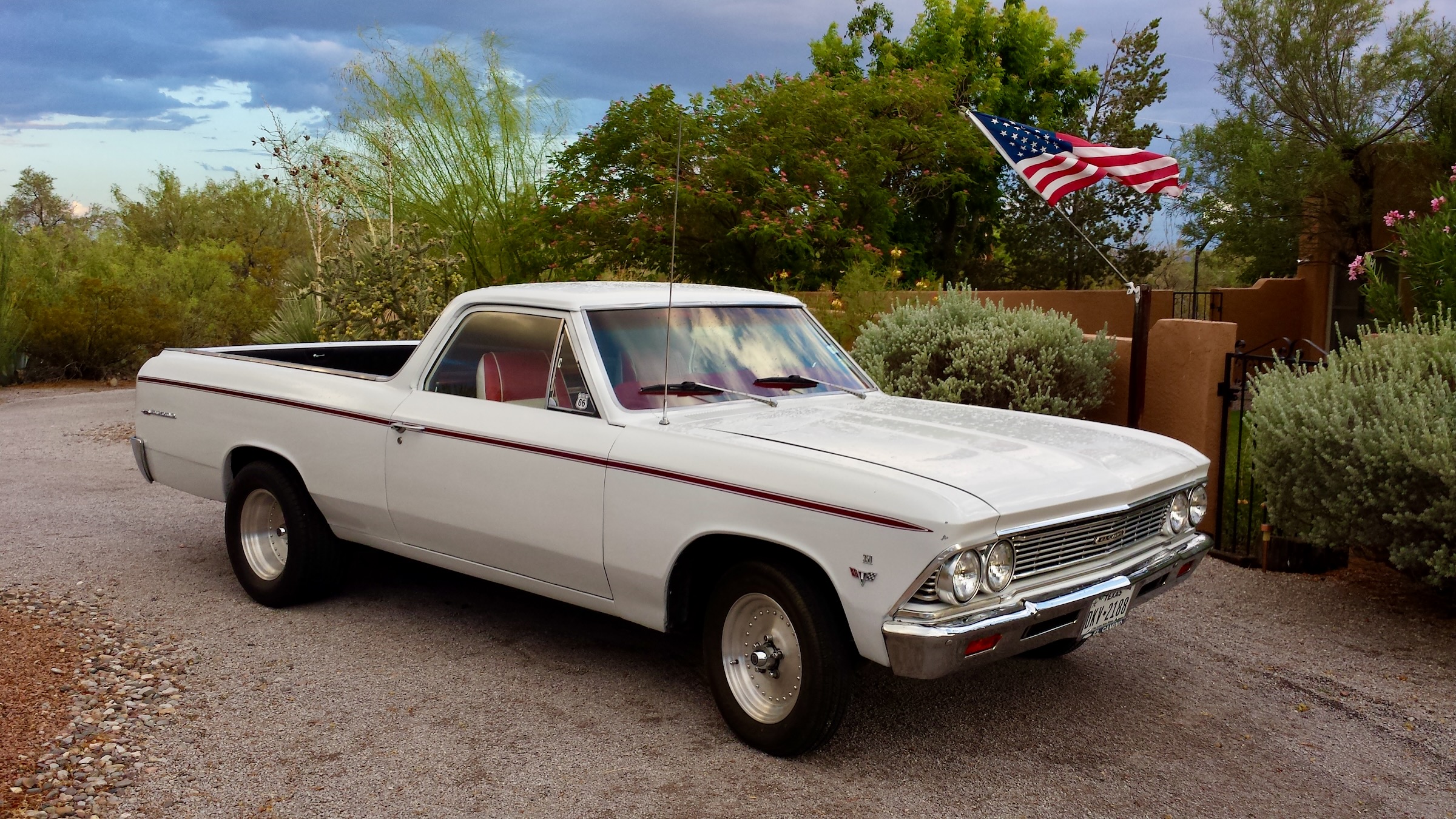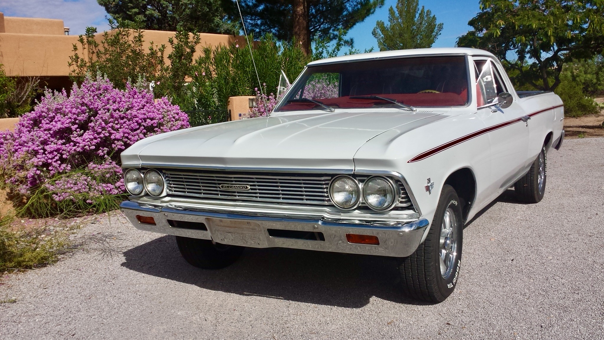 I use to own a ’66 El Camino. Black with a red interior. Man, that thing was a looker. Zero rust. Zero Bondo.