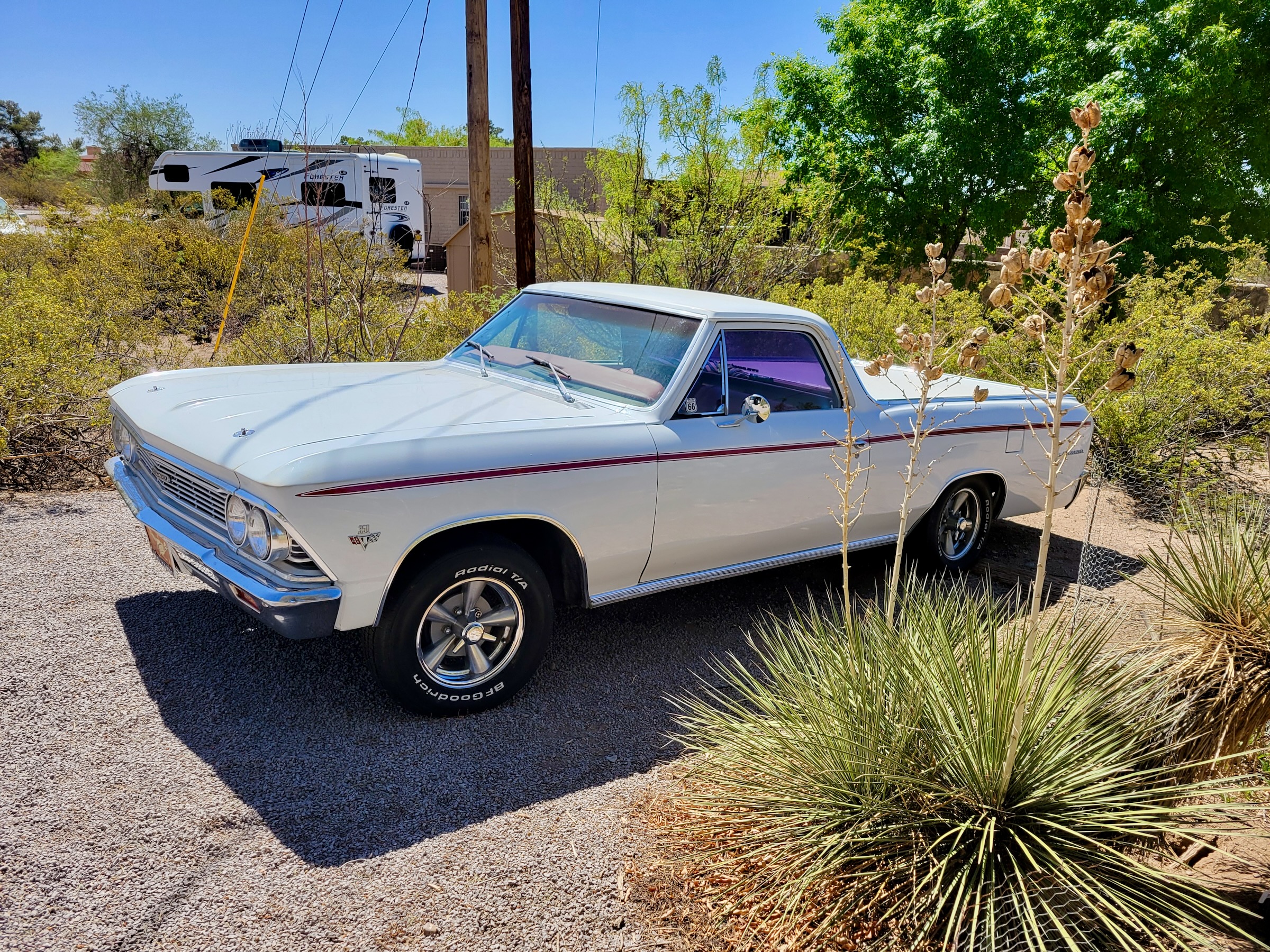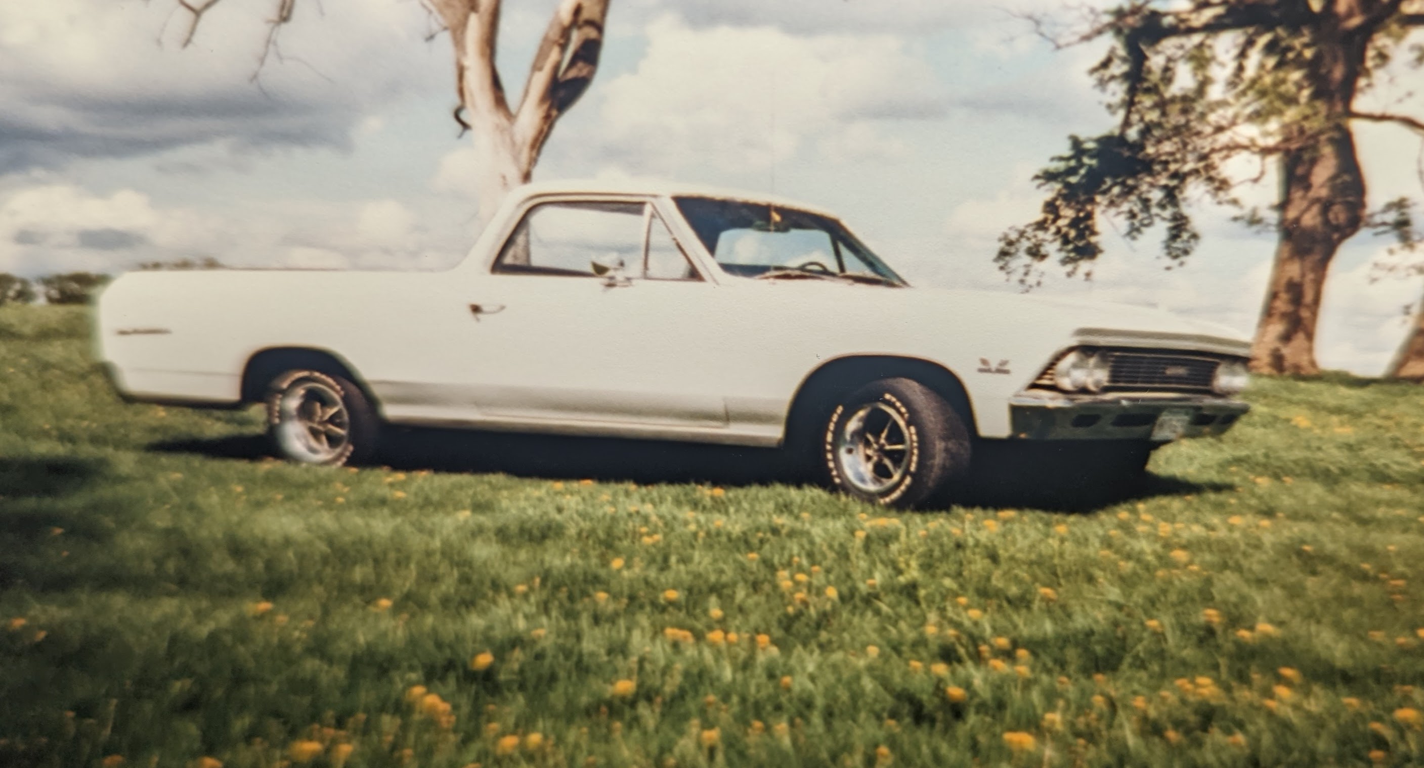 I’ve had at least 1 66 – 67 ElCamino continuously since high school (over 50 years! Where does the time go?) The one in the picture was a California 396 4 speed with factory AC. It was rust free and had the bright blue bench seat interior. I sold it to partially come up with a down payment for our farmstead in 1983. I still have the build sheet I found inside the front seat.