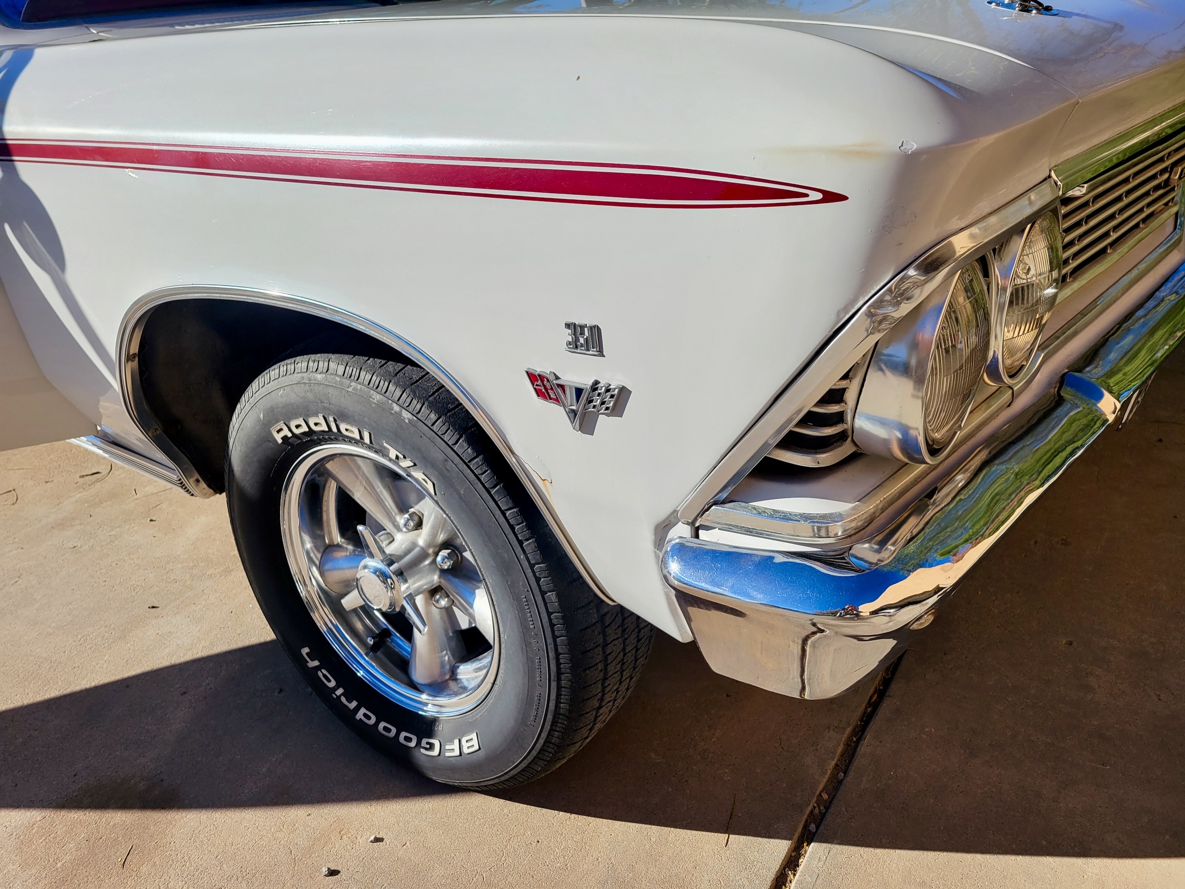 Very nice El Camino really like the white paint with the red interior you can drive without needing to worry if it gets a nick in the paint. Not sure but looks like two different from the first photo compared to the rest of the photos regardless i would love to own this El Camino.