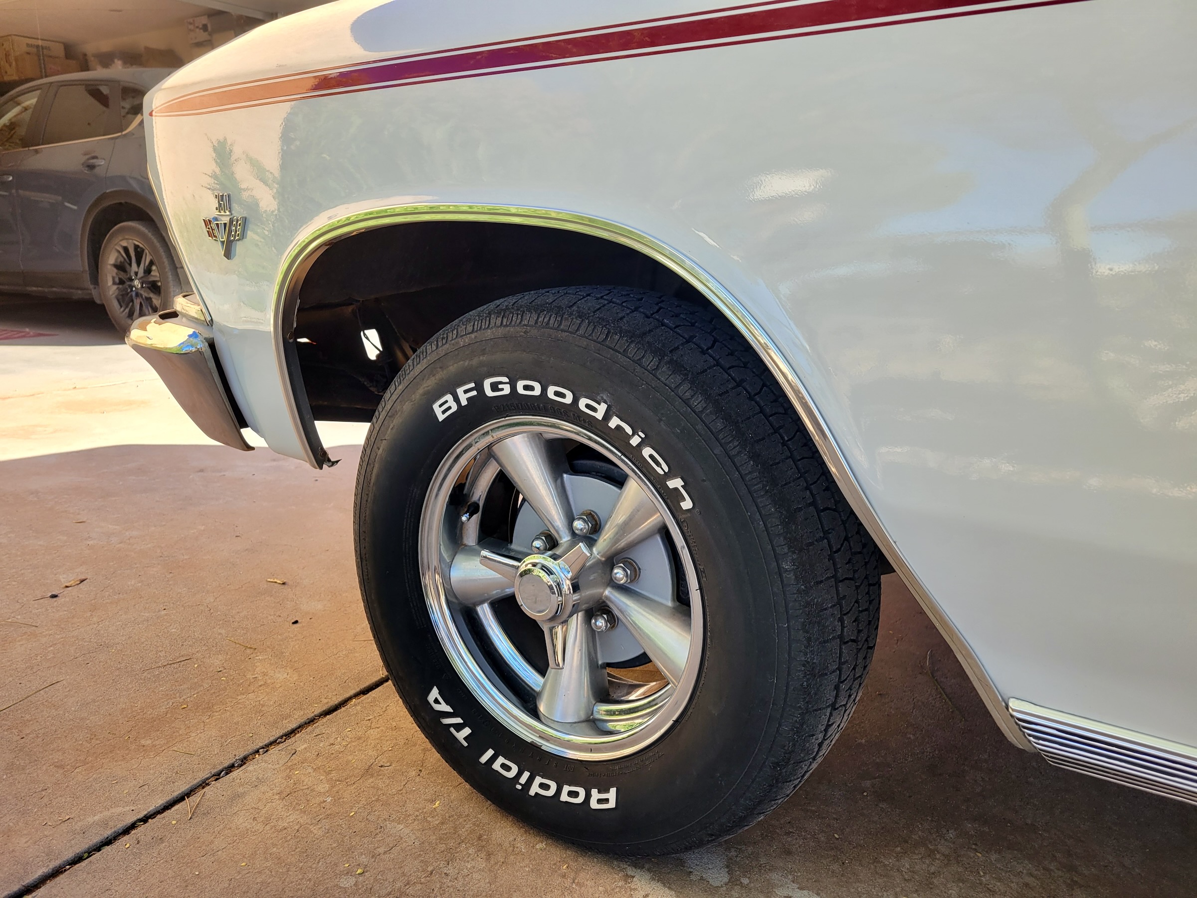 I like the featured 66, but agree the red stripe and the wheels need to go. I ran 69 – 70 Chevelle SS wheels on mine and still like the looks but 14″ tires are hard to find. I don’t like the 17″+ wheels but could live with 16″. Corvette 15X8 rallys are about perfect.