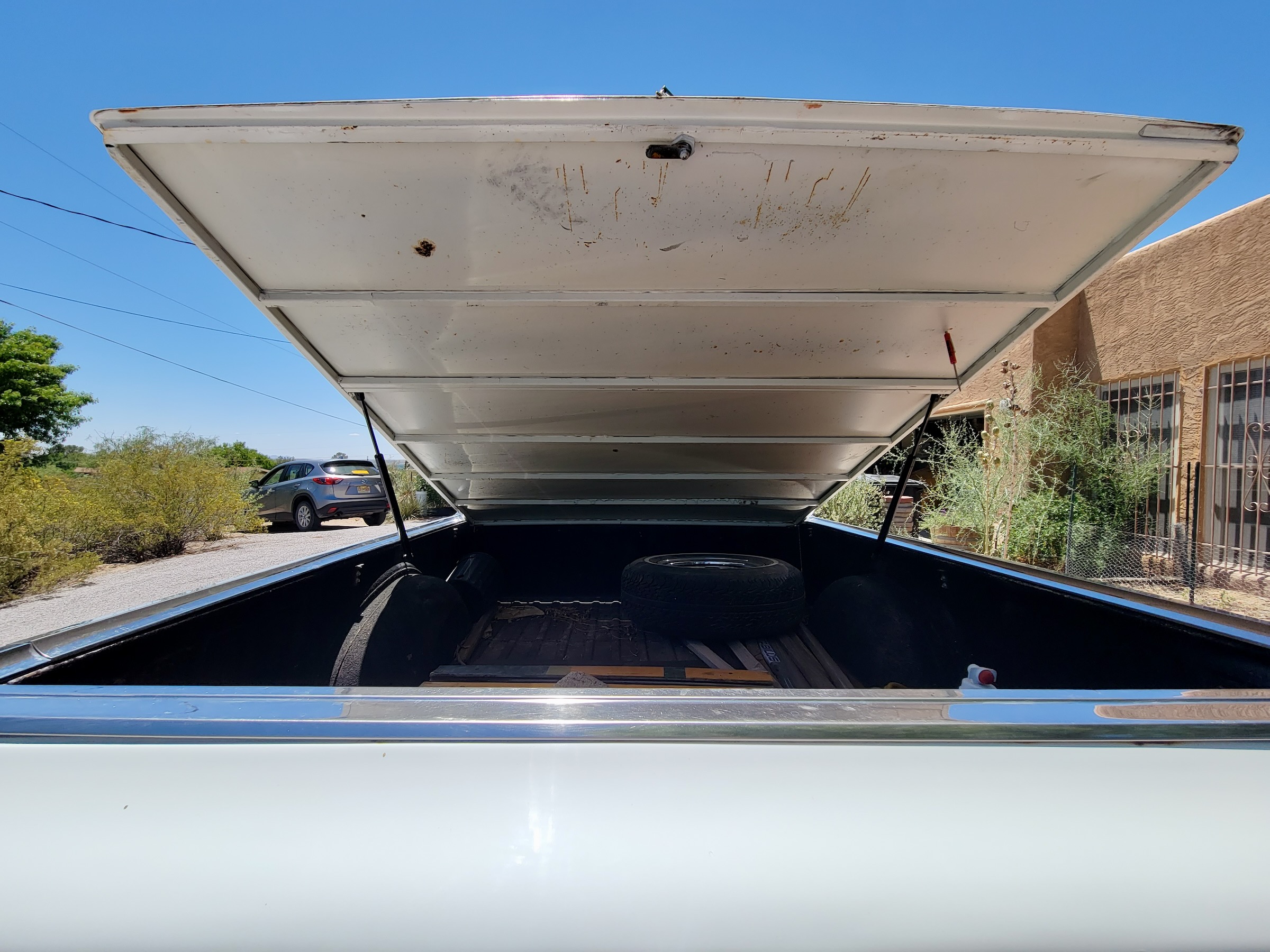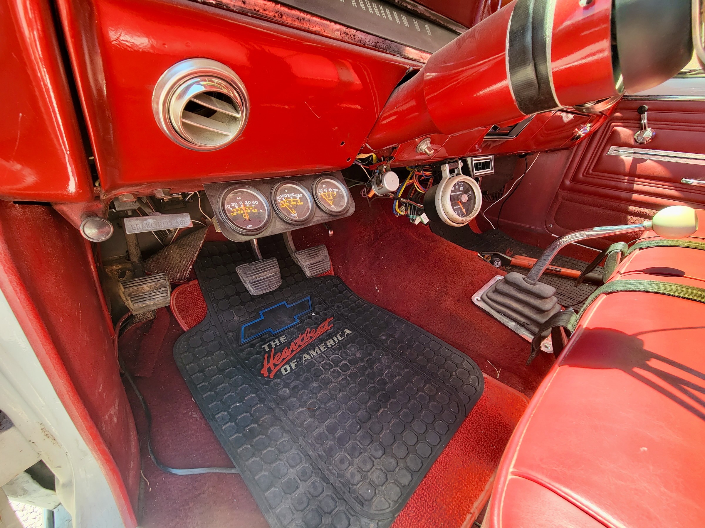 As with the exterior, the interior of this car isn’t ready to be judged at Pebble Beach, but it looks nice overall. The seat has been brought back to more of an original style bench-style seat and is newly recovered. The seller mentions having a custom-made lockable bed cover made, and that’s a super handy feature, since there isn’t a lot of interior space to hide your valuables. There’s the Hurst shifter poking out from the Muncie M22 4-speed transmission. This car also has a “Classic Auto Air” A/C unit, which was installed five years ago.