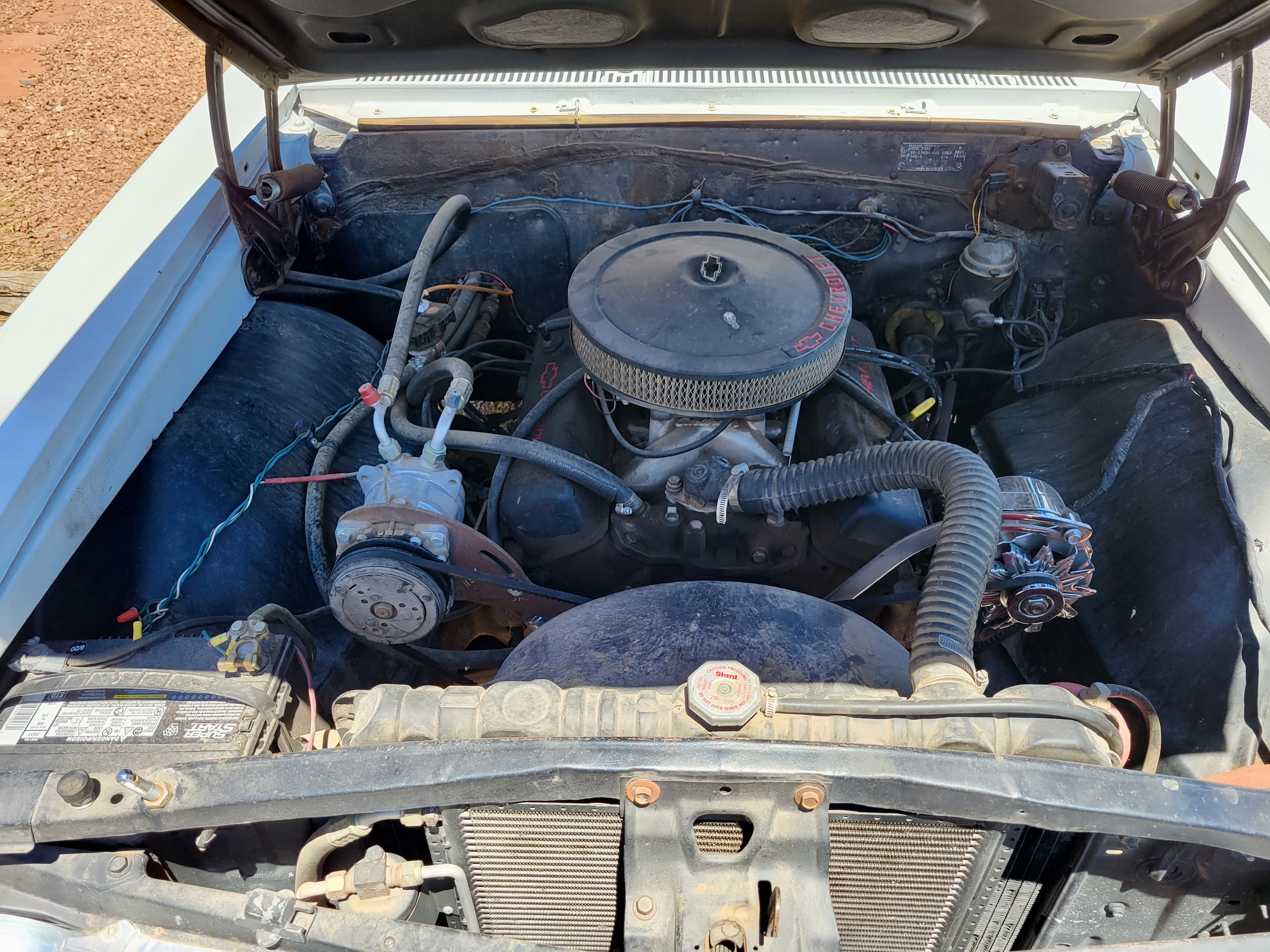 With a weekend of detailing, this engine compartment could look fantastic. This engine is said to be a 350-cu.in. V8, and we don’t know the specs, but it has a mild racing cam and a four-barrel Edlebrock carb on top of an Edlebrock intake manifold. You can see the A/C compressor, and this car is a strong runner and will spin the rear wheels without much problem. This looks like a super nice car to just drive and enjoy, and pick away at a few things on weekends. Please check out all of the photos and get your bids in on this ’66 El Camino here on Barn Finds Auctions!