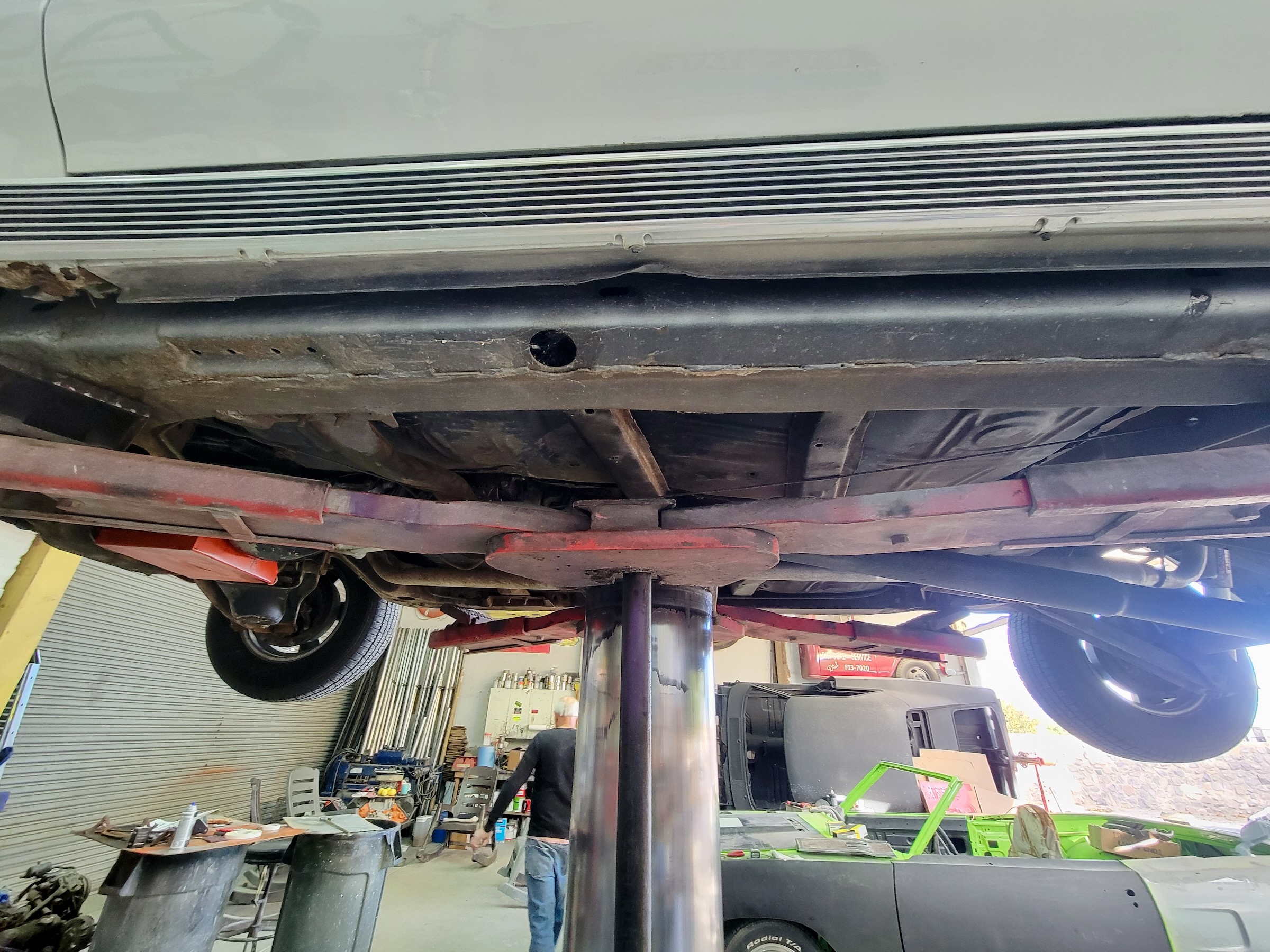 What in the world is that big hole that seems to be cut in the floor above the transmission? Looks rough to me.