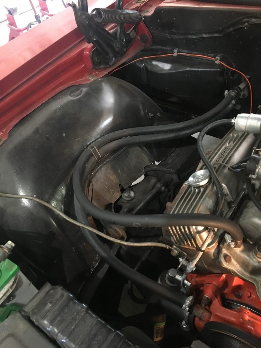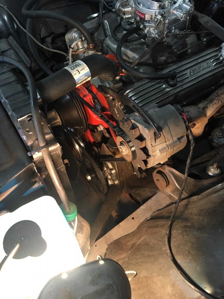 The original 283 V8 and Powerglide transmission were both given full rebuilds. While those were out, the front suspension was treated to all new bushings, shocks, ball joints, 2″ drop spindles, and disc brakes. To freshen and give the engine a bit more grunt, it was bored .040, an Edelbrock Performer cam went in, rebuilt 305 heads with hardened seats were installed and a 500 cfm carburetor was mounted up. They also added power steering and brakes to ensure it was easy to drive. Between the engine and suspension upgrades, this should be a fun machine to drive!