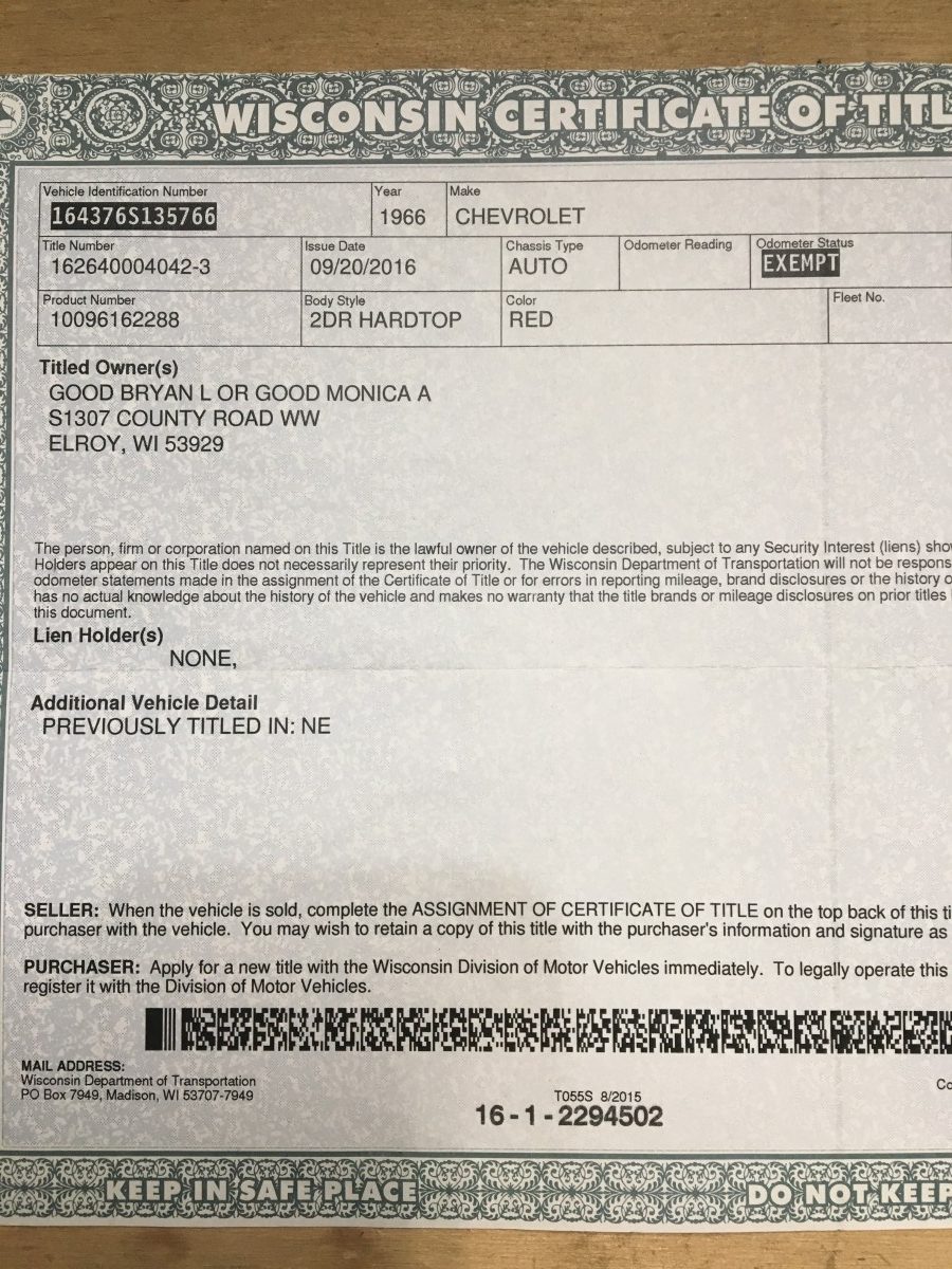 As the seller puts it, “this Impala ain’t no trailer queen”, and that’s because it’s a ready to go driver! The original owner and their daughter drove this car regularly until 1991. It was then parked and forgotten until 2015, when the second owner purchased it. They had it for about year, but couldn’t get it running so they listed it for sale. On February 28th, 2016, exactly 50 years to the day after the original owner purchased it, the seller bought it! They’ve done all the work to get it back on the road, but the time has come to find a new home for it, so it’s being offered a Barn Finds Auction. It can be viewed in Hillsboro, Wisconsin and any questions can be left in the comments.