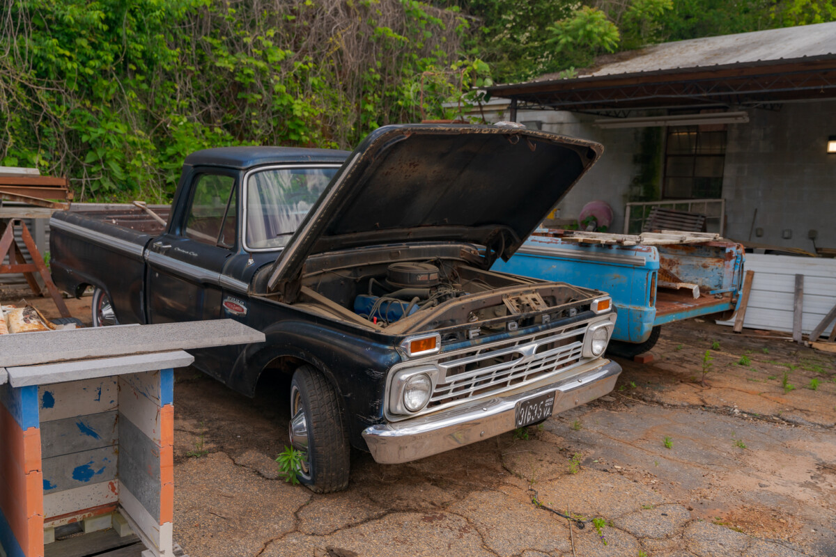 Lifting the F100’s hood reveals this classic’s original 352ci V8 that produced 208hp and 315 ft/lbs of torque in its prime. It sent its power to the road via a four-speed manual transmission, making this an effective load carrier or tow vehicle. The front is currently off the engine due to a fault that caused it to bend pushrods. The owner thought he had identified the issue, but after running fine for a while, it repeated the process. He has eliminated a loose timing chain and feels it could be a camshaft issue. The engine seems otherwise healthy, and since the winning bidder will probably pull the V8 during the build, that provides the ideal opportunity to diagnose and rectify the issue.