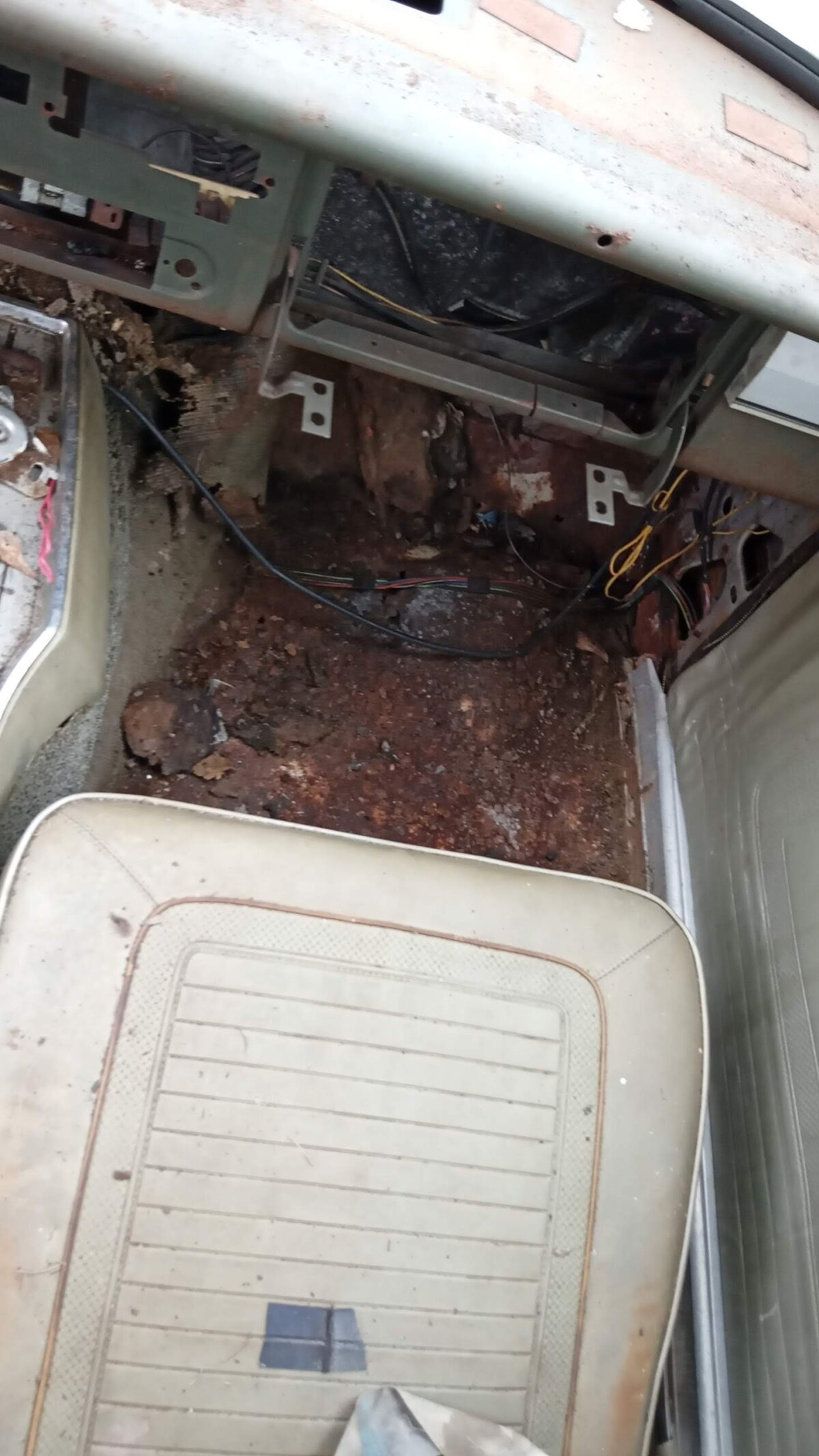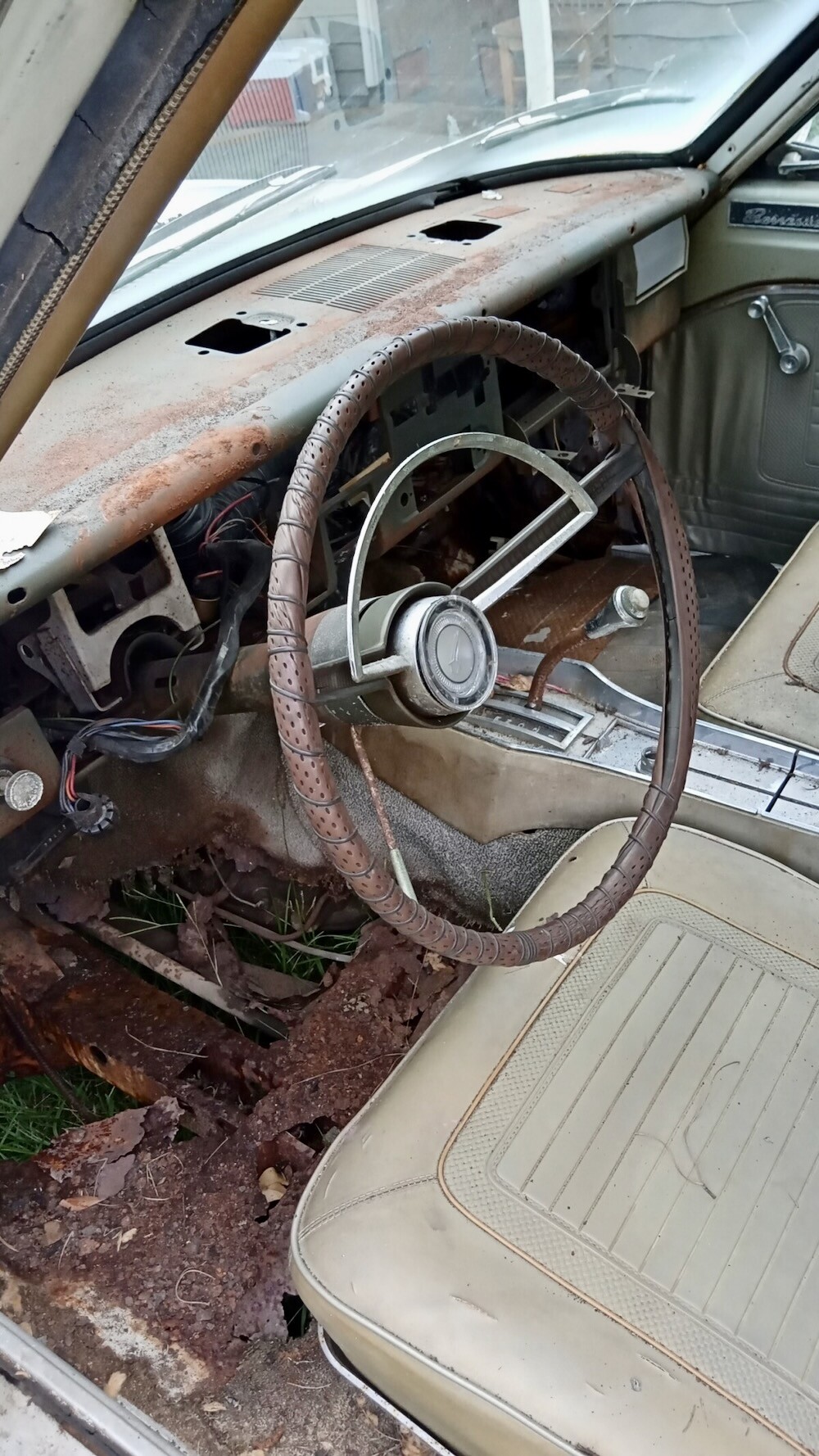The interior is also nicely equipped, with bucket seats, a floor shifter, and a center console. The seller notes that the floors are rusted, but believes the frame is solid. All the dash parts are present to make it and the glovebox complete. Restoring it would be a big task, but not impossible. The fact that there are lots of good parts here means it could also be a good parts car for another restoration project.