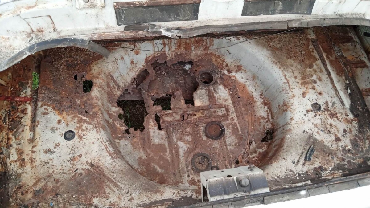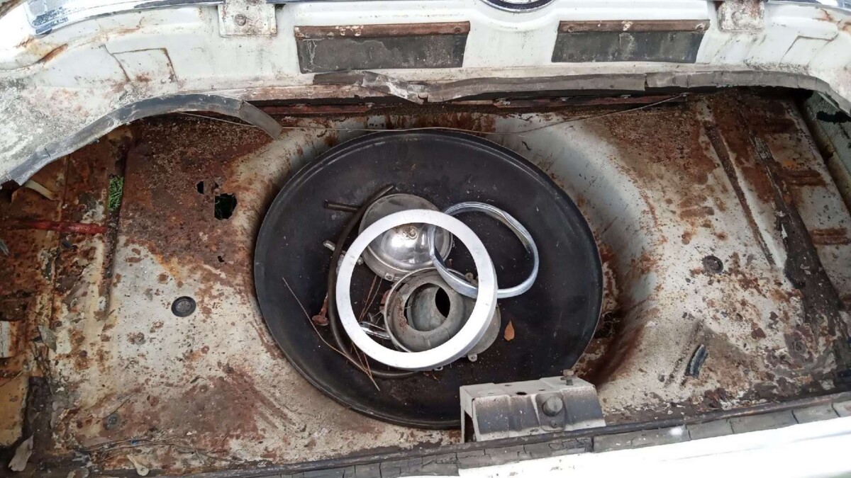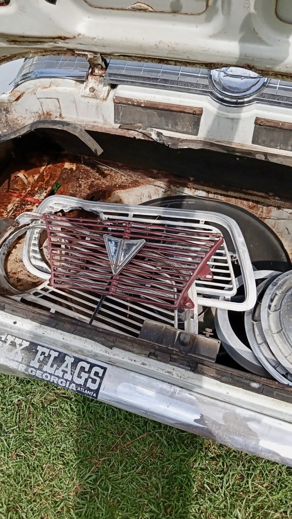 Here’s the original grille, which has been stashed in the trunk with two sets of hub caps. It would be great to see the grille back on the front of the car, just so you can see how it will look put back together. While style is subject to each person, these first-generation Barracudas look good in our book and this one deserves to be rescued, even if it’s just as a parts donor.