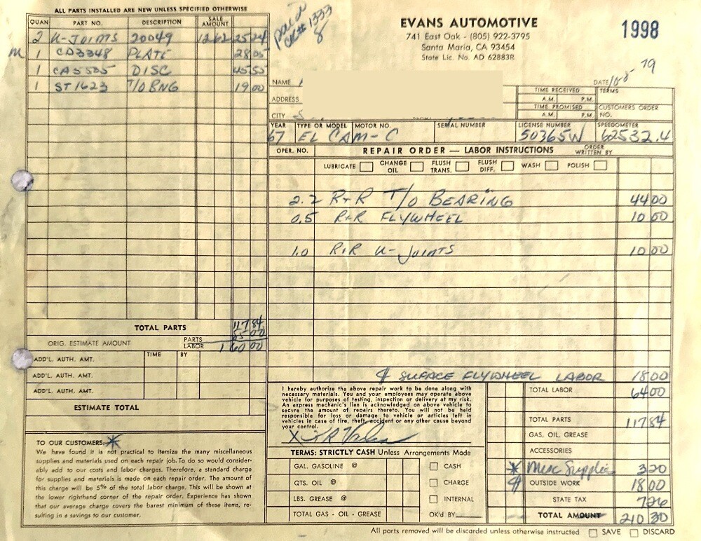UPDATE – While the engine was apart, the cam, pushrods, lifters, timing chain, time gears, and valve seals were also replaced.