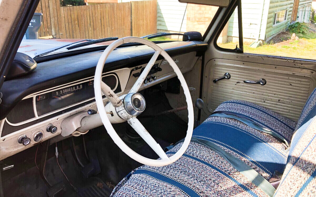 The inside of this truck is presentable as is, although it could use some work. It’s currently wearing a saddle blanket seat cover and we don’t get a good look at the original upholstery. Chances are it will need a new cover, but replacements are readily available. It’s also currently equipped with an aftermarket stereo, but the original radio is still with the truck and included. The topper that is currently installed on the bed is also included with the truck and appears to be in great shape. Personally, we would detail the interior, install a new dash cap, reinstall the original radio, leave the saddle seat cover, and just use the interior as is.