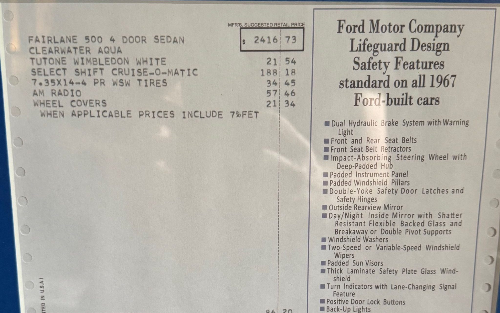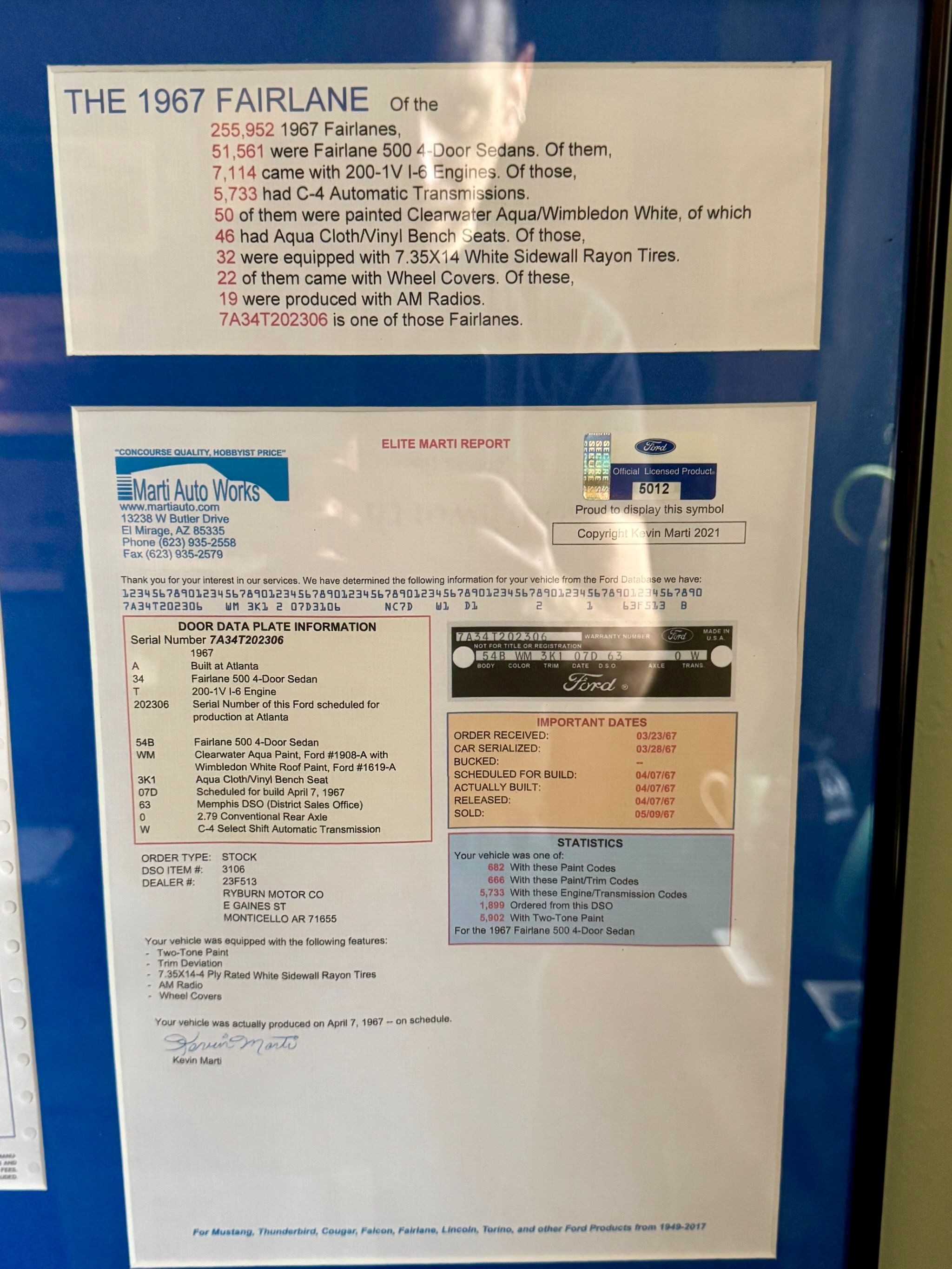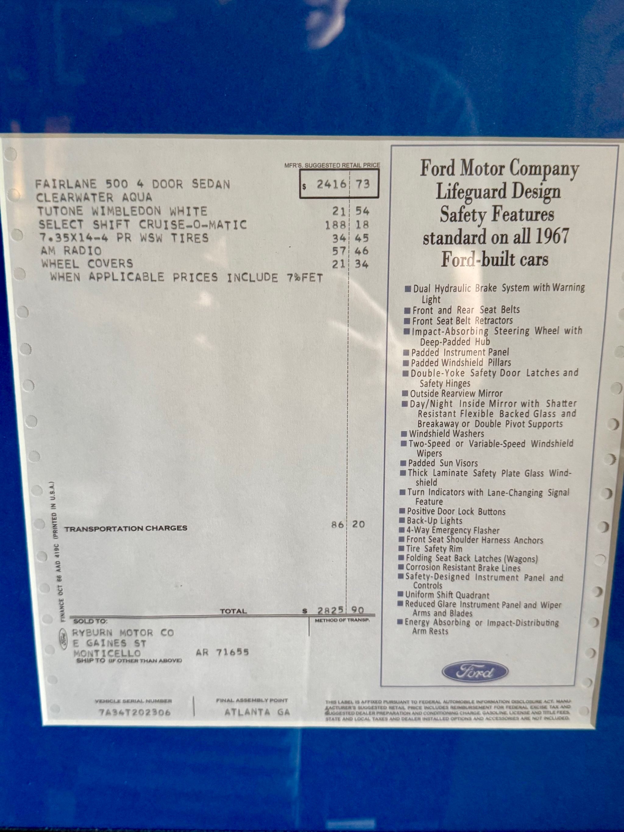 This is just so rare to find something like this. In sedan form. I think the upgrades all make sense, disc brakes, power steering, the 289 and C4. I would’ve been happy with the original 6 as well. This is one of my favorite colors Ford had during the 60s too. The interior is terrific, the whole car is terrific. The fact there’s even old paperwork, I totally agree with Bob, this is not typical, which is a great thing for this Fairlane. I always think of Dragnet when I see the nose of one of these too. Very nice. Hope it goes to a good new home and stays this nice.