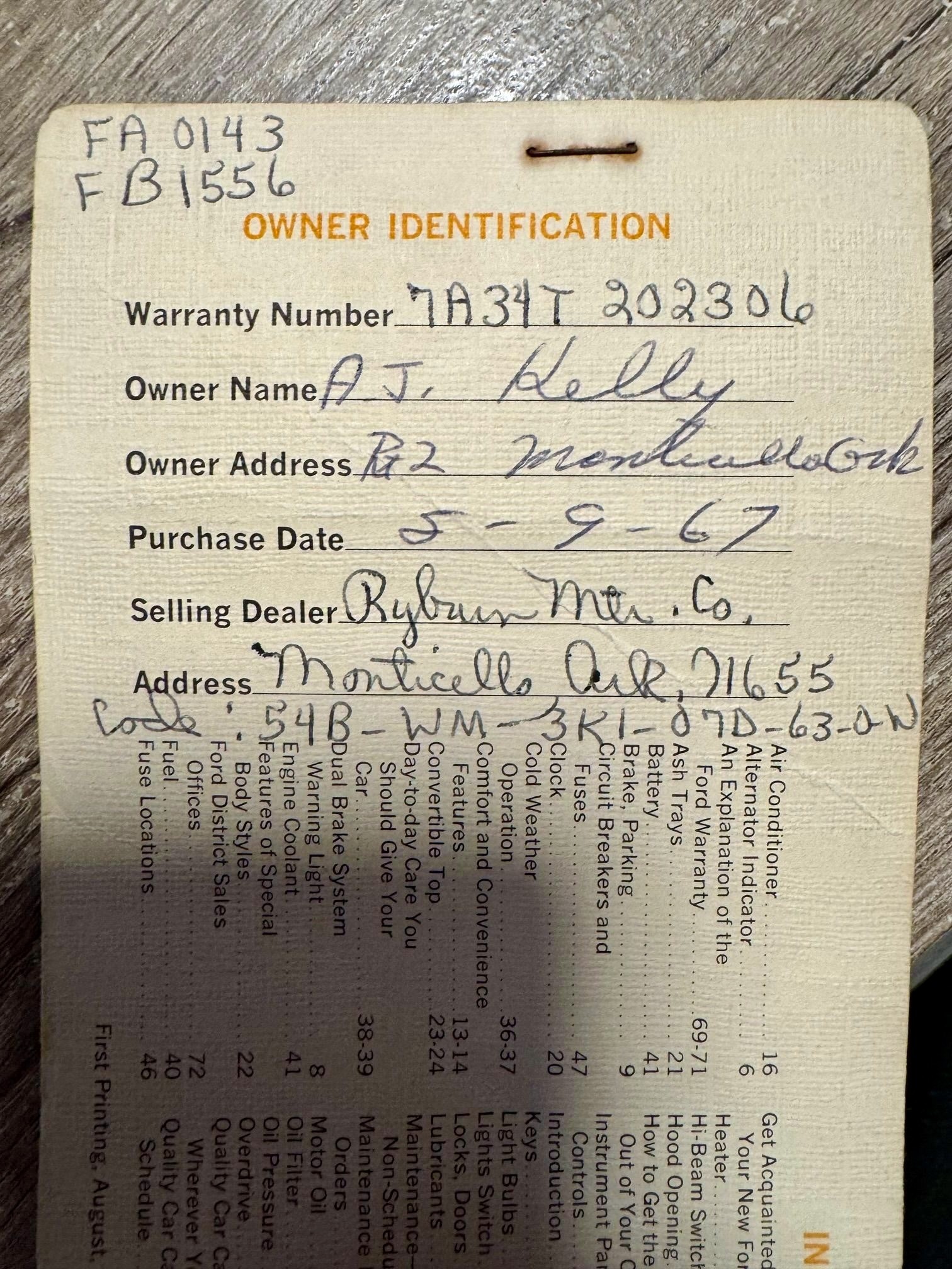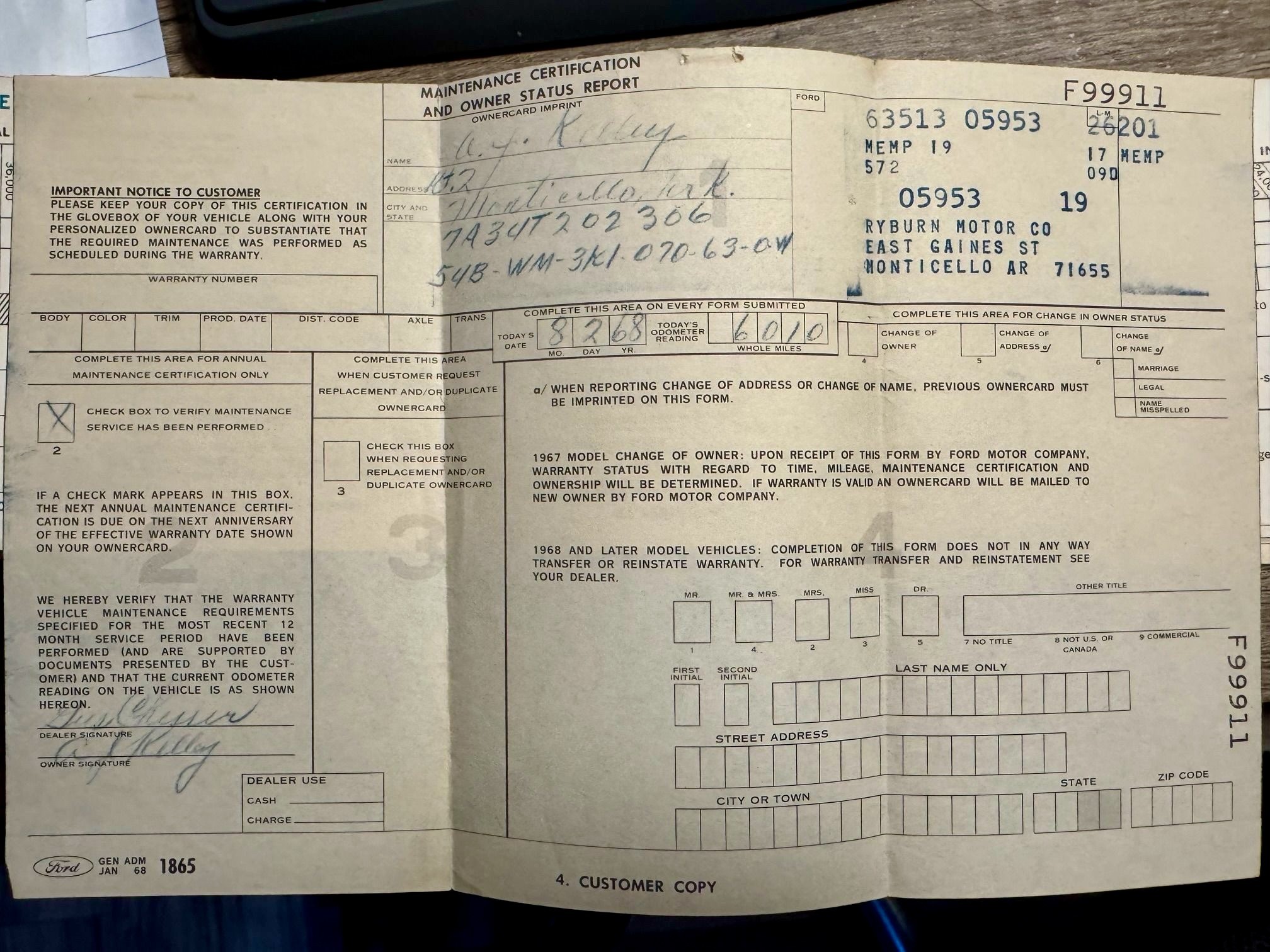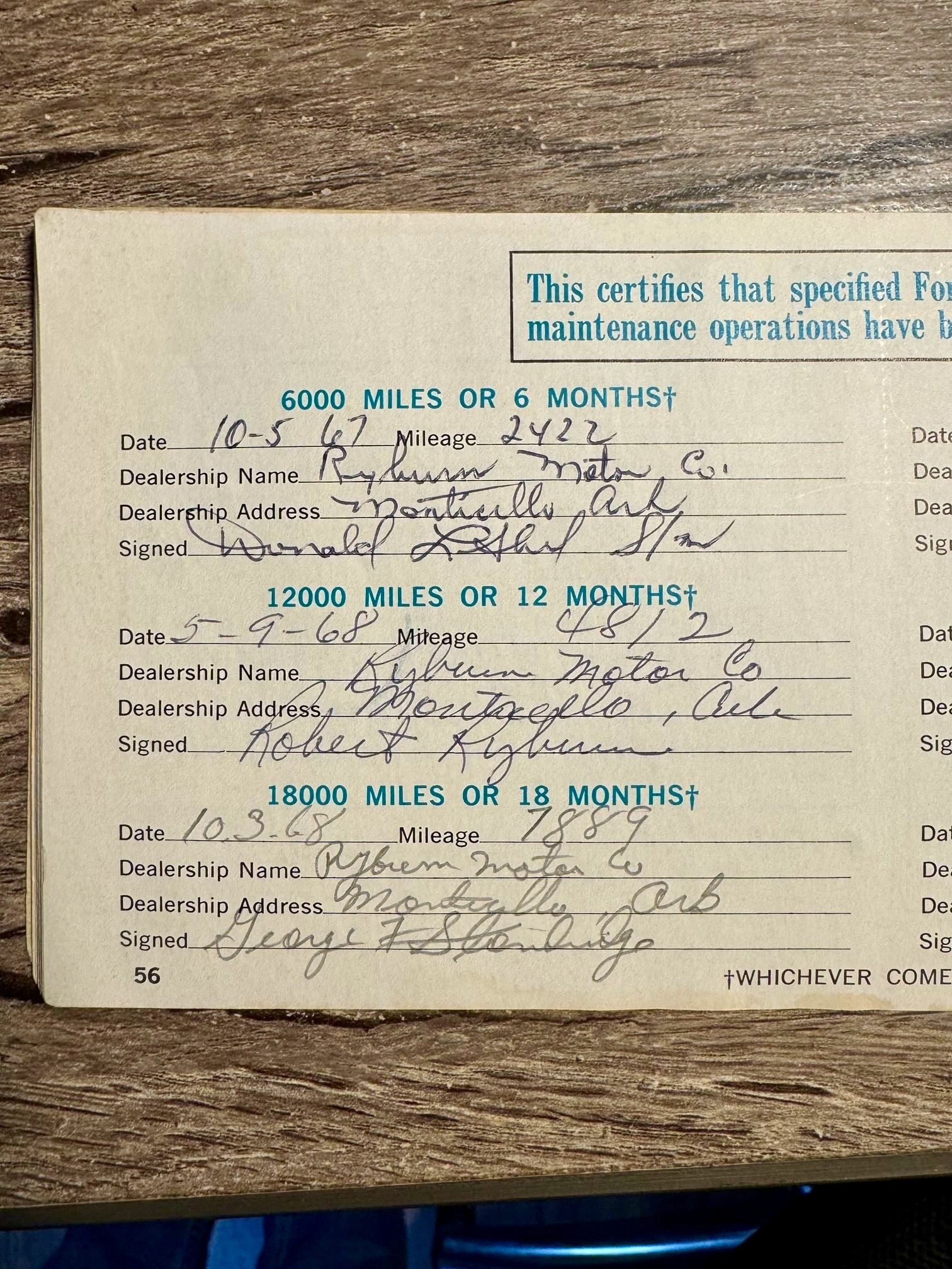 This is just so rare to find something like this. In sedan form. I think the upgrades all make sense, disc brakes, power steering, the 289 and C4. I would’ve been happy with the original 6 as well. This is one of my favorite colors Ford had during the 60s too. The interior is terrific, the whole car is terrific. The fact there’s even old paperwork, I totally agree with Bob, this is not typical, which is a great thing for this Fairlane. I always think of Dragnet when I see the nose of one of these too. Very nice. Hope it goes to a good new home and stays this nice.