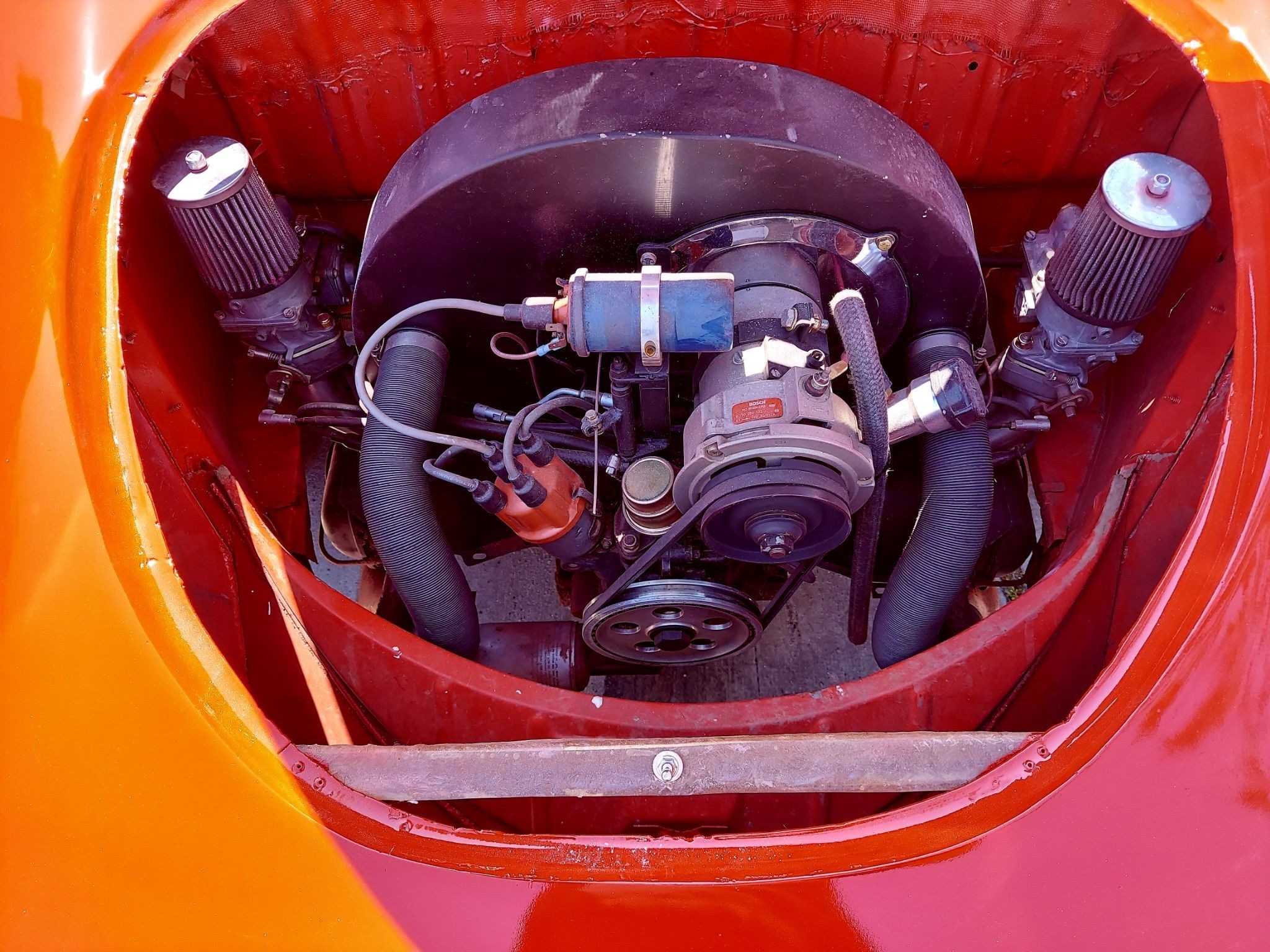 Underneath, this Sebring rides on a Volkswagen chassis with a 1600cc engine and manual transmission. Recent servicing included fresh dual carburetors, ensuring smooth performance, and the car also benefits from disc brakes, a rare and welcome upgrade on a lightweight roadster. The seller highlights the installation of Scat adjustable pedals and attractive Porsche “Range Top” wheels, further elevating its driving experience and visual appeal.
