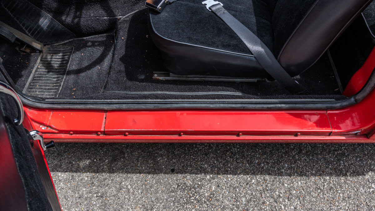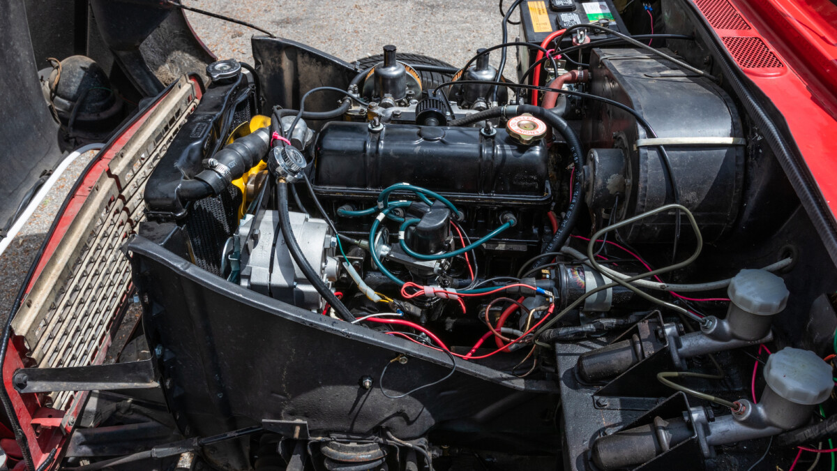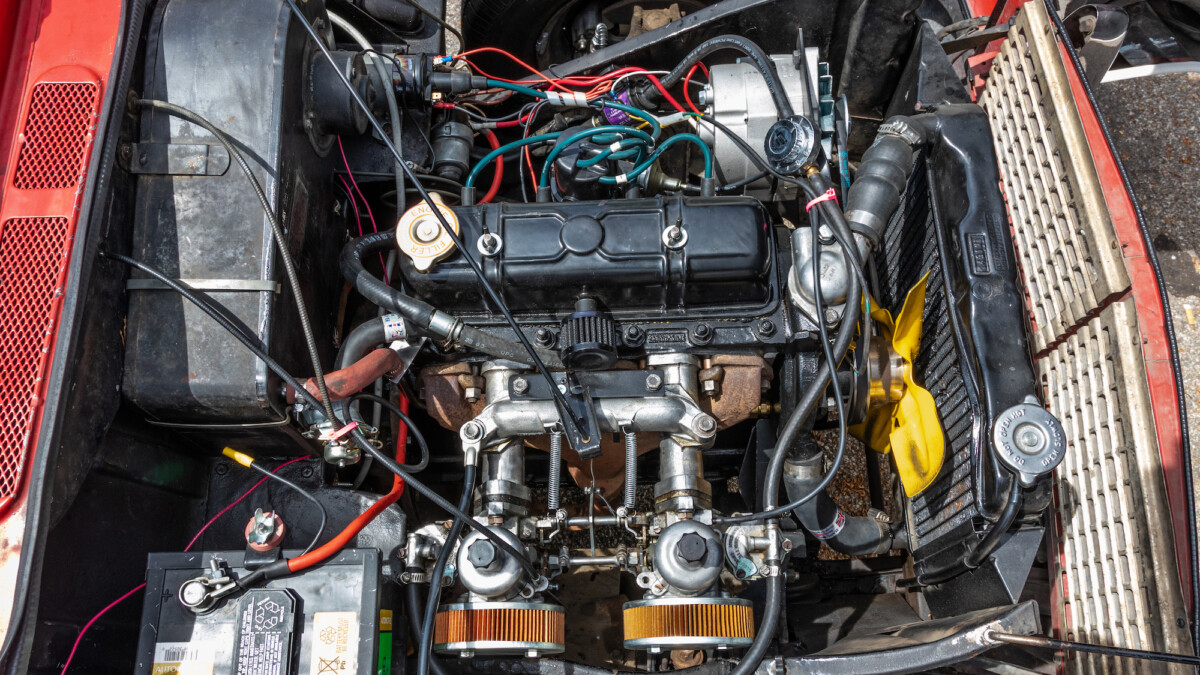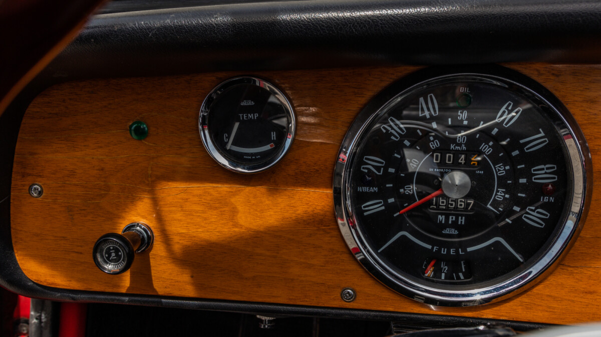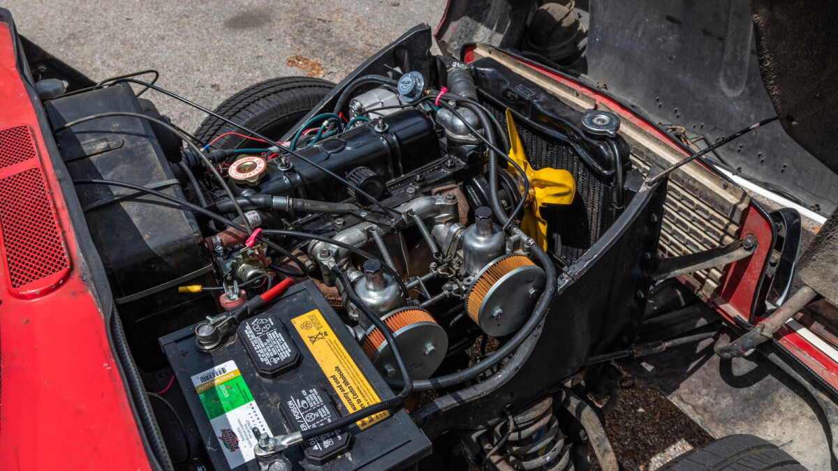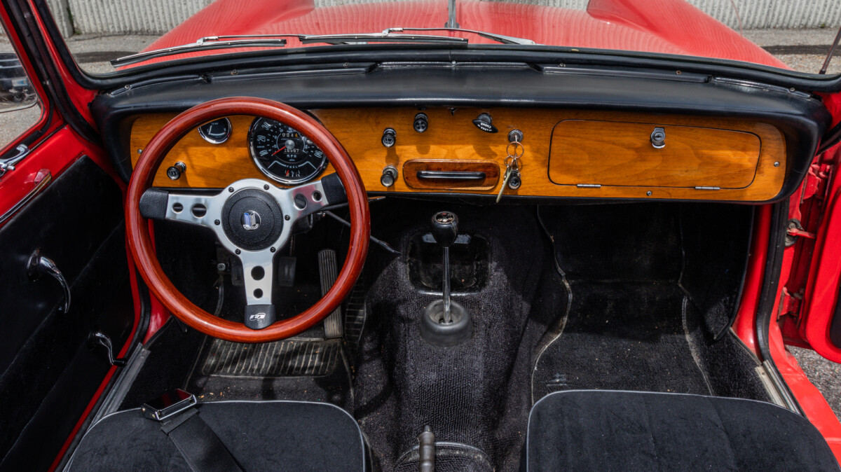 The inside looks to be in nice shape and is reminiscent of, well, a Spitfire. The wooden dash panel is larger and lacks a few of the gauges found in the Spitfire/GT6, but you can definitely see the relation. There are a few cracks showing in the wood, but overall, it presents nicely. The Motolita steering wheel is a nice touch, but its wooden rim doesn’t match the dash’s stain. It can be a challenge to match stains perfectly and it’s honestly a nice upgrade over the stock wheel. All of the soft surfaces look to be in good shape. A new convertible top has already been fitted, but the best way to enjoy a British convertible is with the top down.