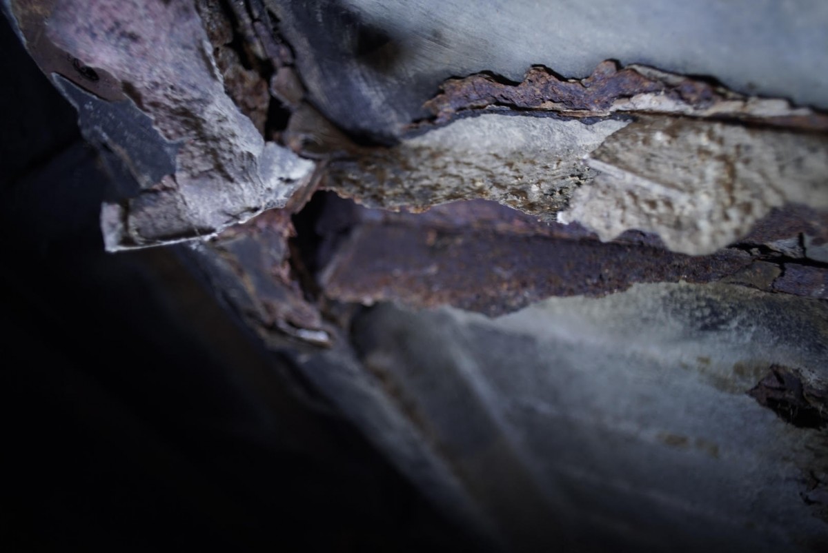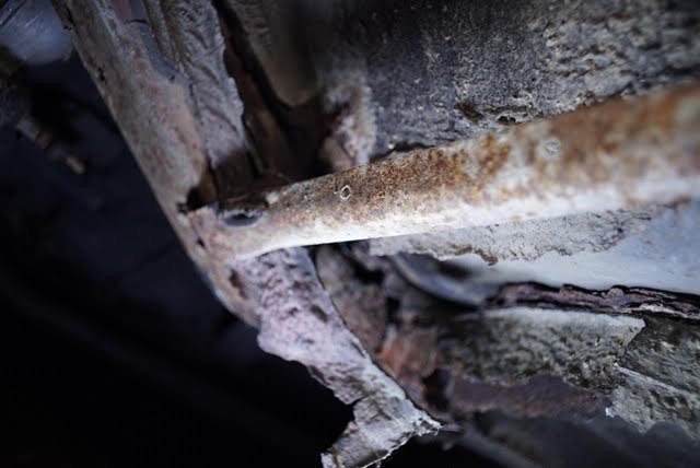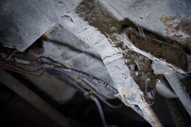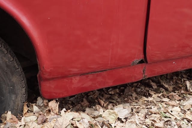 The left rear fender is evidence of this being the second instance of major rot. The lifting of body filler, underneath the chrome strip is ominous.