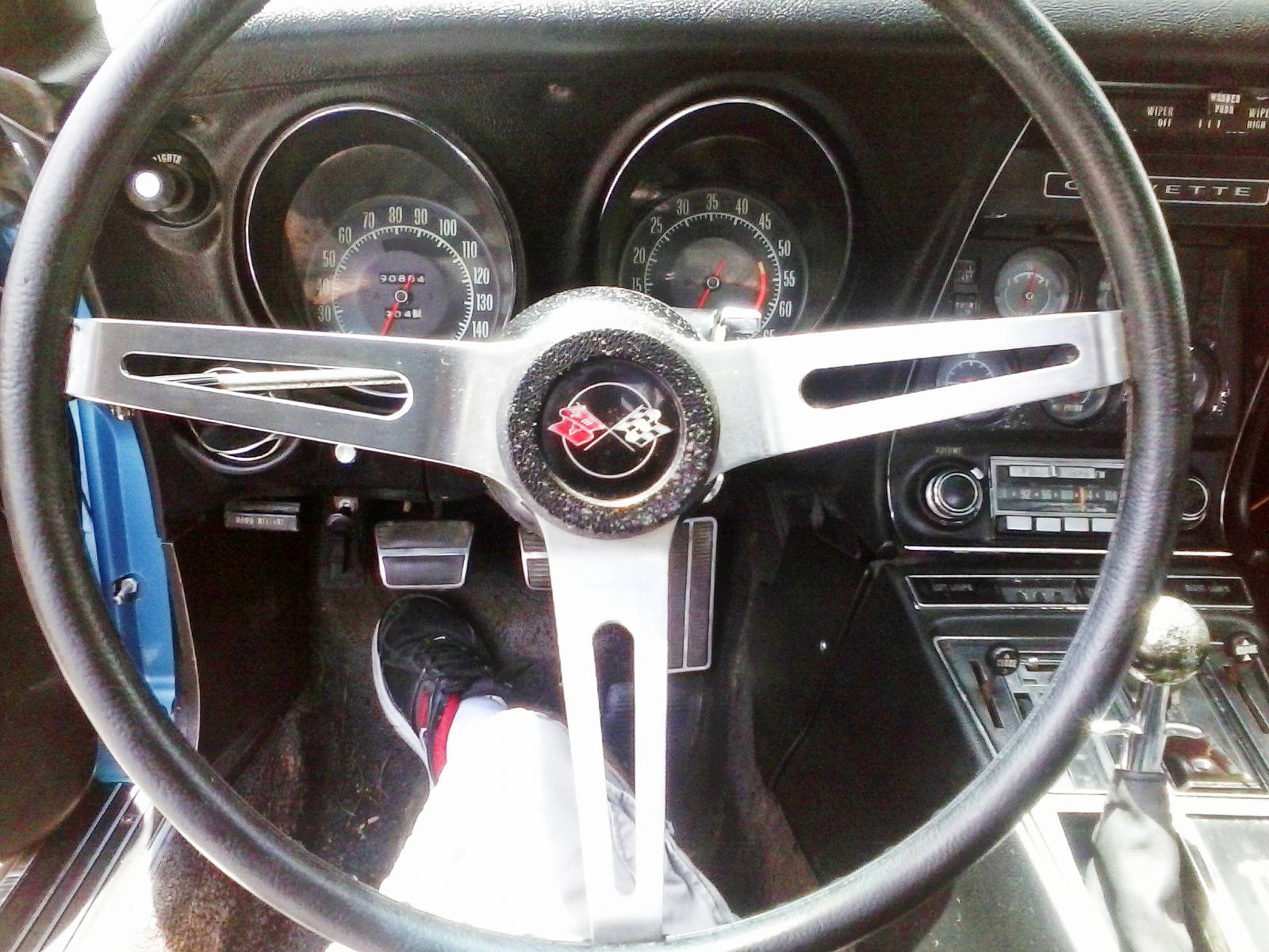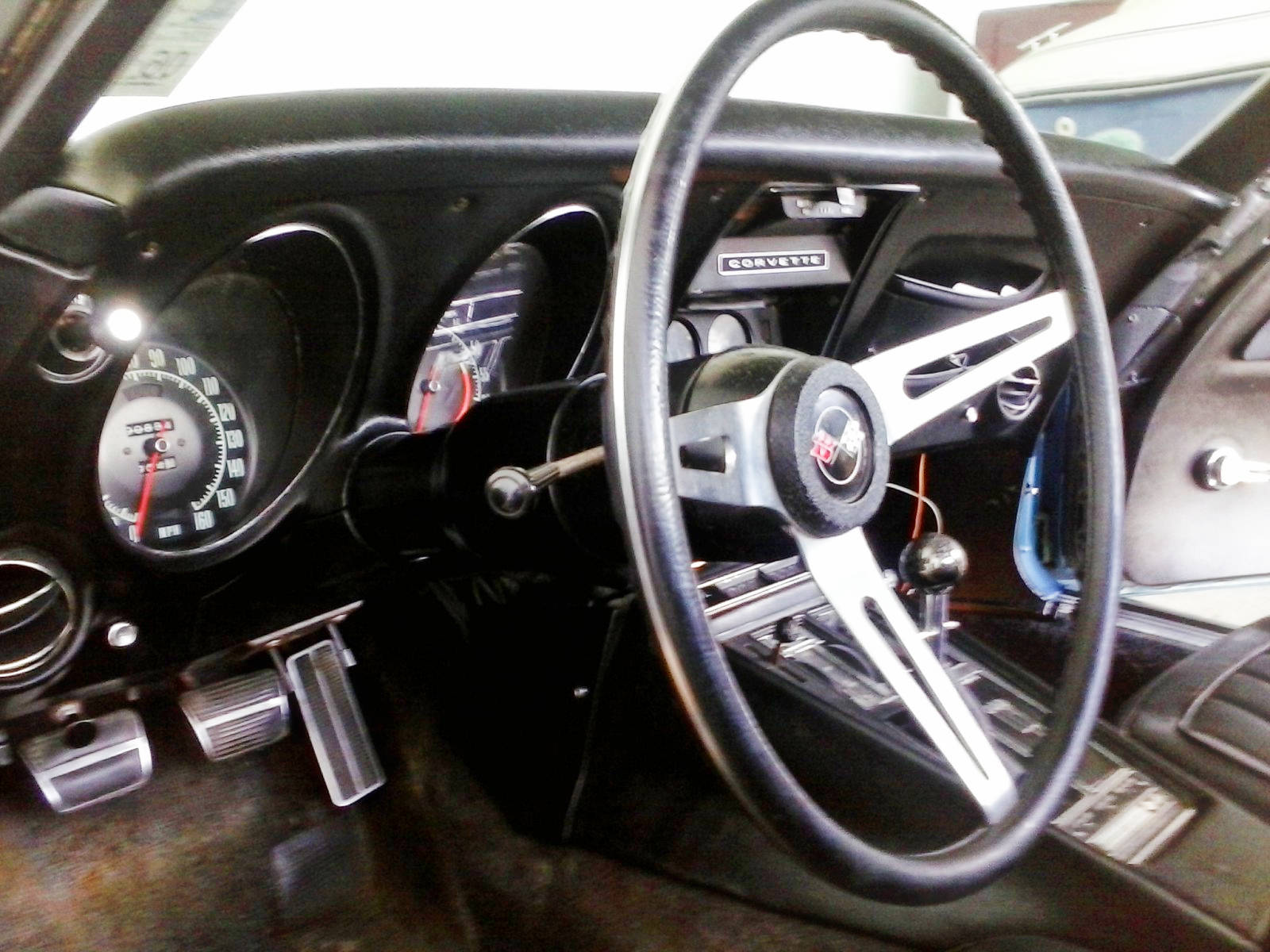 The inside could use a good detailing, but Tim claims everything is original, from the seats to the carpet. We see some scratches and chips in some of the plastic trim pieces, but that isn’t uncommon for a 48 year old classic with 93k miles on it. Thankfully, Corvette parts are easy to come by, so it wouldn’t be too difficult or expensive to get the interior looking perfect!