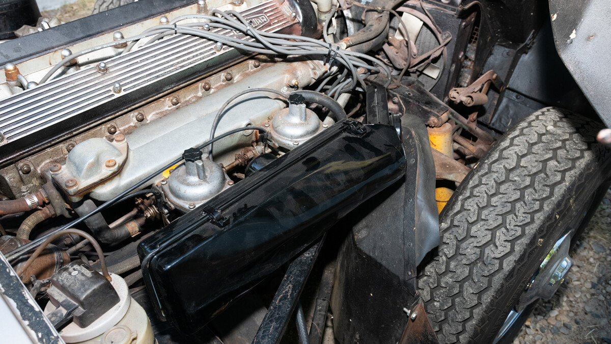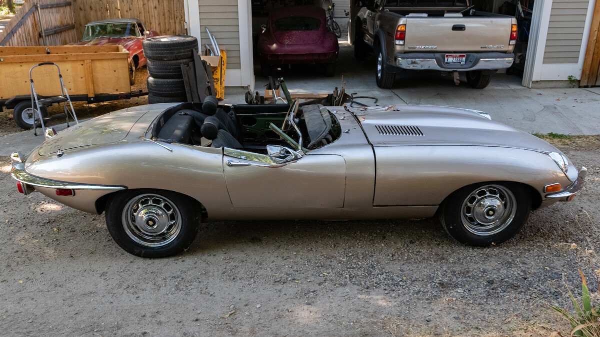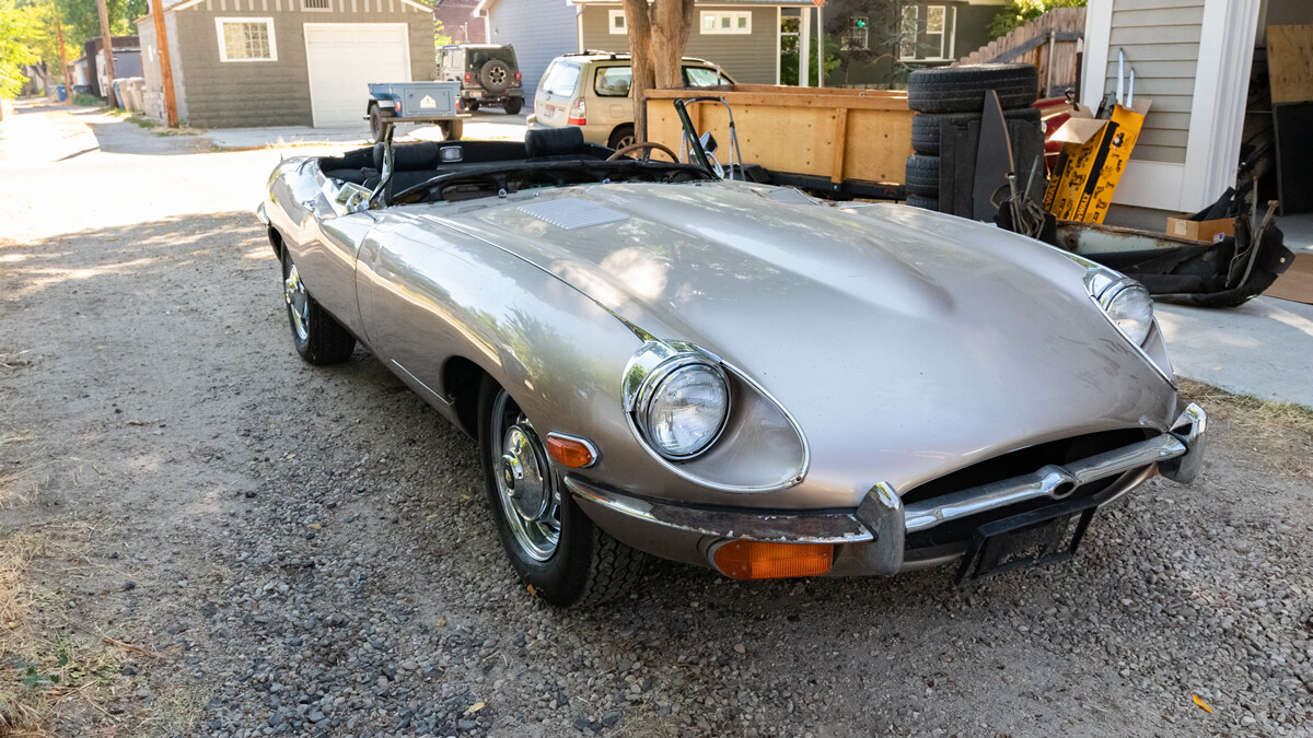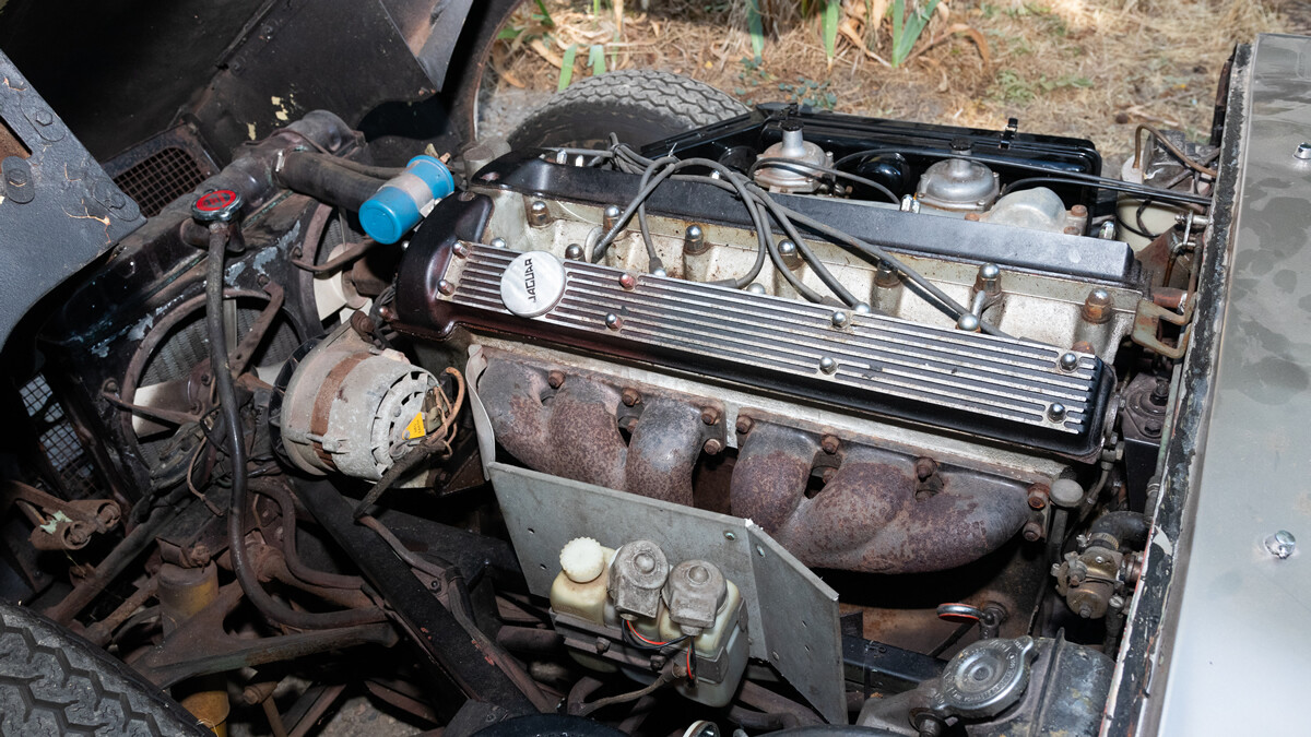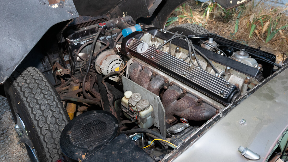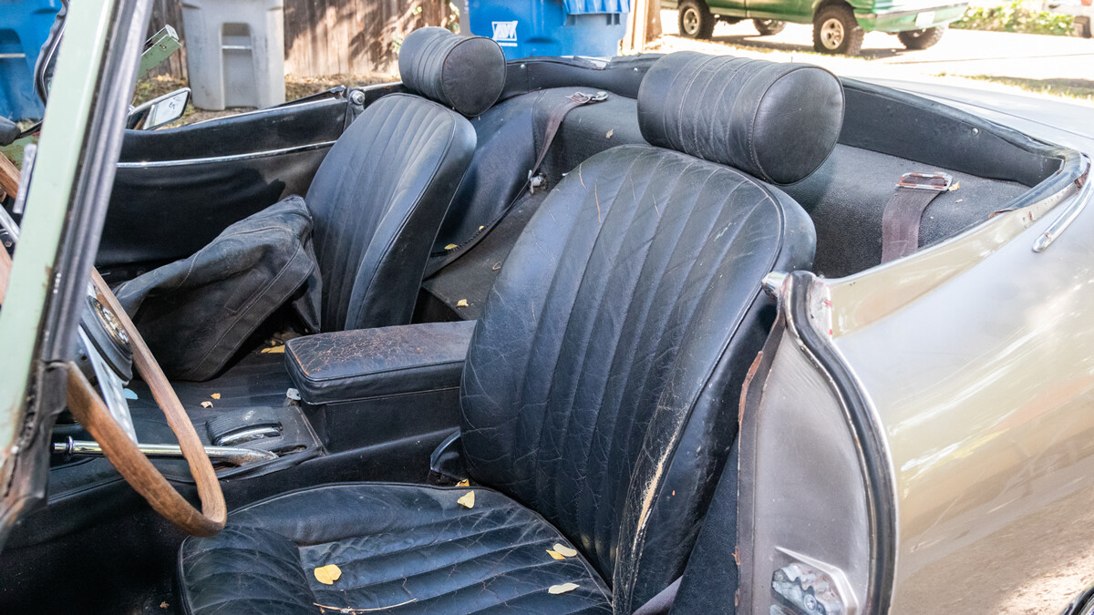 We have some good news and some bad. First, the good. When the seller inherited these cars a few years ago, he took them to a local British car specialist and had him go through the engine and brakes. So this car is running and driving. It’s equipped with Jag’s big inline-six and a four-speed manual transmission.