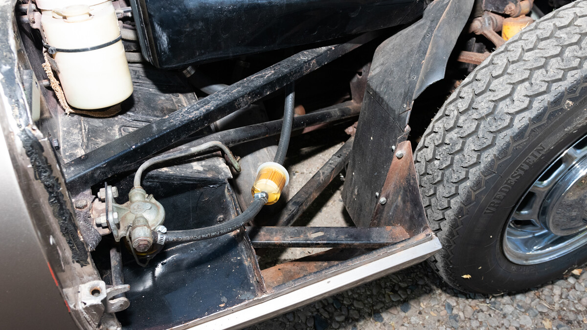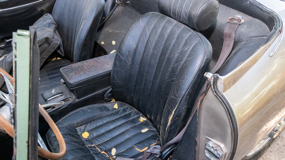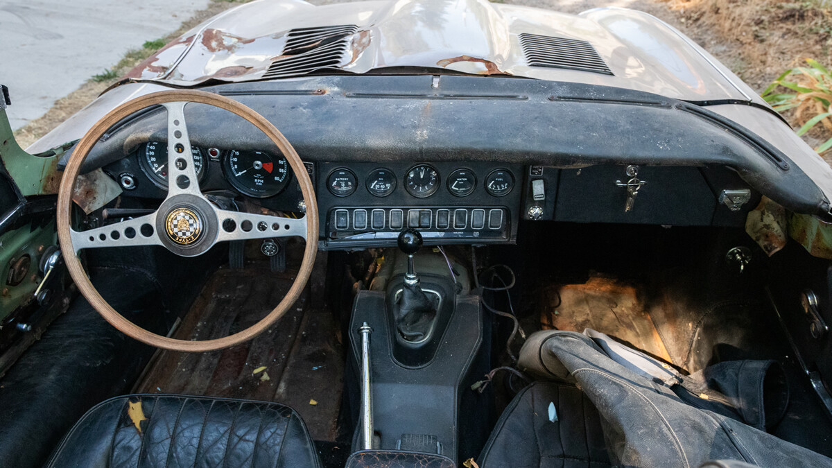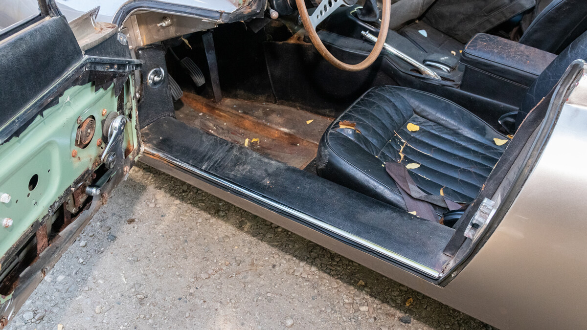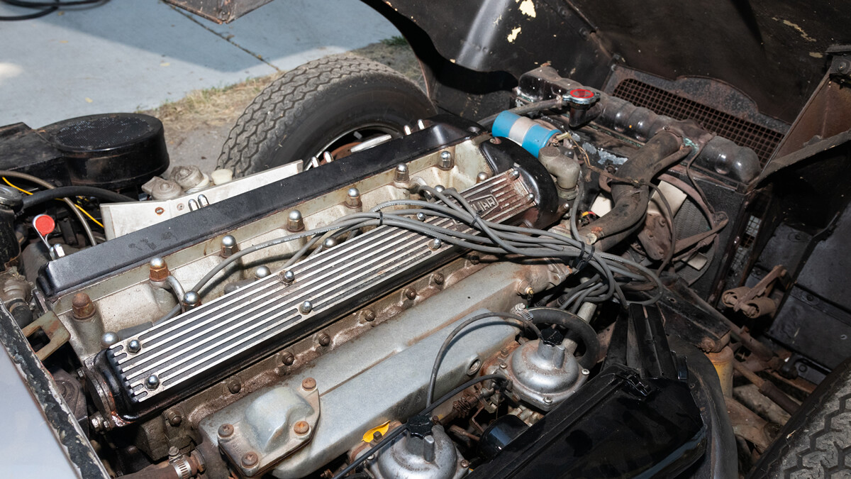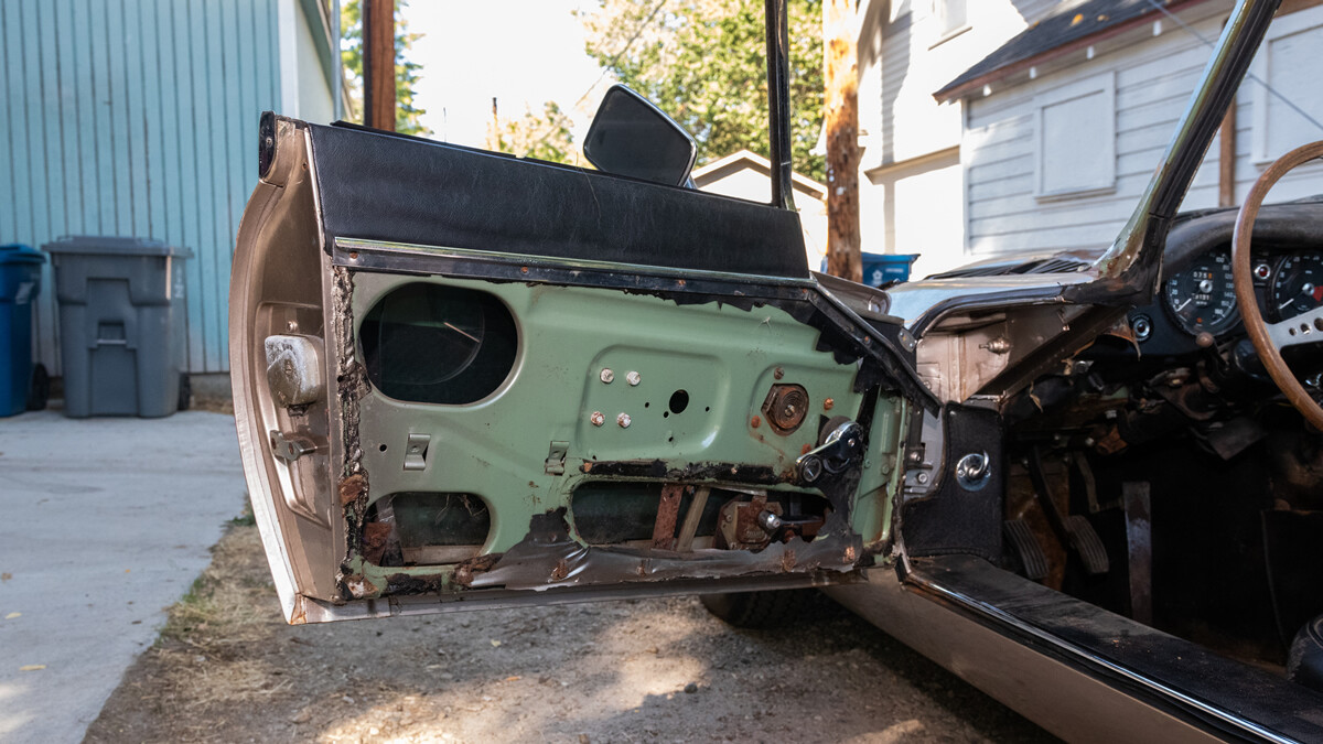 We have some good news and some bad. First, the good. When the seller inherited these cars a few years ago, he took them to a local British car specialist and had him go through the engine and brakes. So this car is running and driving. It’s equipped with Jag’s big inline-six and a four-speed manual transmission.