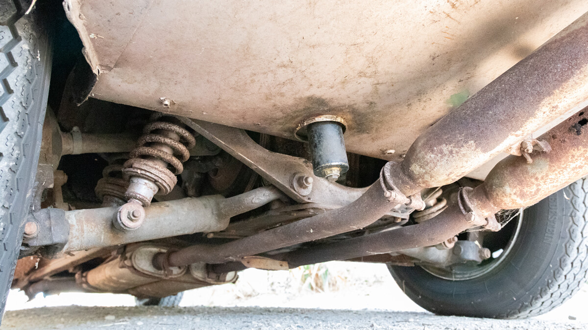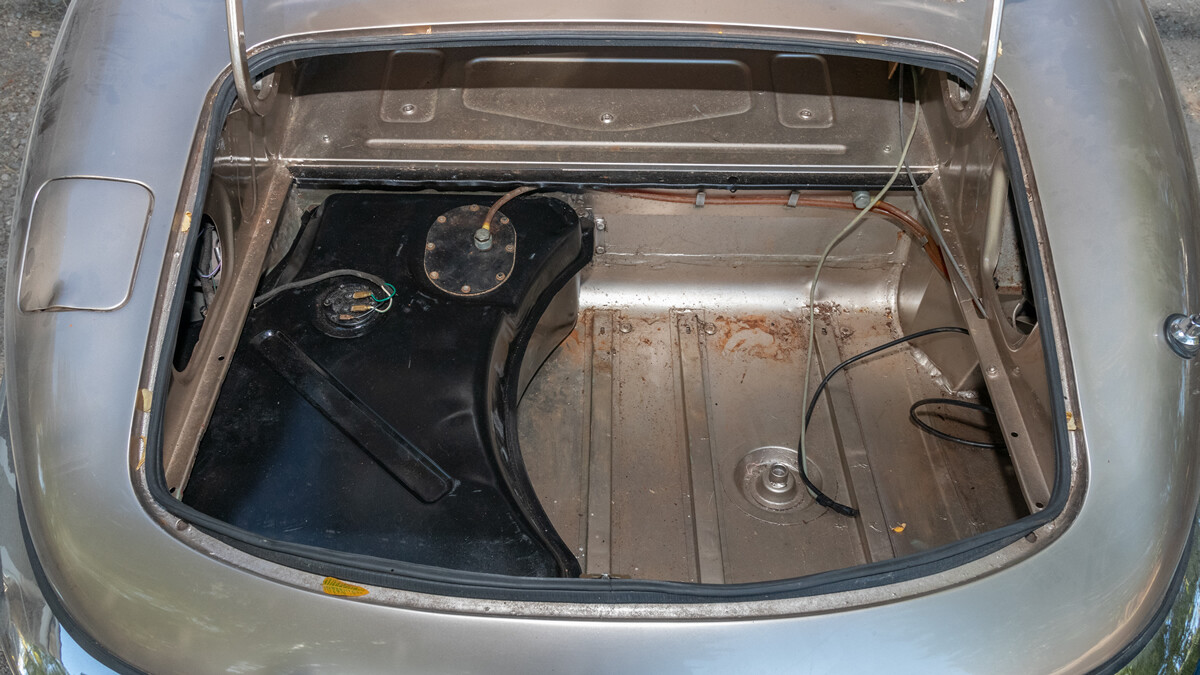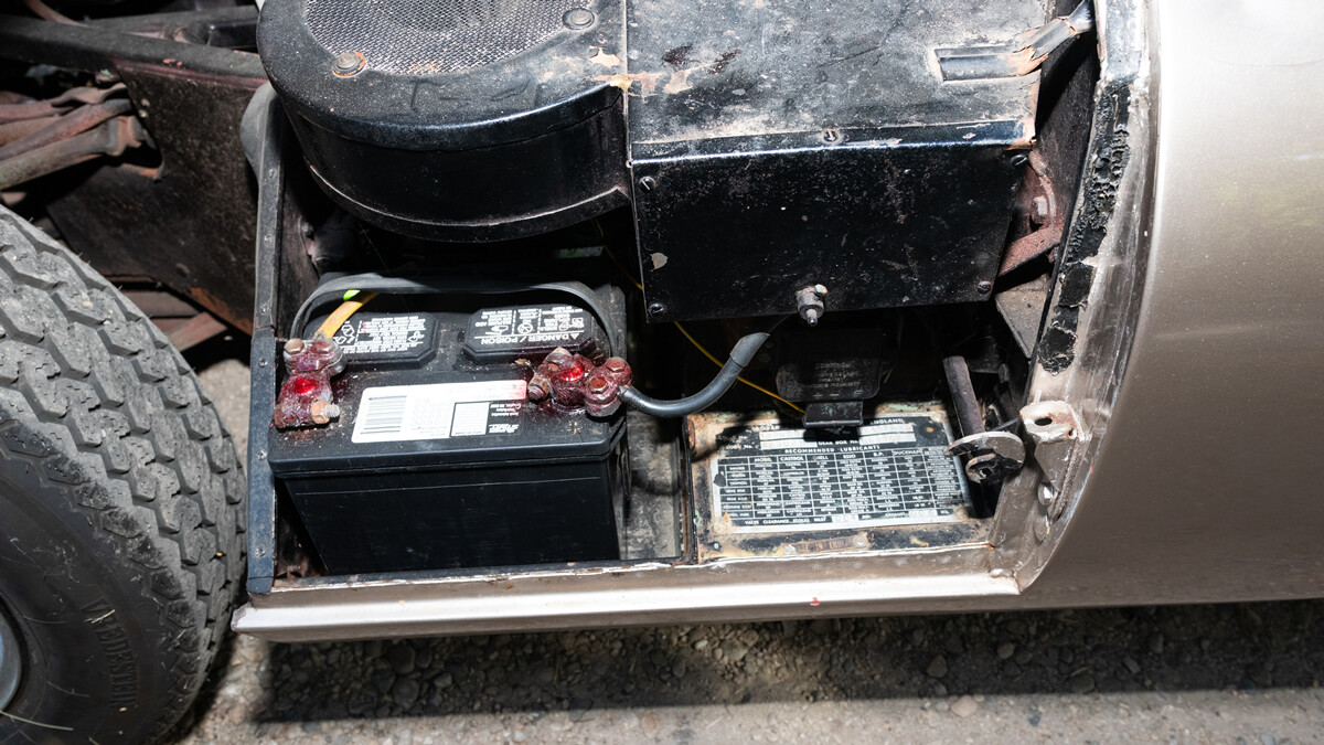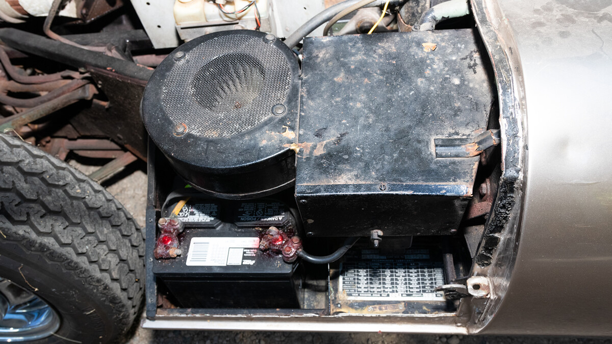 The interior has some wear and tear but appears to be complete and in decent condition. There’s evidence of a color change though. It looks like the original paint may have been a light green. The current gold hue looks great though too so the next owner will have their work cut out for them in choosing a color.