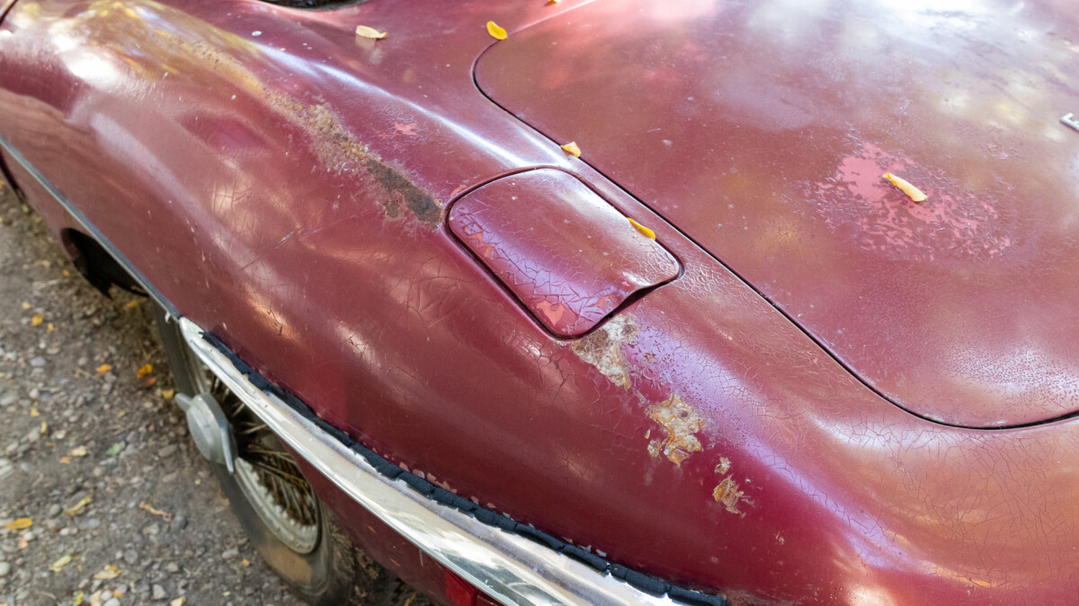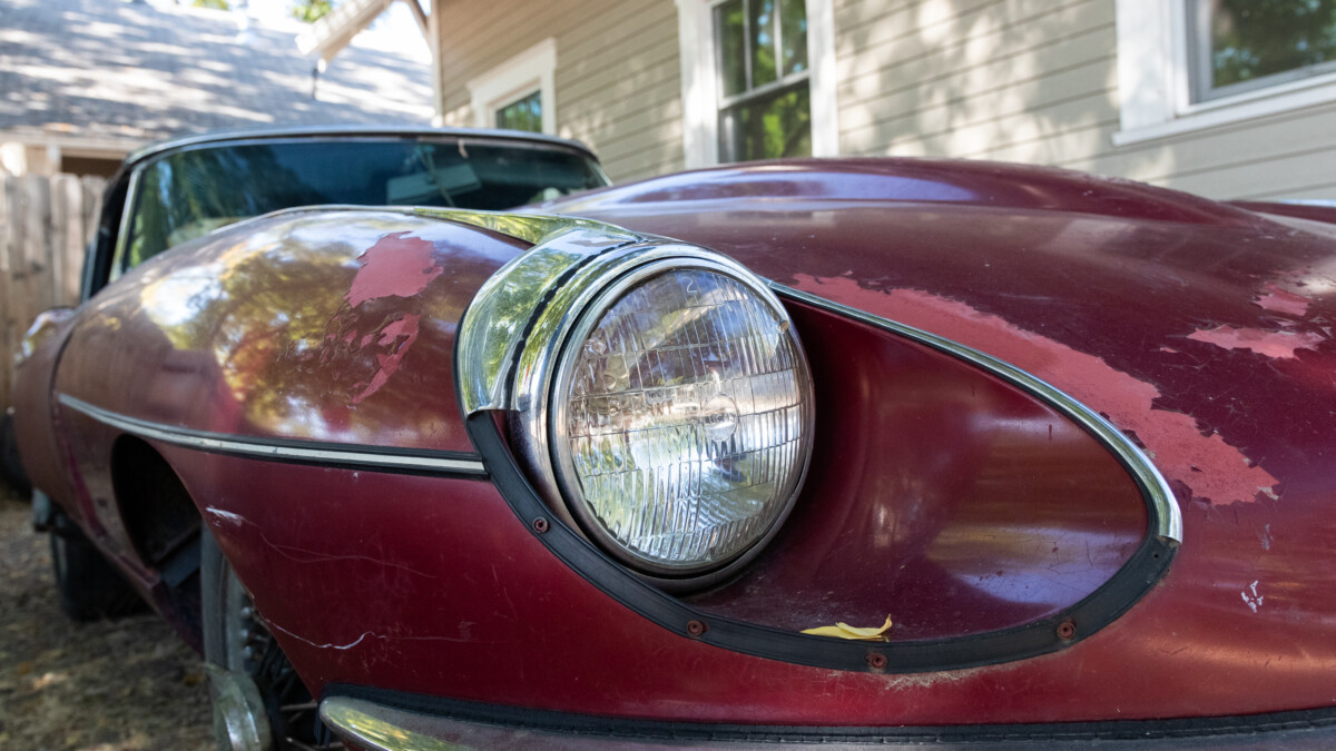 Just in time for Halloween, a scary, rusty Jaguar XKE.