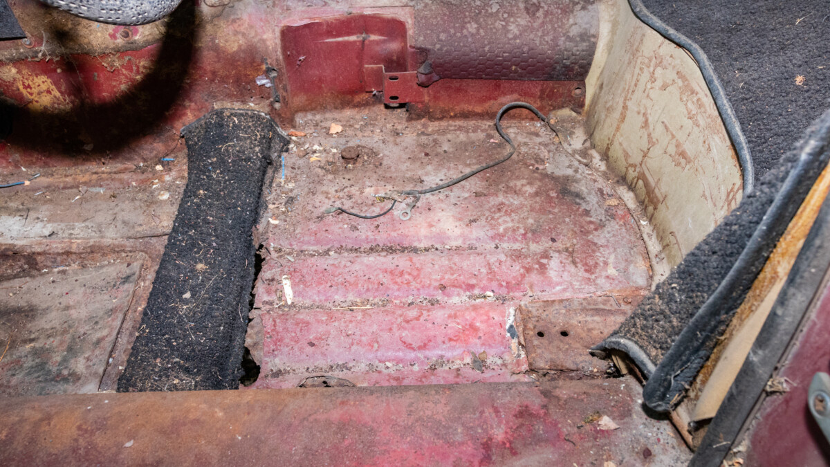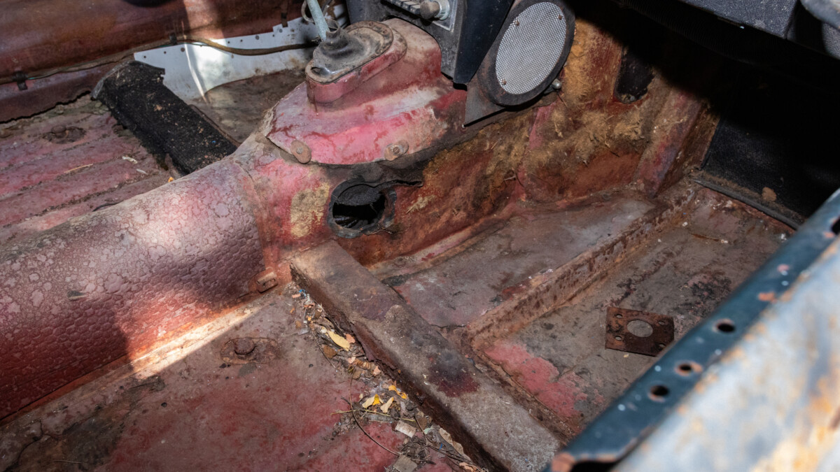 Unfortunately, the seats and door panels have gone missing. The dash is there but a lot of treasure hunting will be needed to put this one back together. There are a lot of parts suppliers and used bits out there though so the job shouldn’t be impossible. The biggest task here might be repairing the rusty floors. The tin worm does like these old Jags so that is not a big surprise.