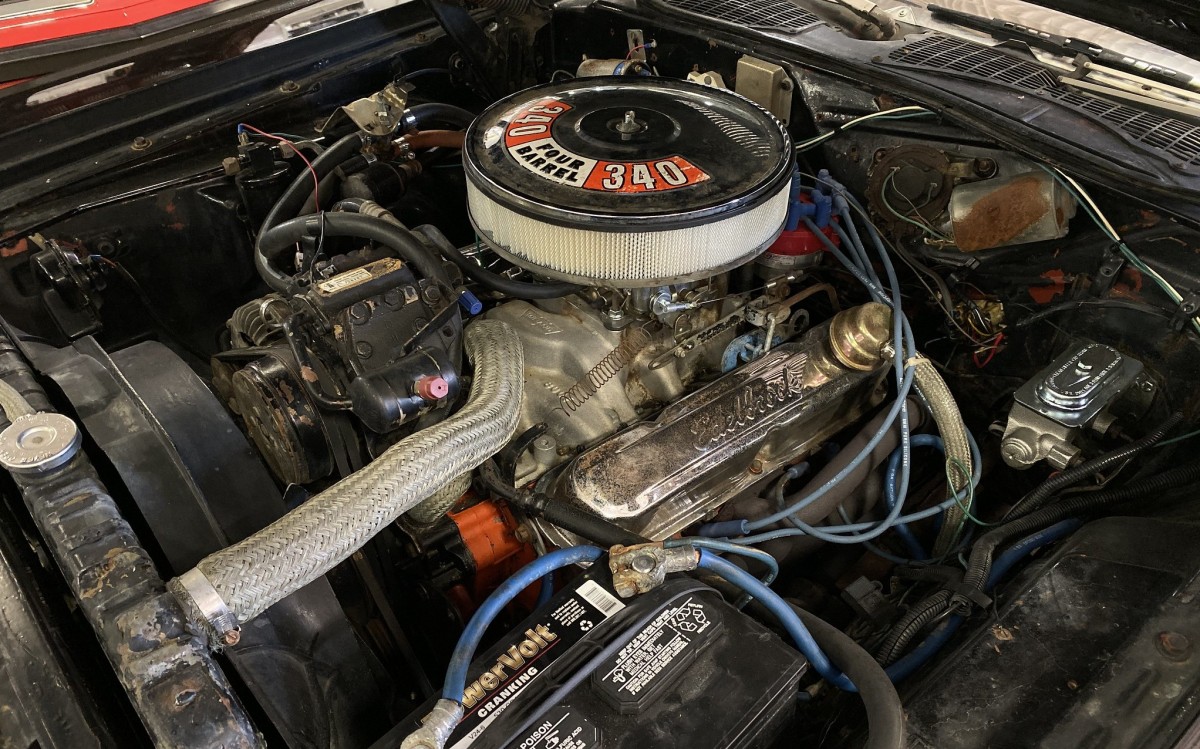 The air cleaner says “340”, but it’s actually a 360 V8 with a four-barrel on top. It left the factory with a 318 so this is a nice upgrade and the seller claims that it’s fast and fun to drive. I’d probably tone things down by replacing the valve covers and radiator hose cover. Now we are just nitpicking.