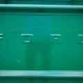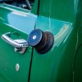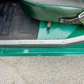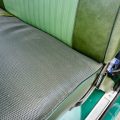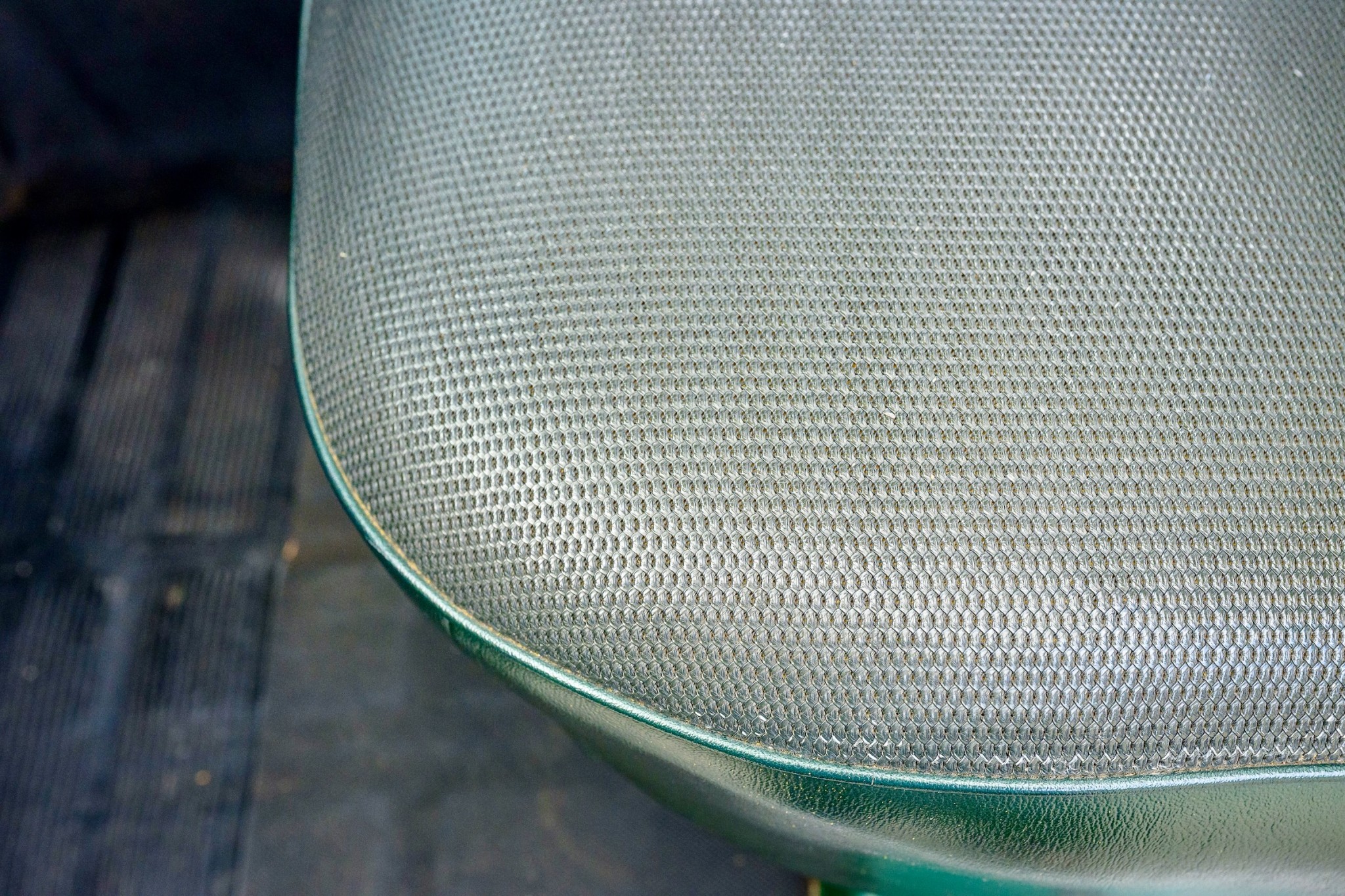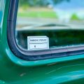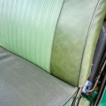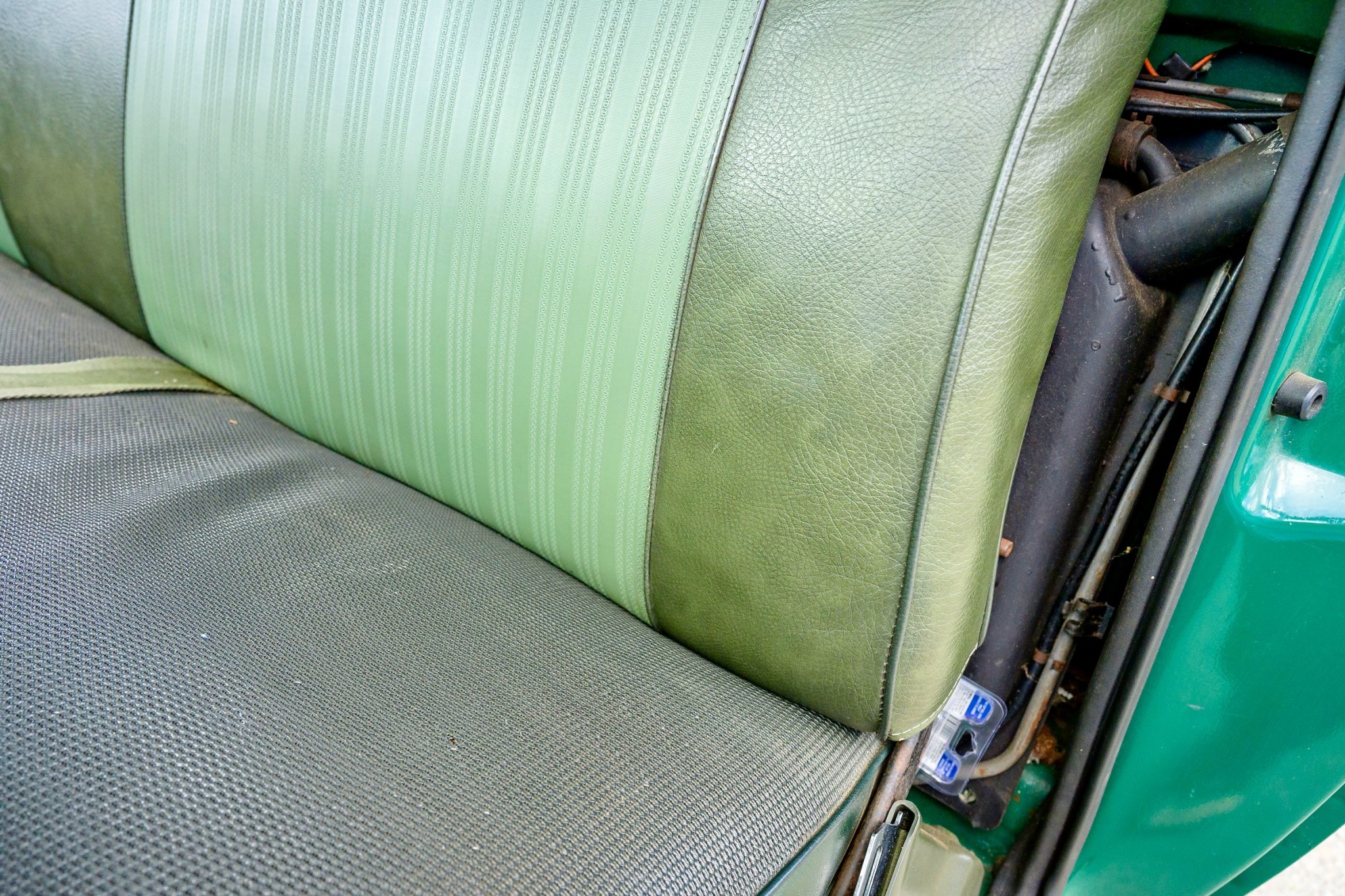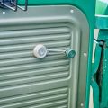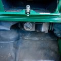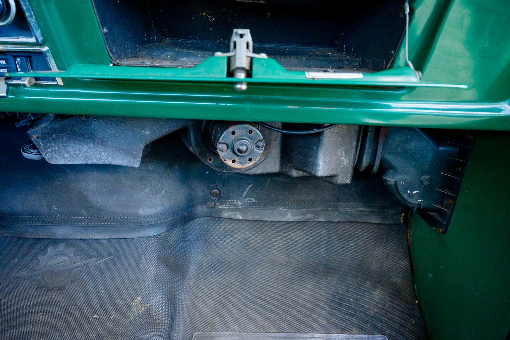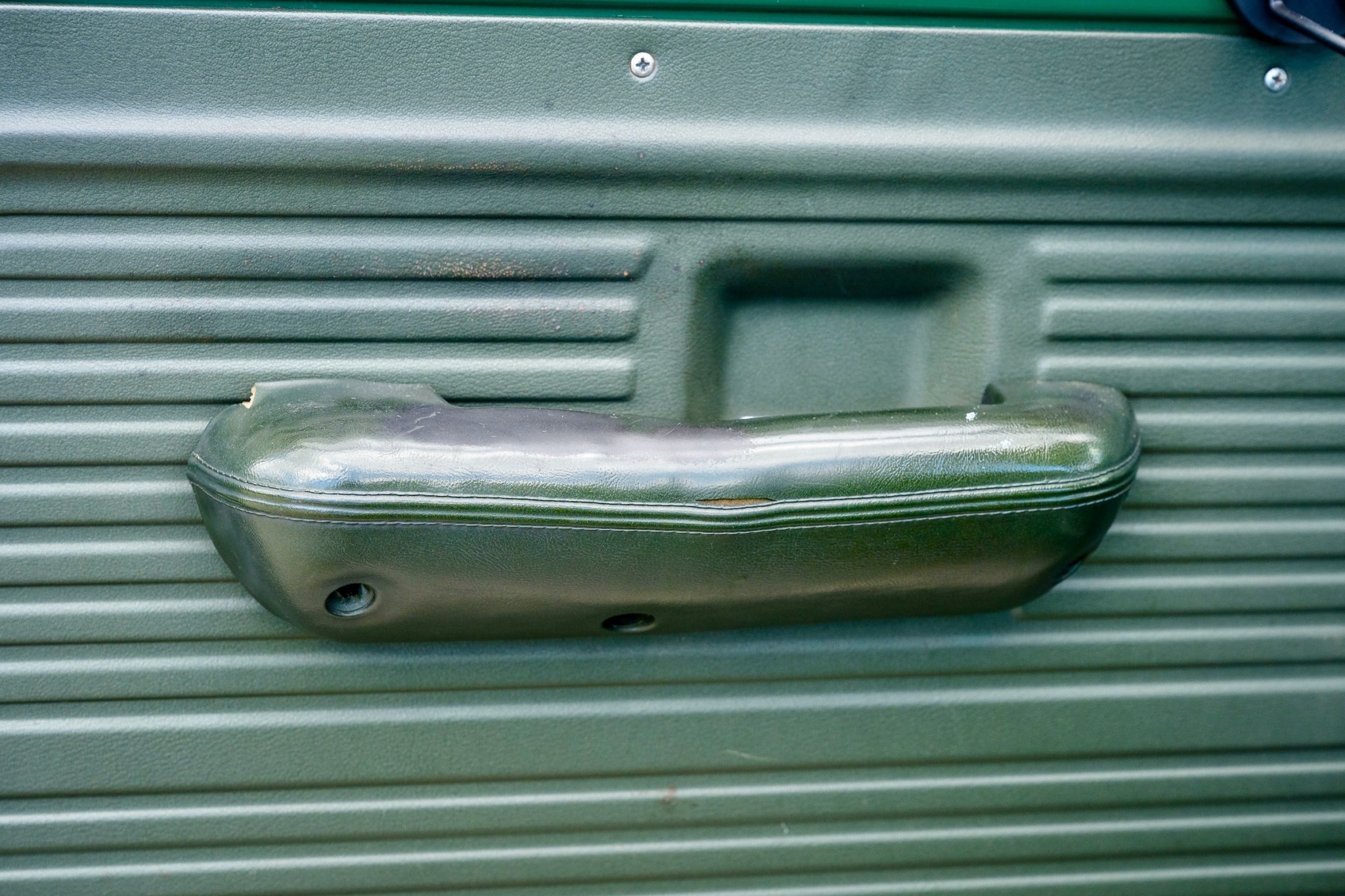 As far as I know, none of the green interior pieces for this truck are available… I’ve seen a few colors available but not green (and if you look closely you’ll see that everything on the interior has the same green: door panels, arm rests, window crank knobs). I got the black vinyl seat upholstery with the truck but haven’t had it installed because I’d really rather get something custom done that is closer to the original.