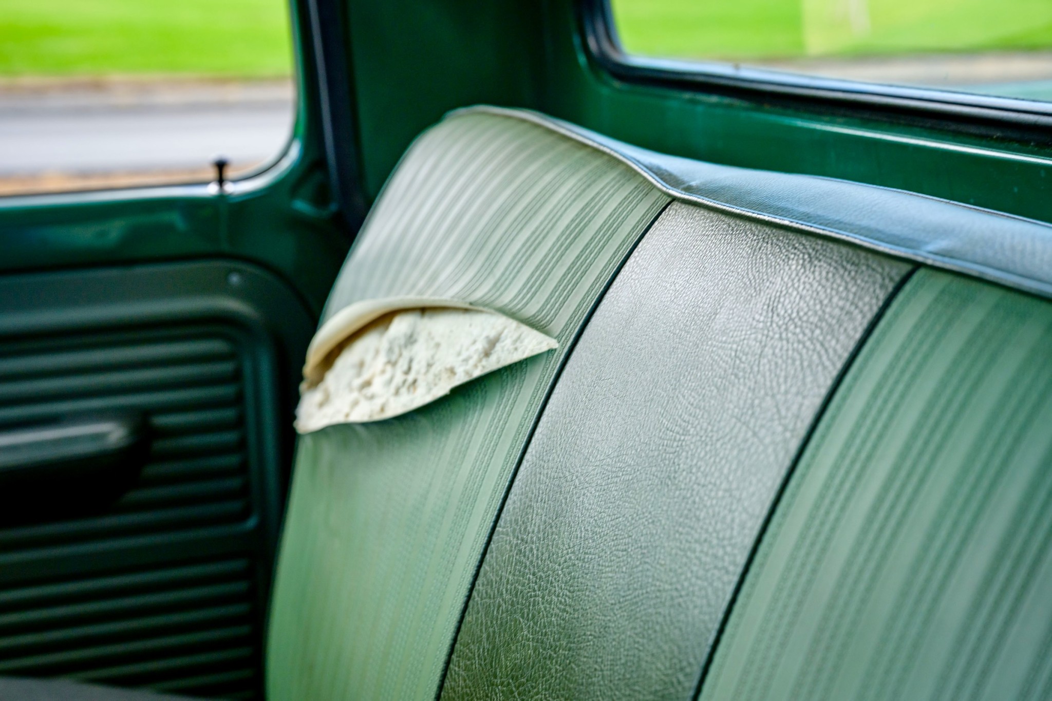 I am not sure if the seat was vandalized or if it split open due to rodent activity, because this truck was rescued out of a yard that was a rat’s paradise…while I did not actually find any animals in the truck there was plenty of evidence of them (there was a nest under the dashboard and they’d ruined the ribbon cable on the speedometer and chewed through a number of wires, which I’ve repaired/replaced).