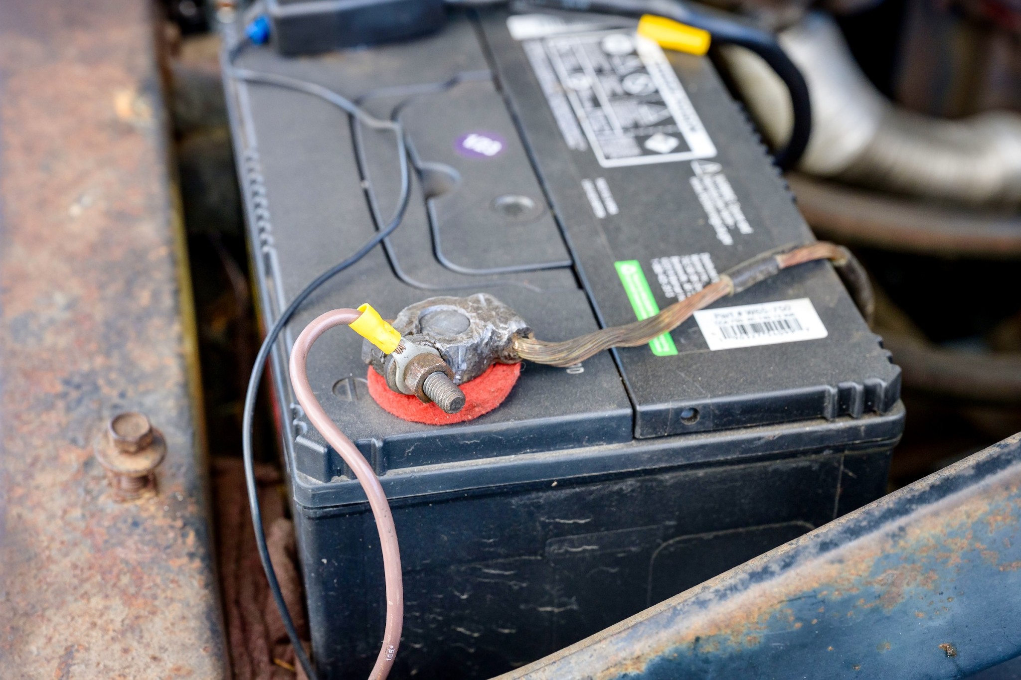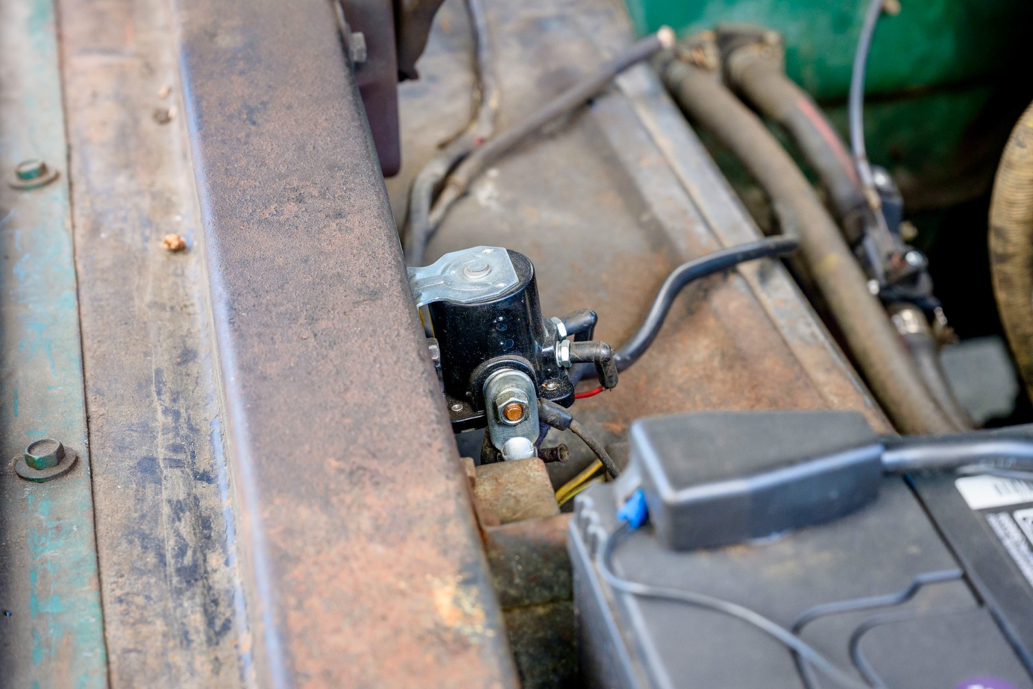 The negative battery ground cable looks original minus insulation, but underneath is a red felt anti acid. Watch out when using jump cables here. Sparks may fly. Was someone upset and your truck got “keyed”? I know it doesn’t take much even for a stranger to attack. Decent paint otherwise and nice truck.