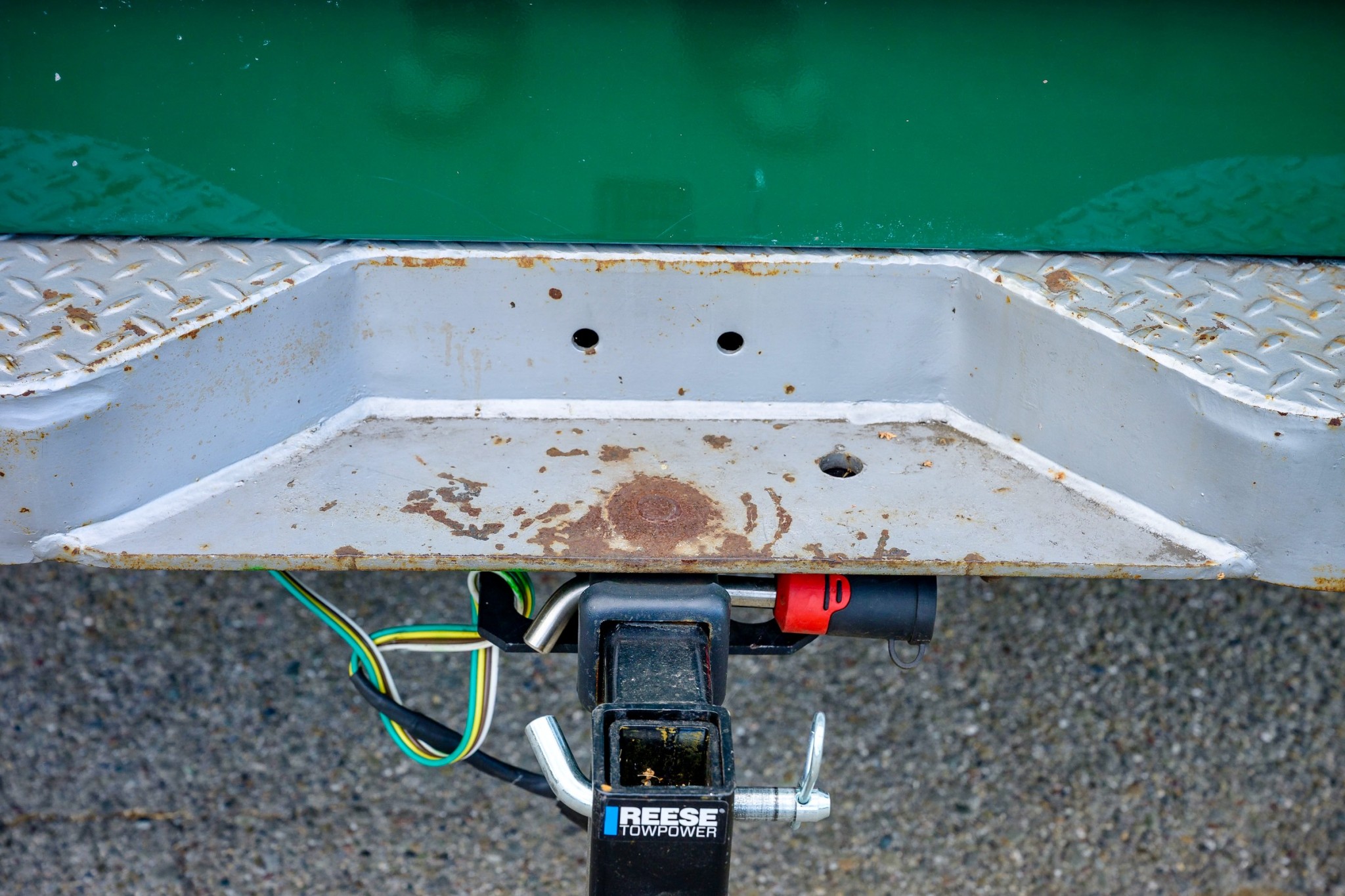 While this pickup presents well at first glance, the seller notes that the paint shows significant cosmetic damage, believed to be the result of vandalism under prior ownership. Importantly, the body itself is solid, with no accident damage or major rust issues reported. There is some surface corrosion here and there, but nothing that affects structural integrity. An aftermarket Barden step bumper with receiver hitch and trailer wiring has been installed, adding to its utility.