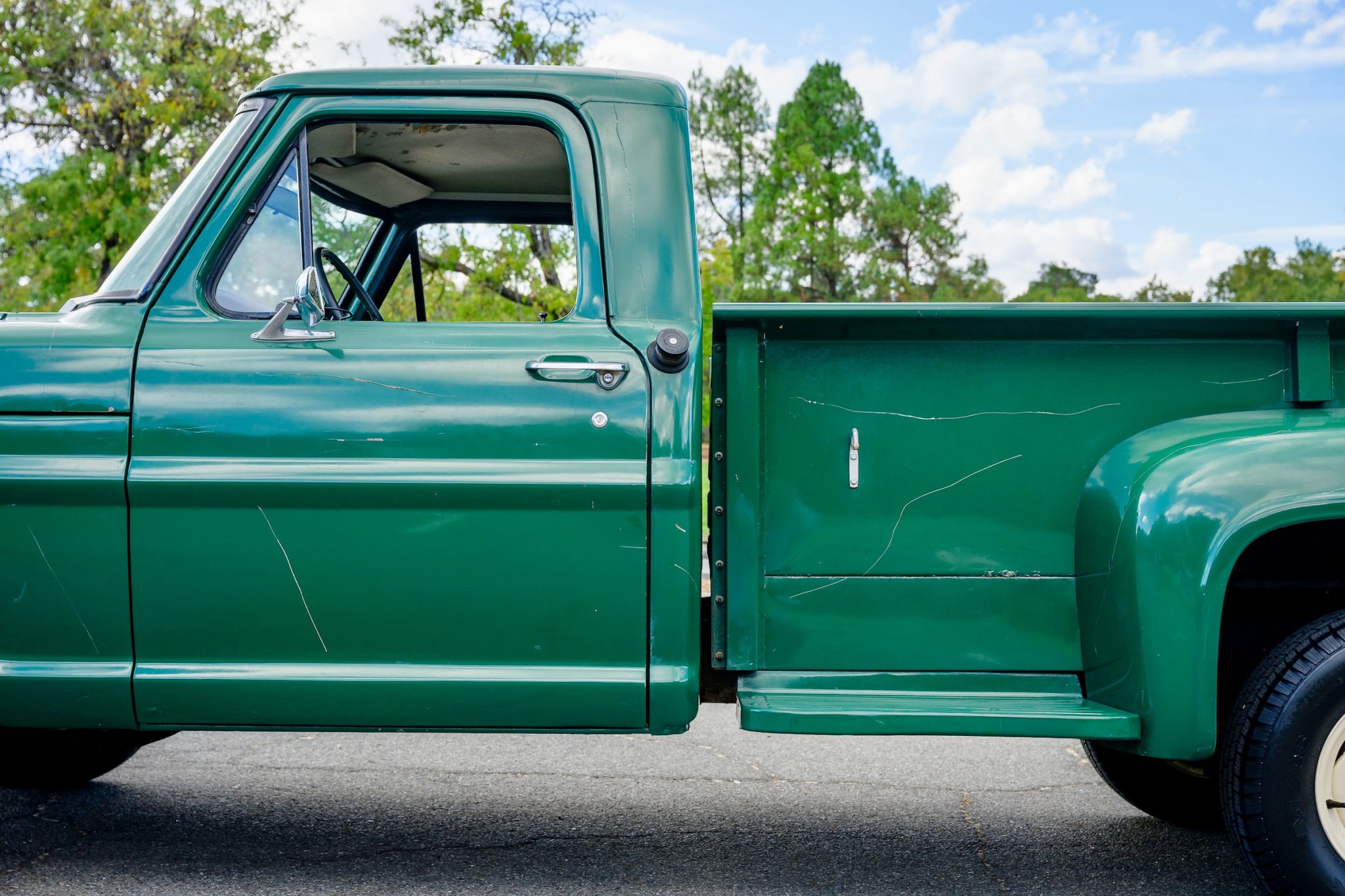 Overall, this is a well-documented and rare survivor-spec truck. With its factory flareside bed, inline-six with overdrive, and California history from new, it represents a piece of both Ford and Bay Area history. As the seller points out, the San Jose factory that built it is now a shopping mall—making this F-100 one of the few rolling reminders of that legacy.