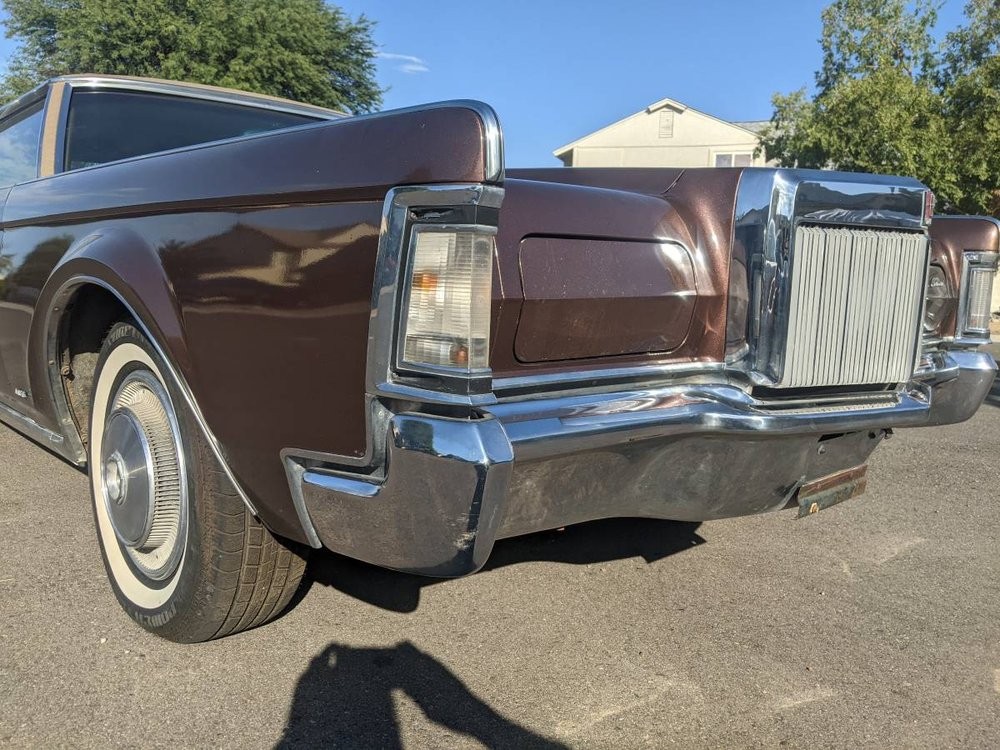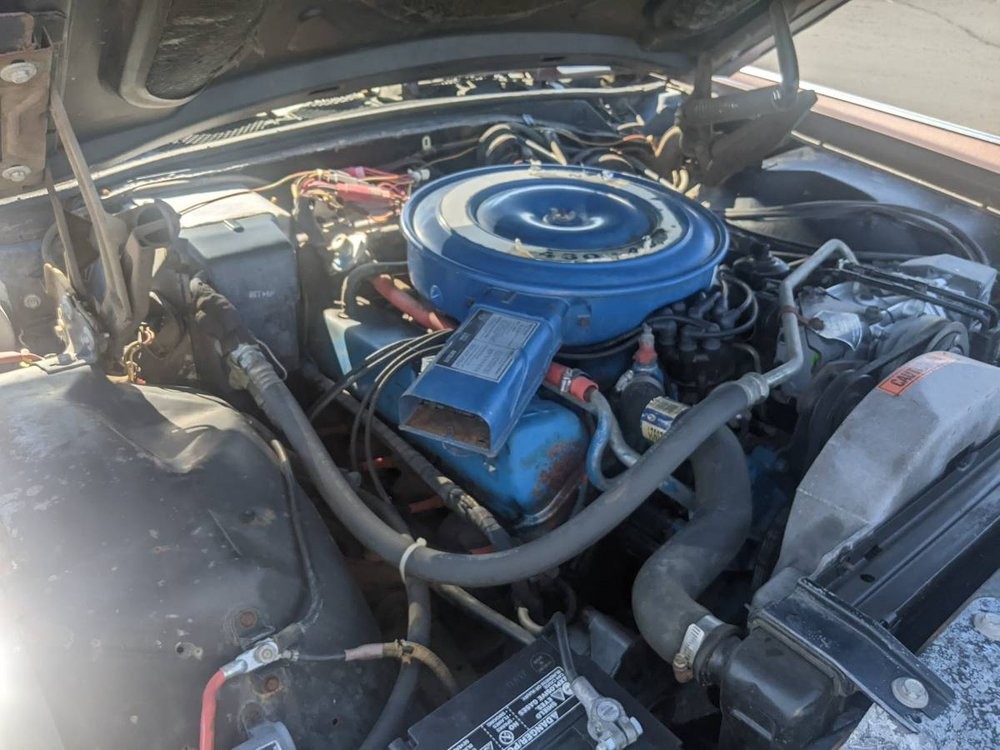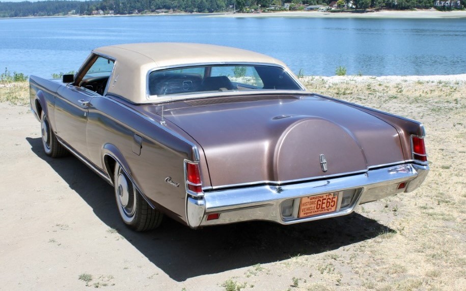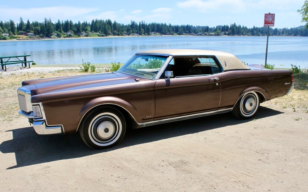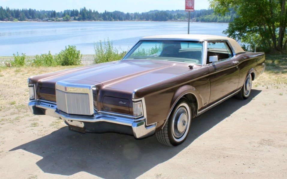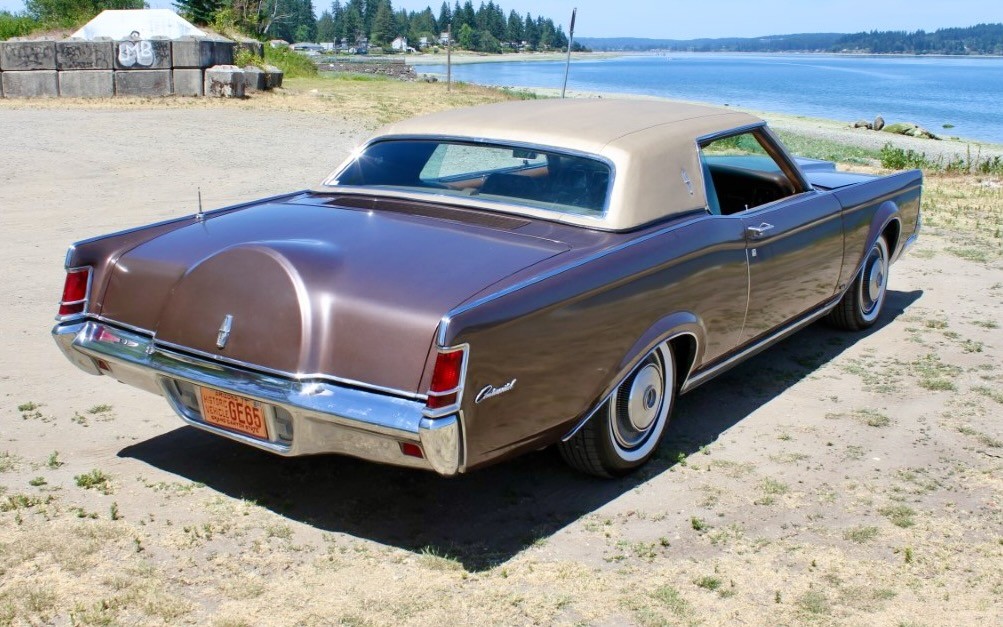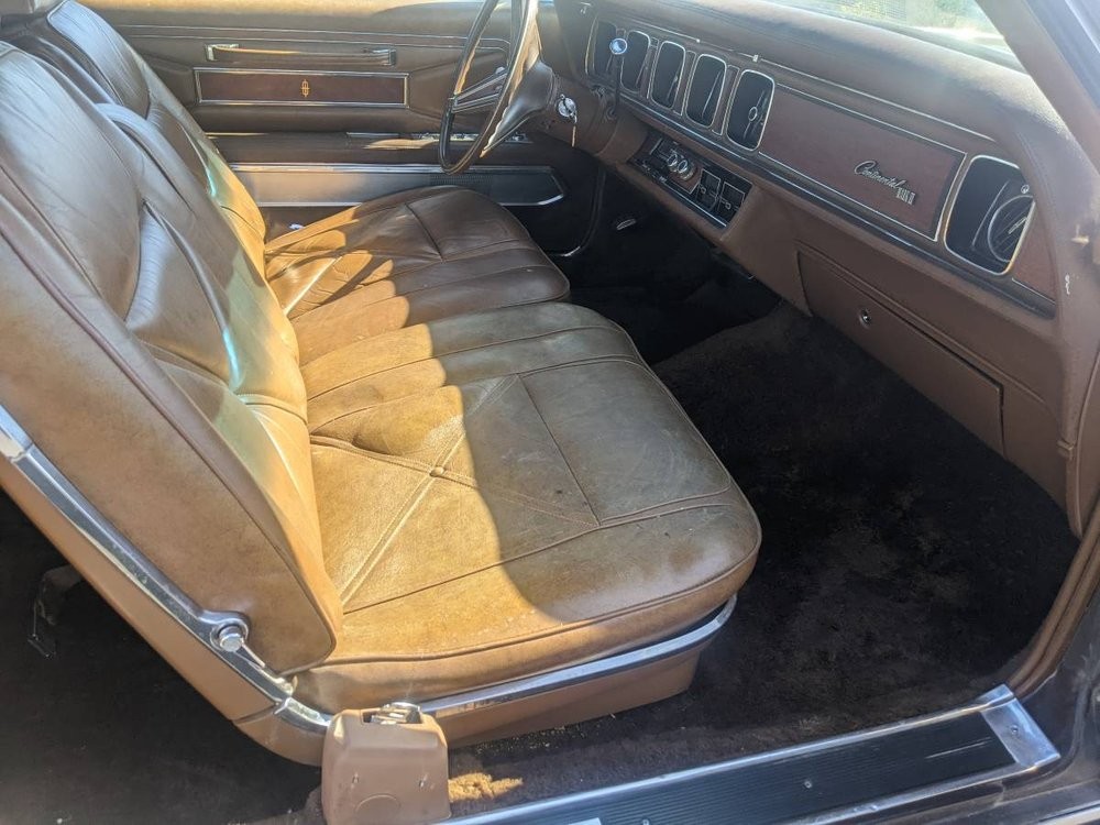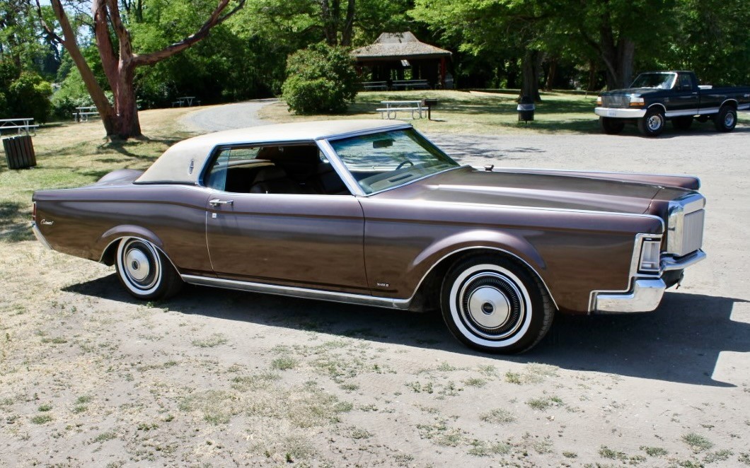 The luxurious interior of this 67,000-mile car is original. It has the optional “vinyl-with-leather” upholstery in what appears to be medium brown (there were so many browns in 1970!), which complements the wood trim well. The Mark III had a standard Cartier clock; Lincoln had a long relationship with that luxury brand, even offering Cartier Lincolns for decades. I’ve always liked the sporty steering wheel of the Mark III, and although few could argue that the big Continental had sporting pretensions, its effortless power might make you think so, if you suspend your disbelief just a little bit.